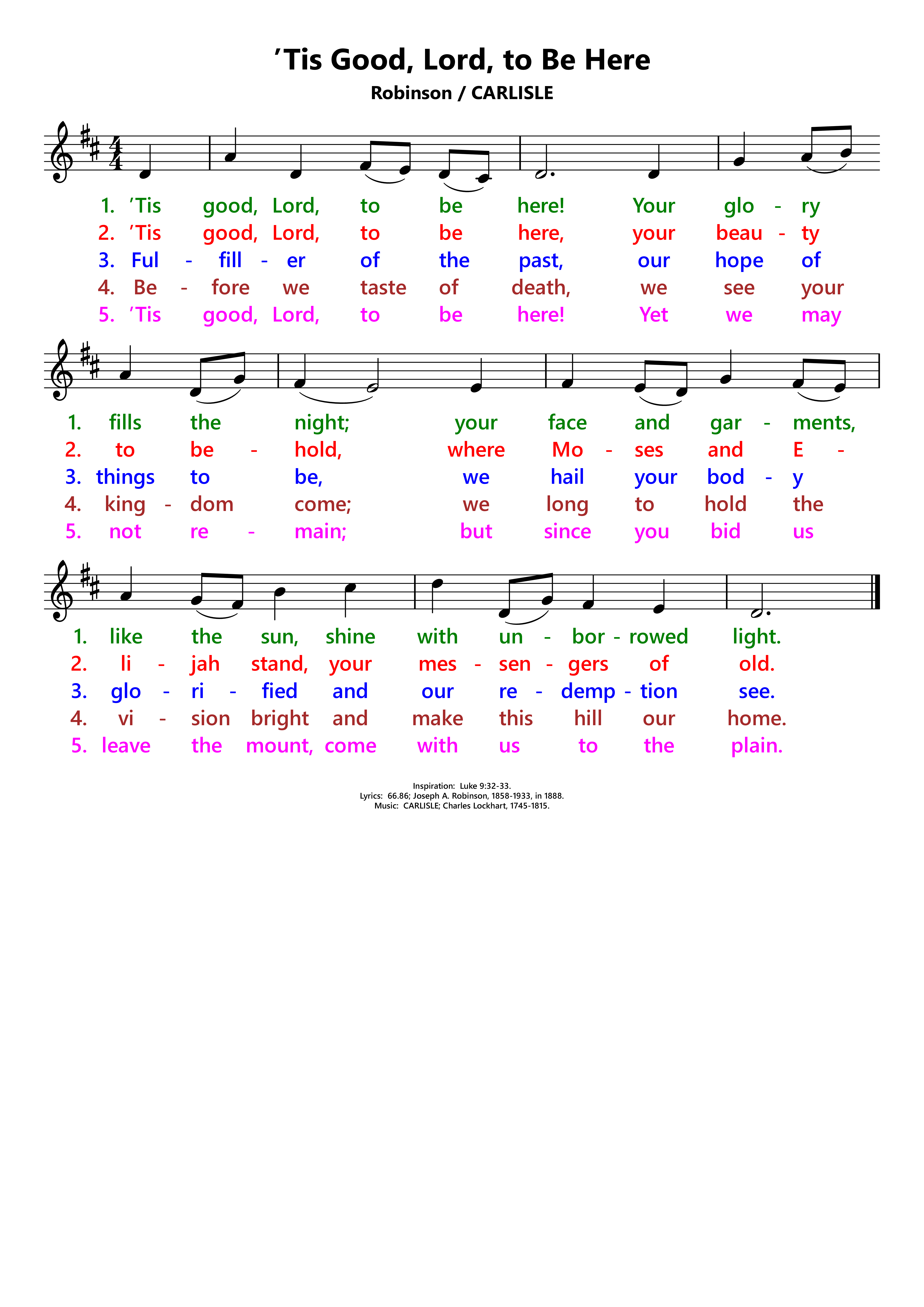 | Inspiration: | Luke 9: 32-33 |