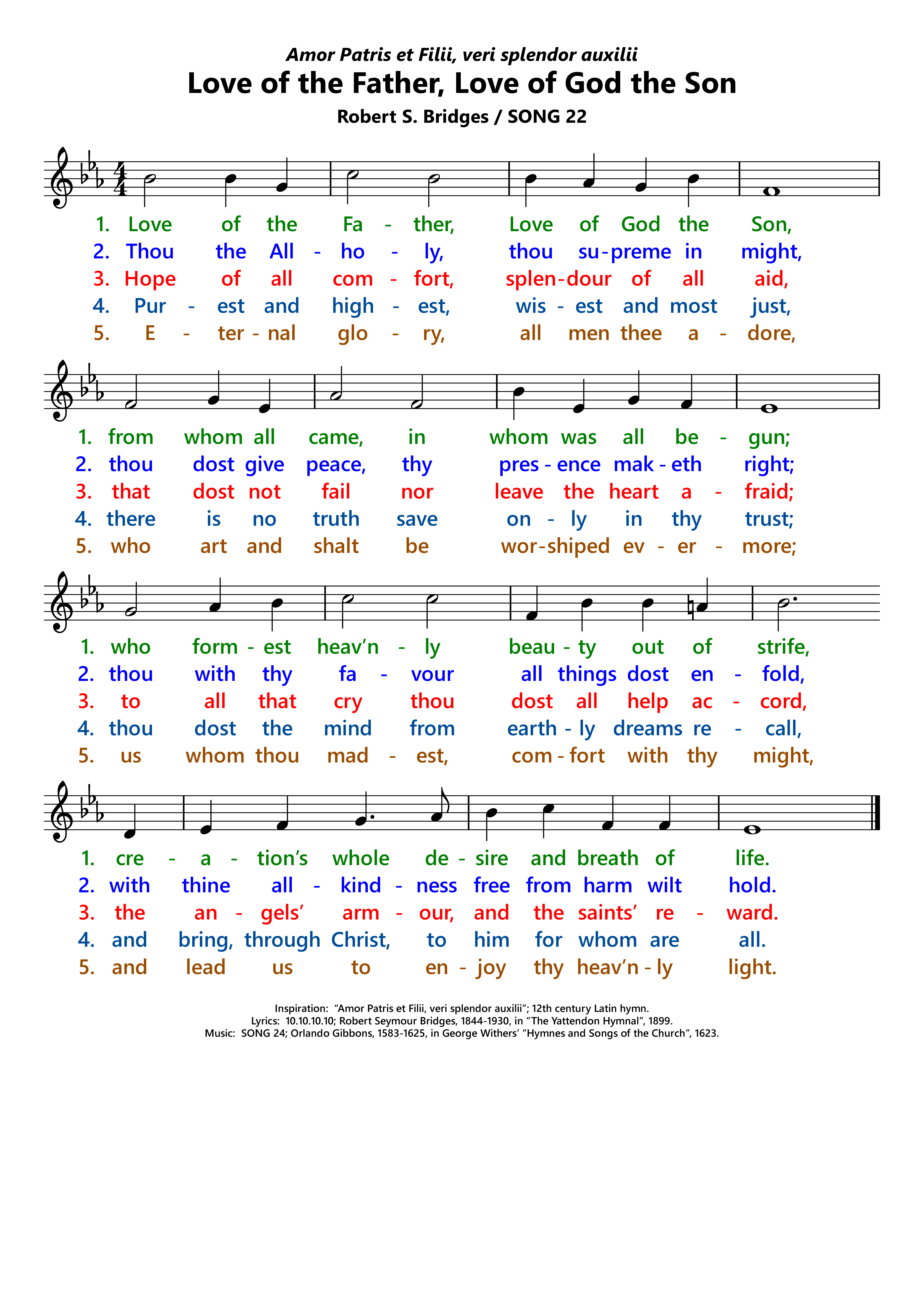 | Lyrics: | Robert Seymour Bridges, 1844-1930, in “The Yattendon Hymnal”, 1899. |