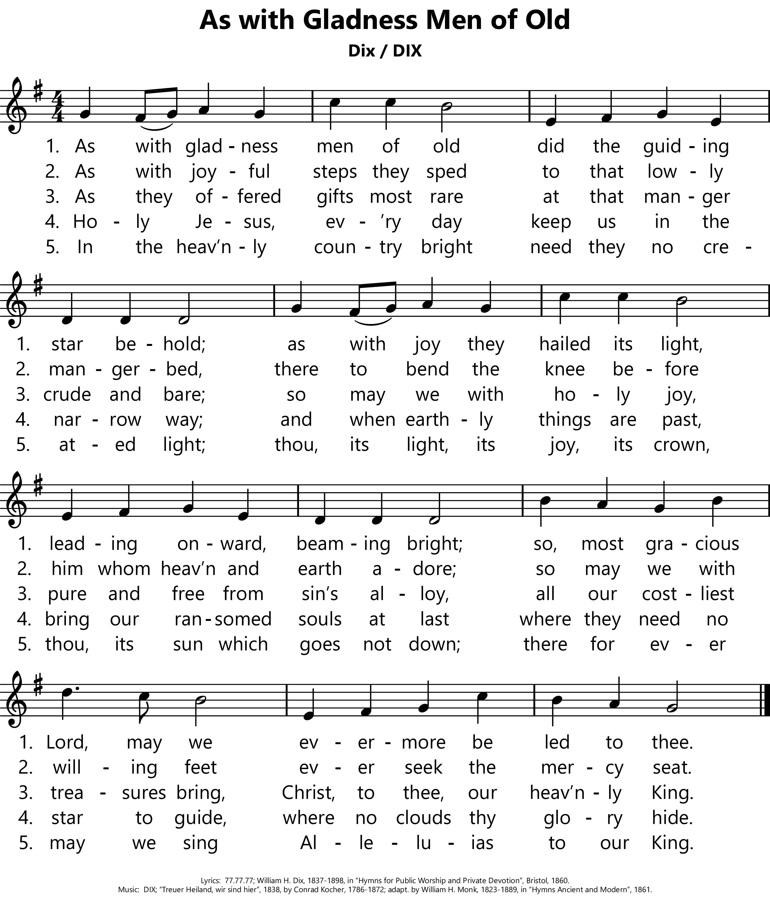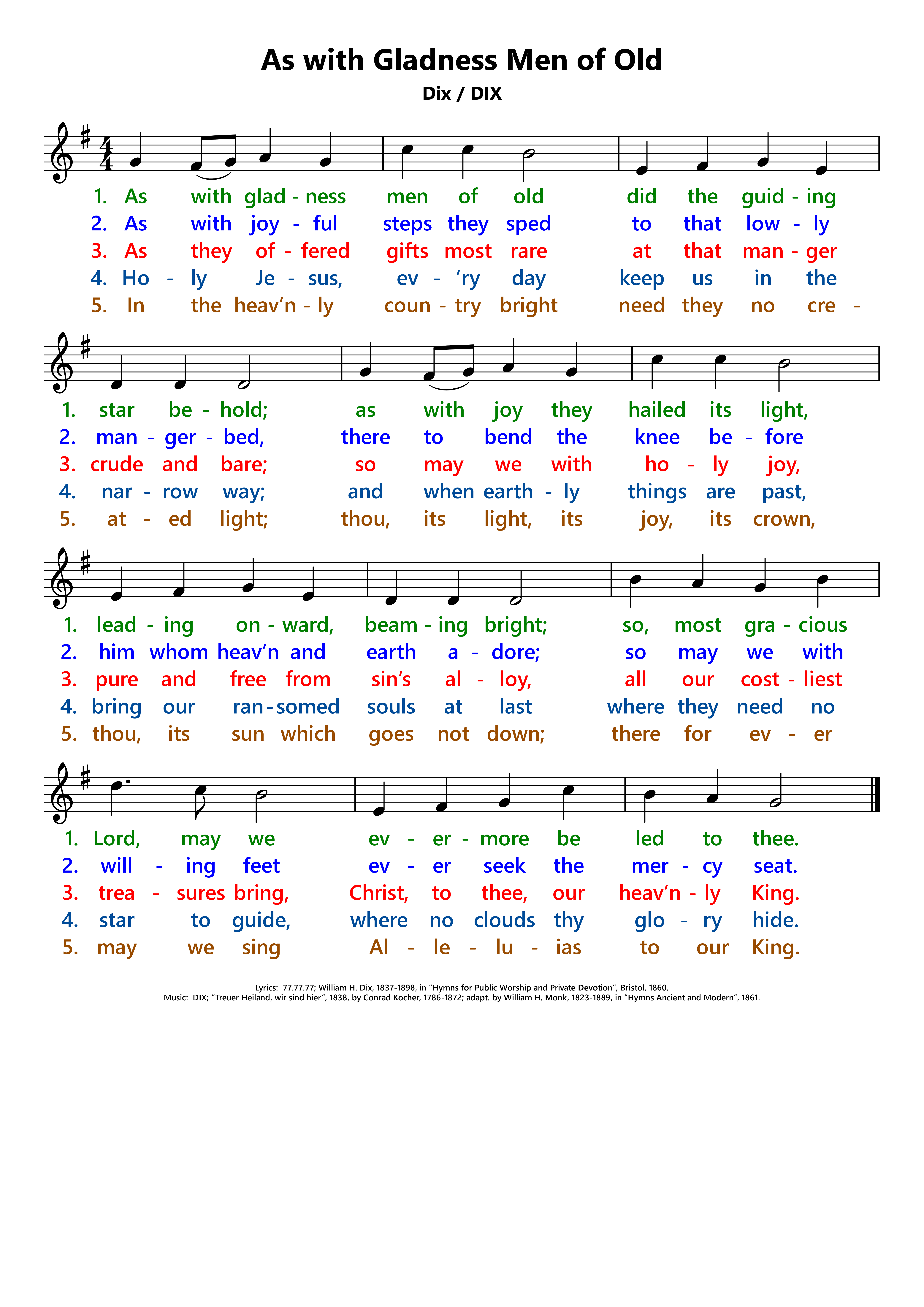 | Lyrics: | William Chatterdon Dix, 1837-1898, in Hymns for Public Worship and Private Devotion, Bristol, 1860. |