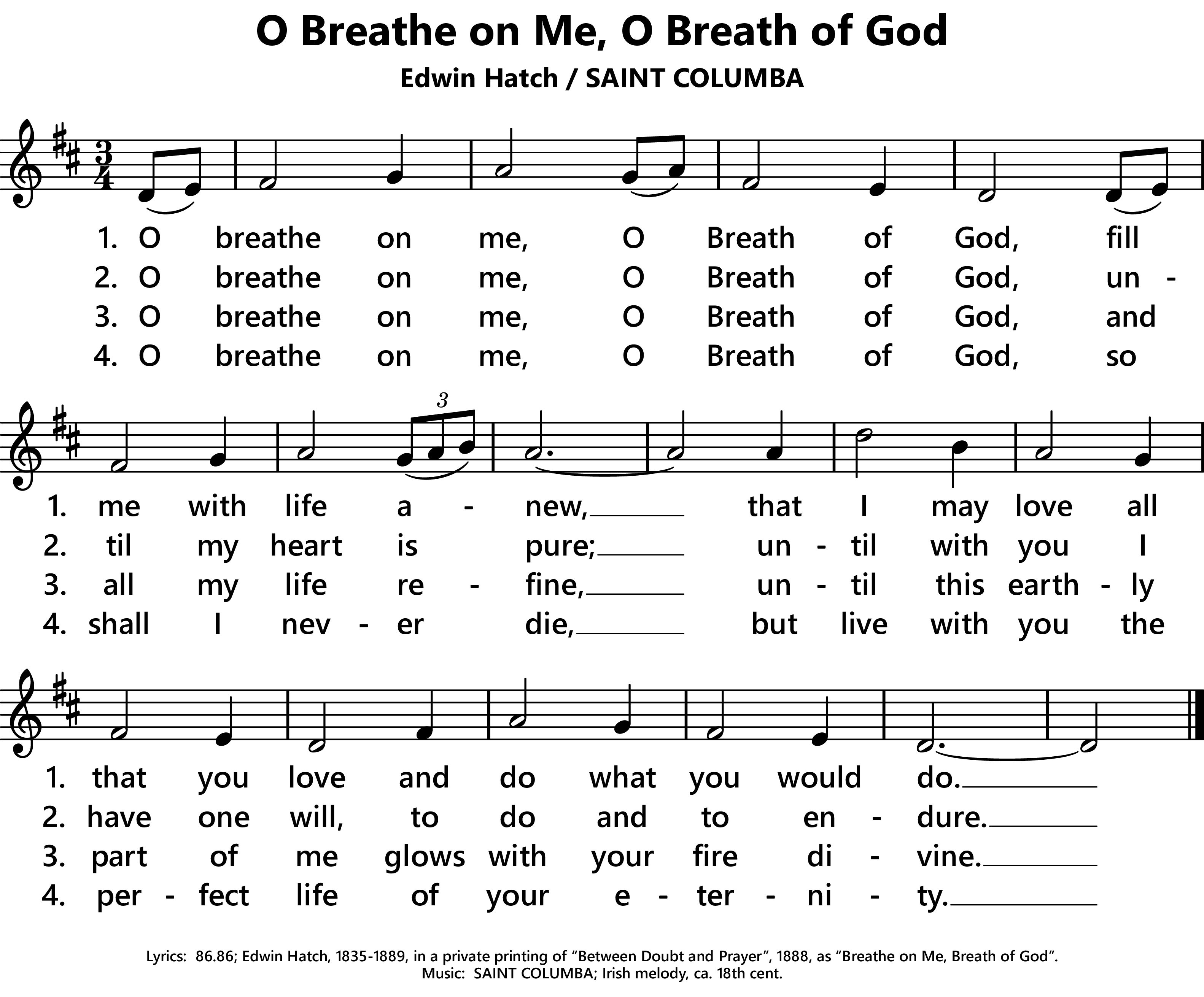| Alt. titles: | O Breathe on Me, Breath of God O Breathe on Me, O Breath of God. |