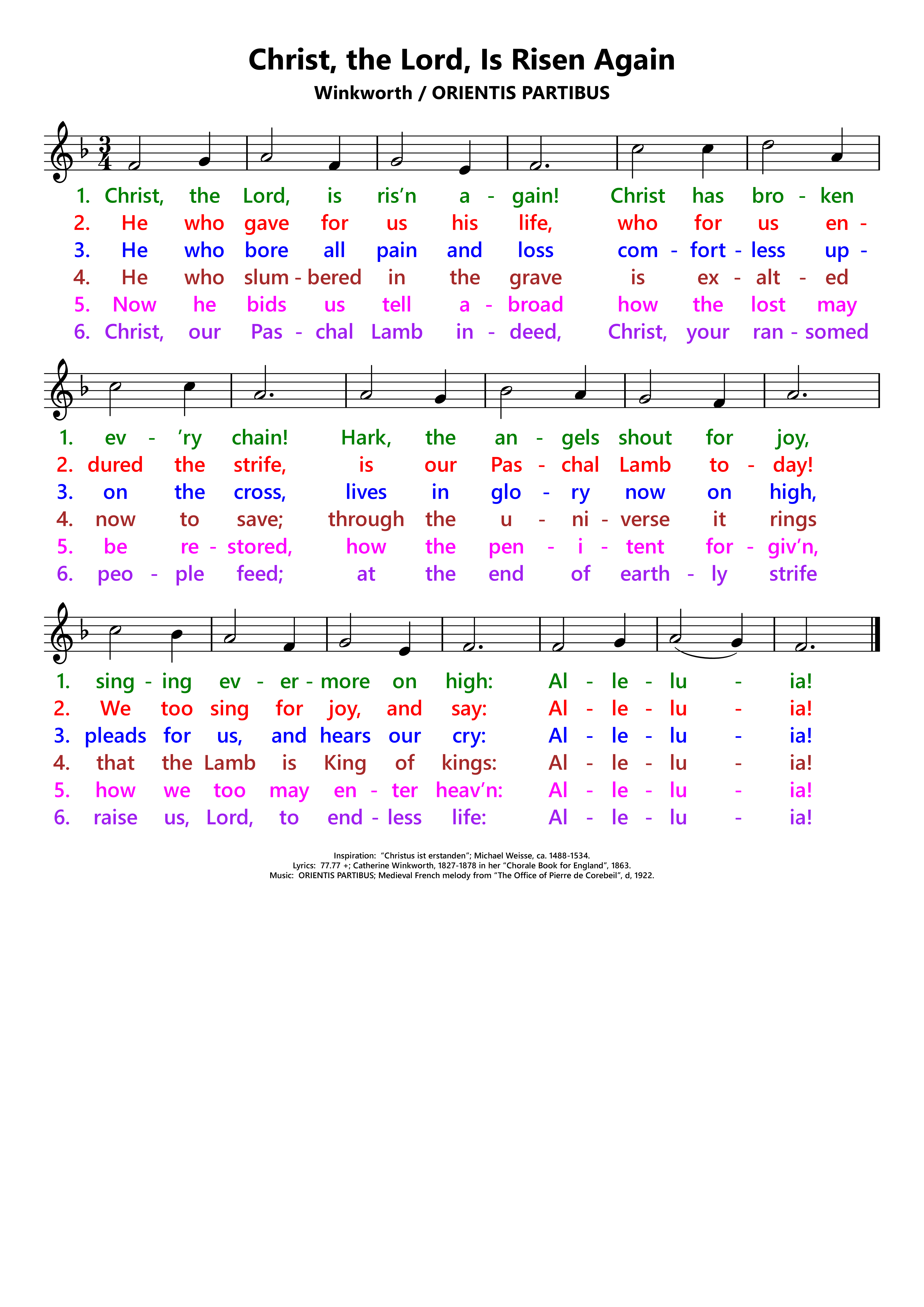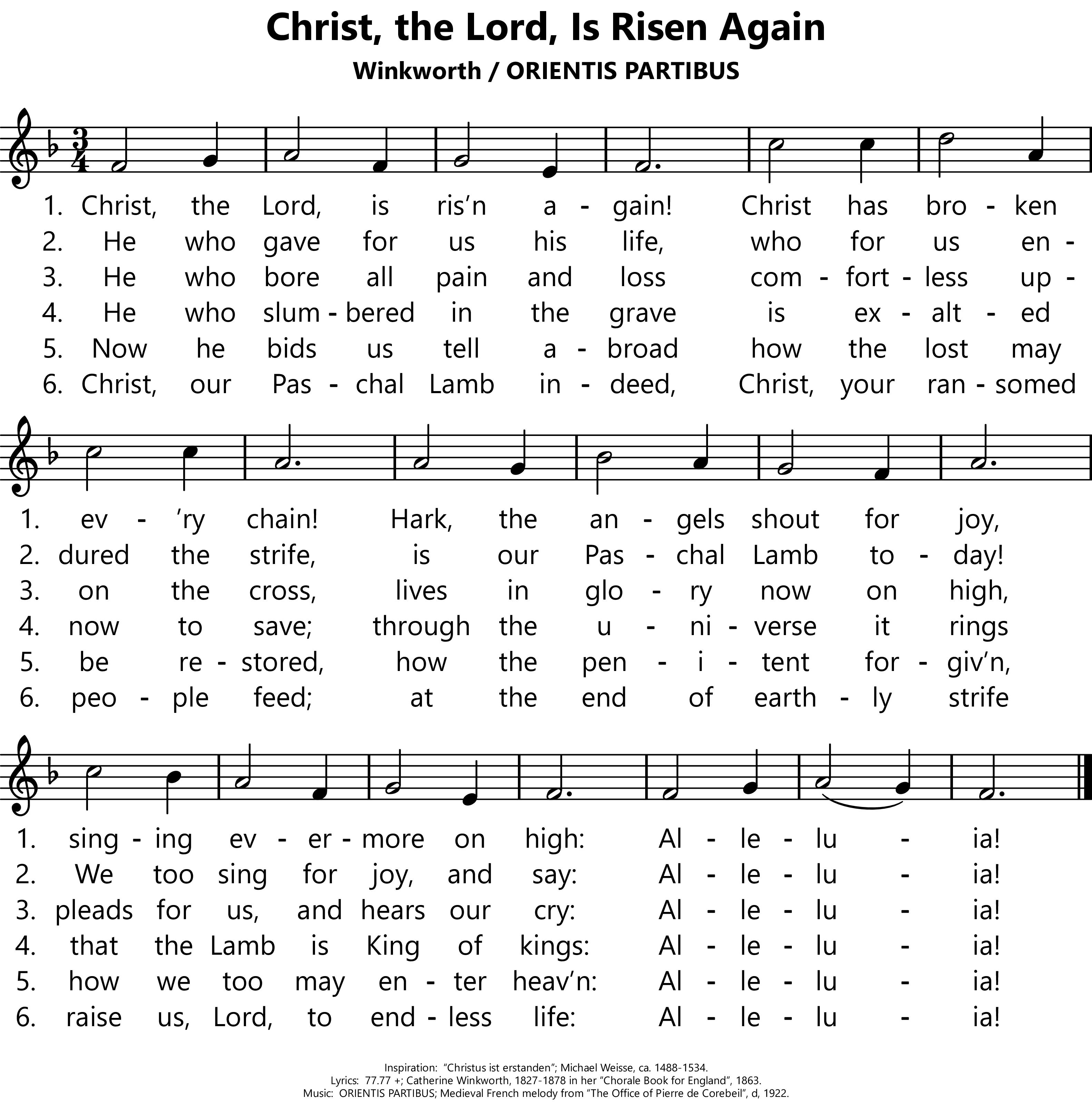 Hymn tune: CHRIST IST ERSTANDEN • EASTER HYMN • ORIENTIS PARTIBUS