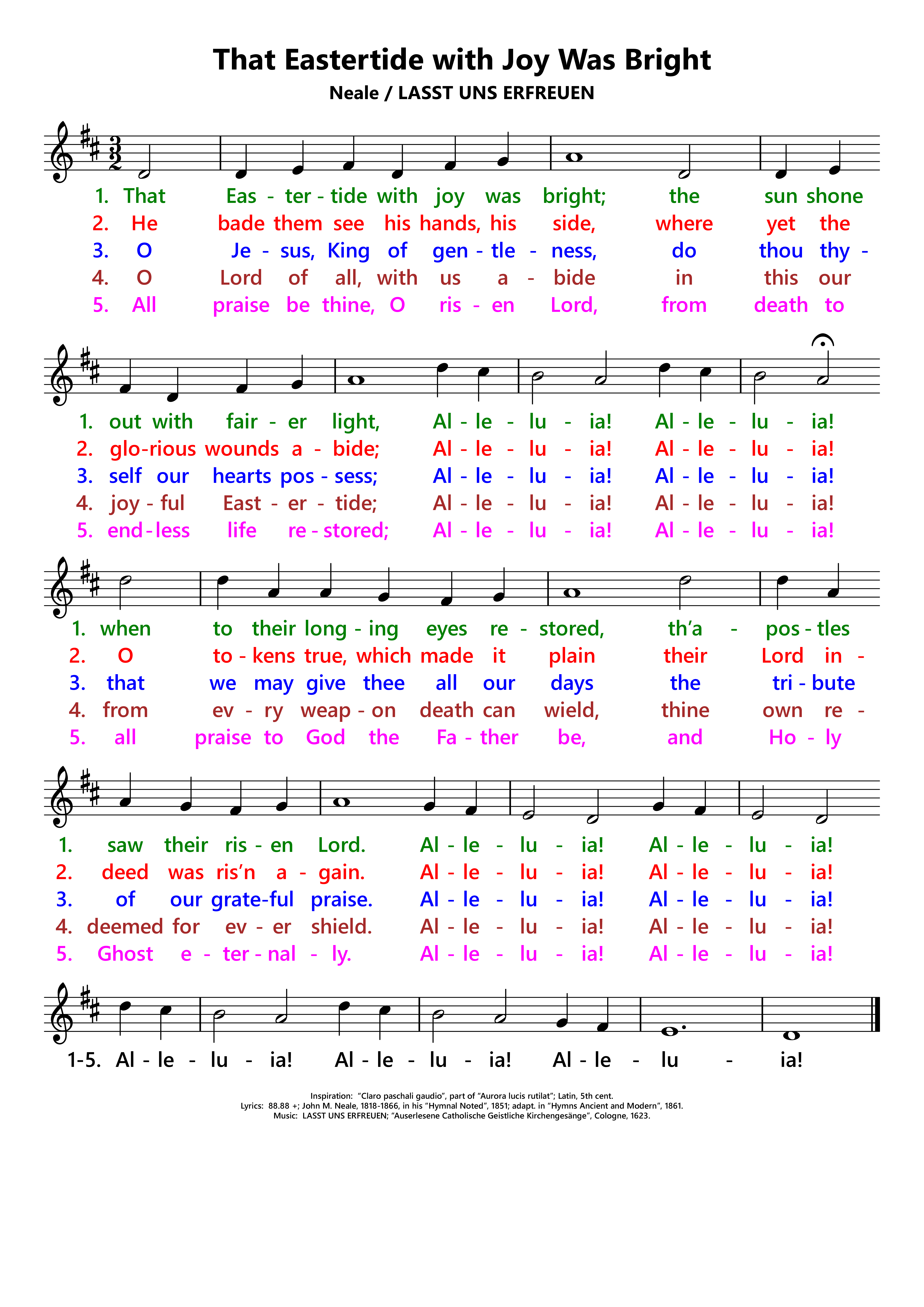 | Lyrics: | John M. Neale, 1818-1866, in his Hymnal Noted, 1851; adapted in Hymns Ancient and Modern, 1861. |