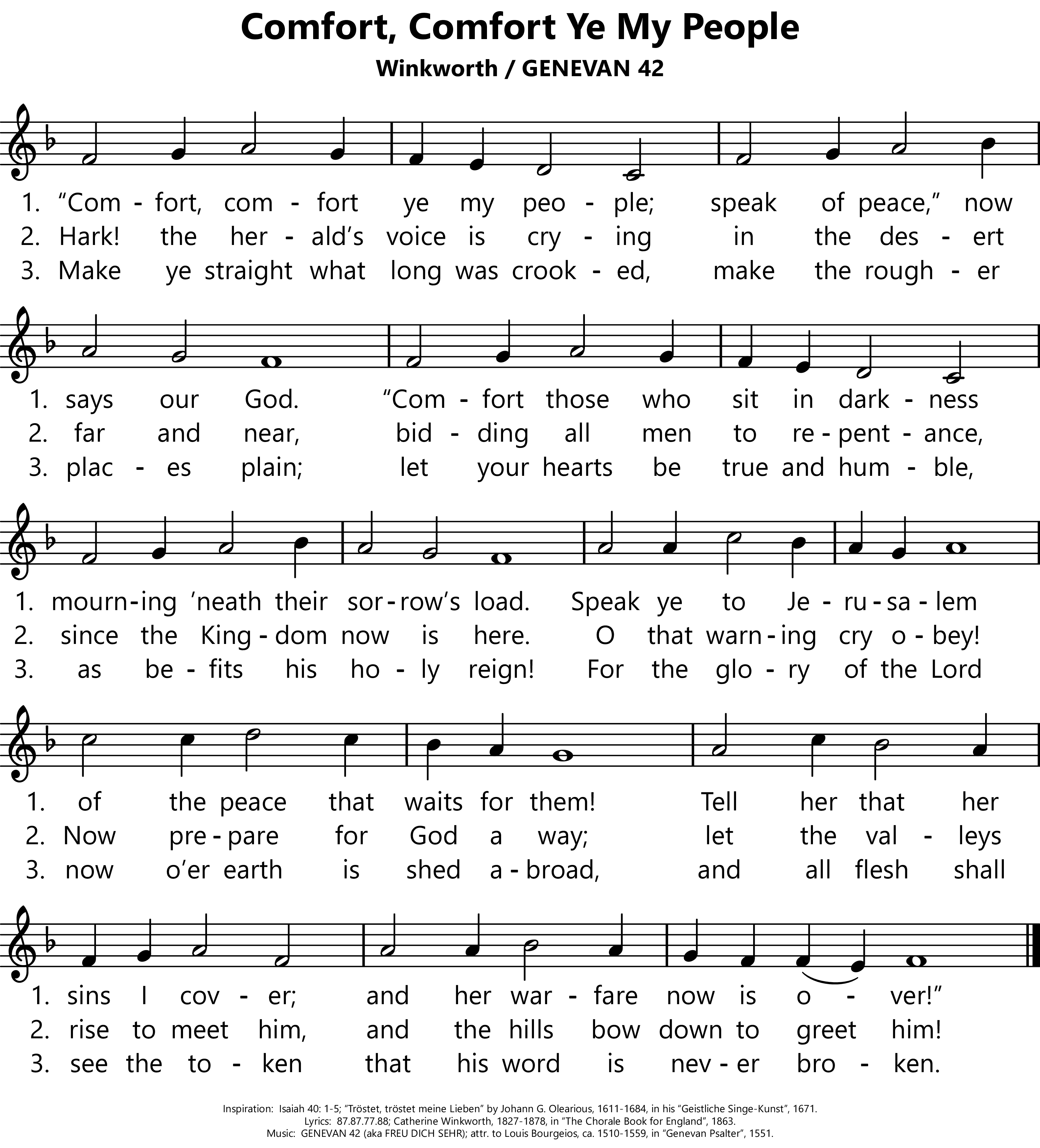 | Lyrics: | Catherine Winkworth, 1827-1878, in The Chorale Book for England, 1863. |