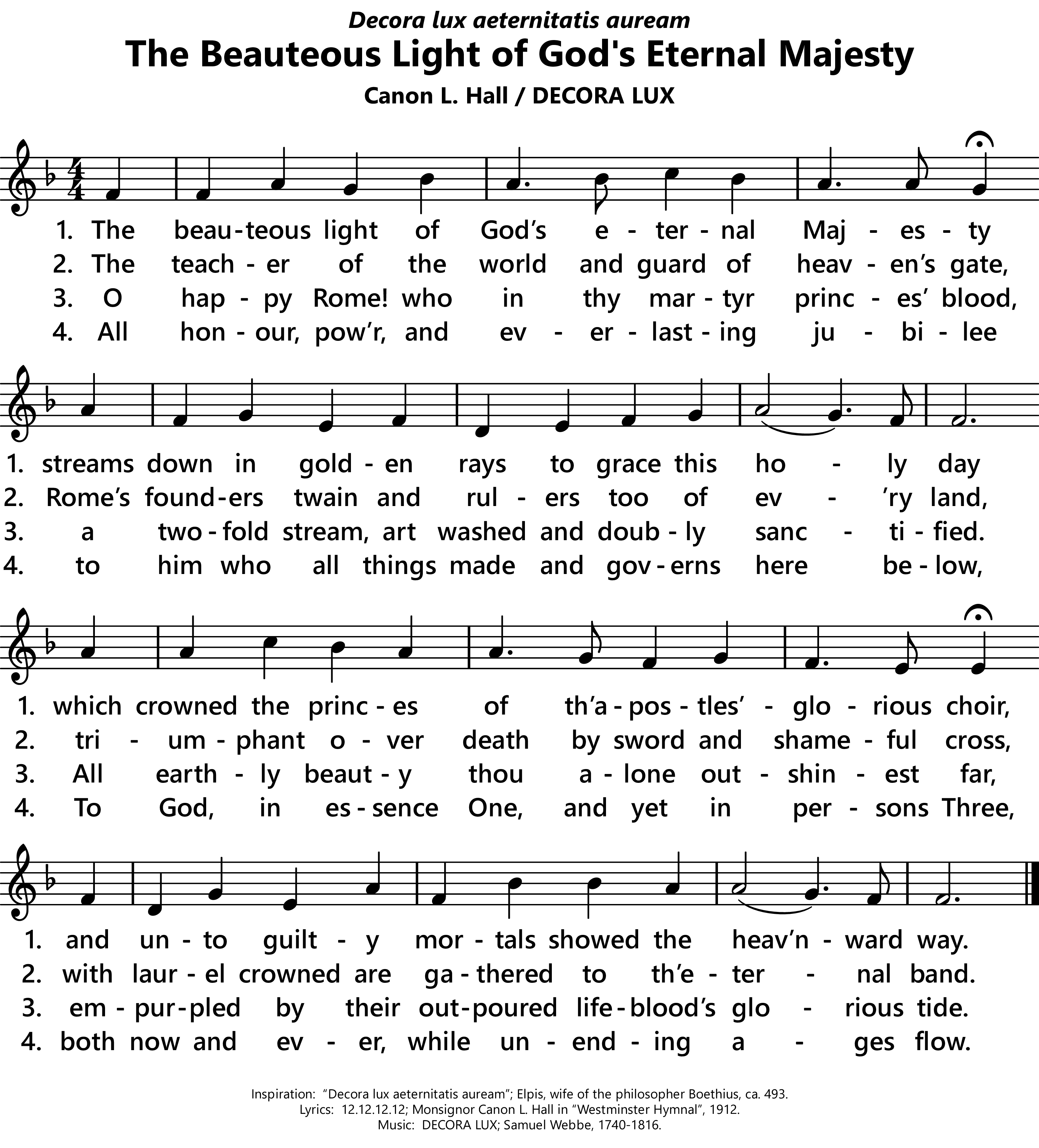 Lyrics:    Monsignor Canon L. Hall in The Westminster Hymnal, 1912.