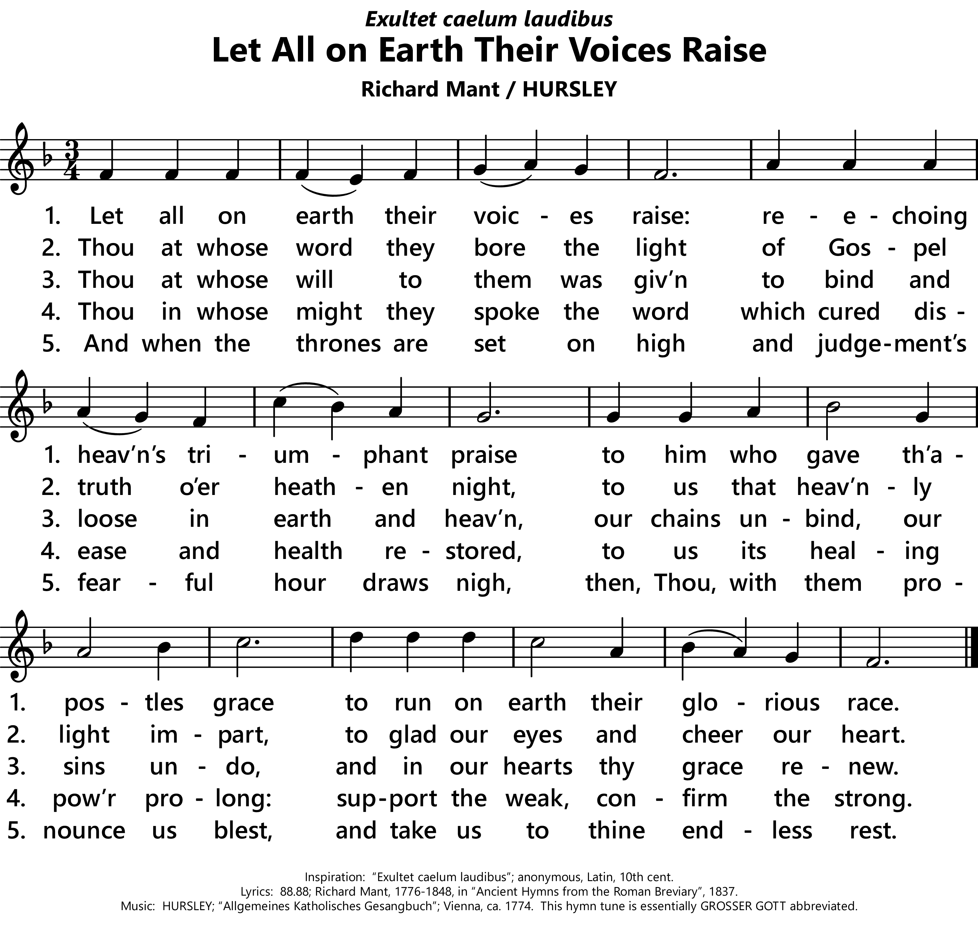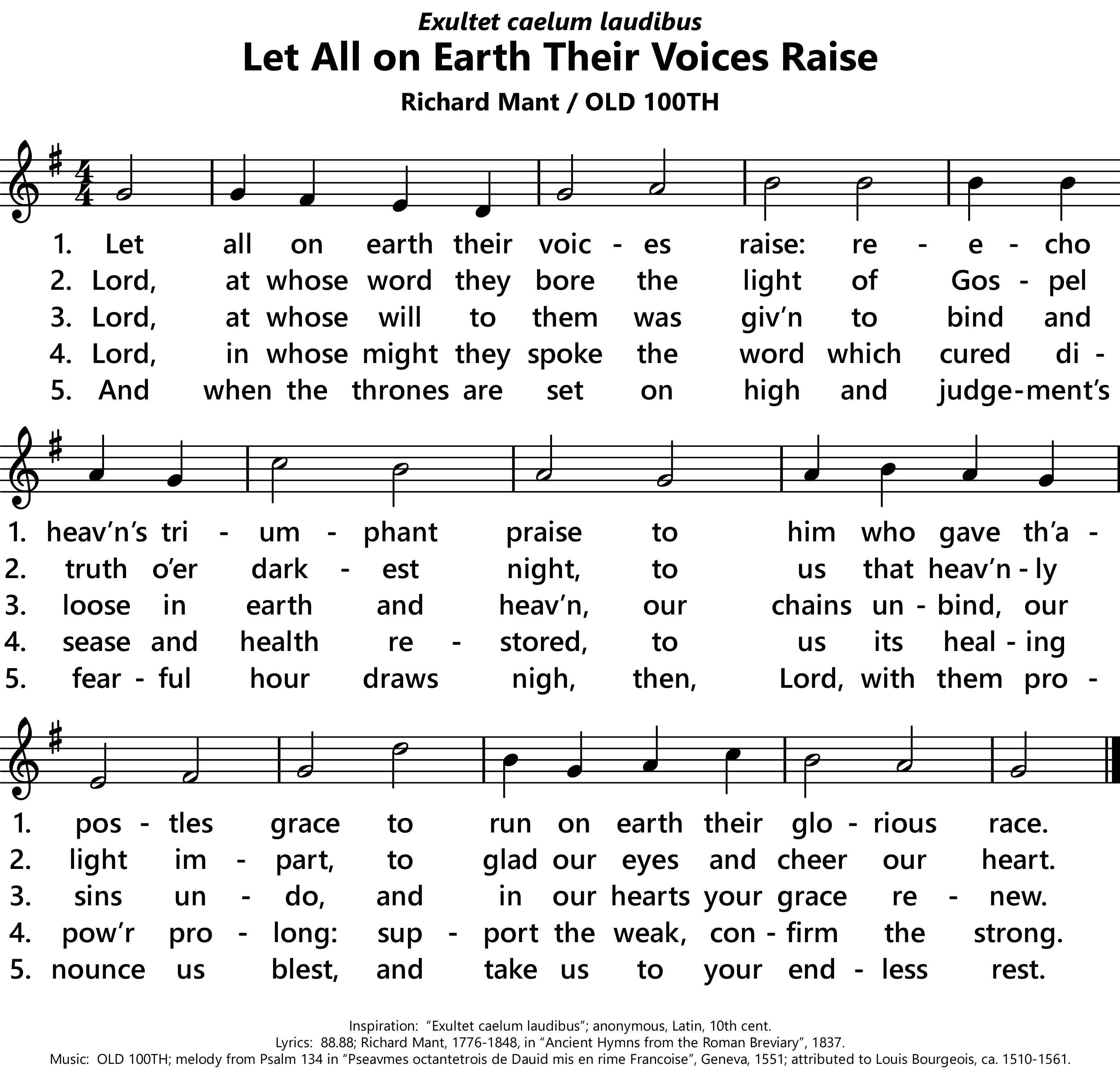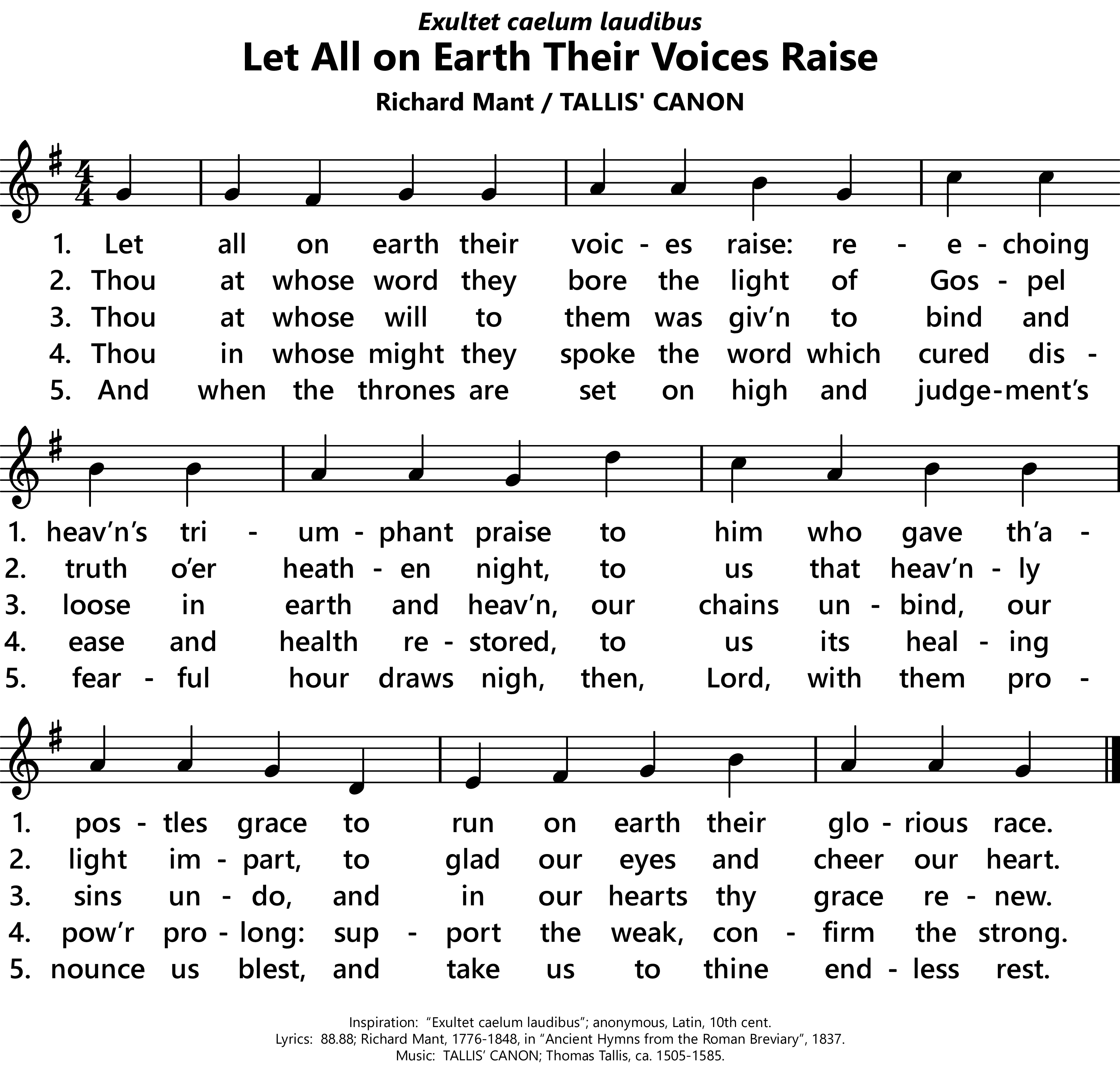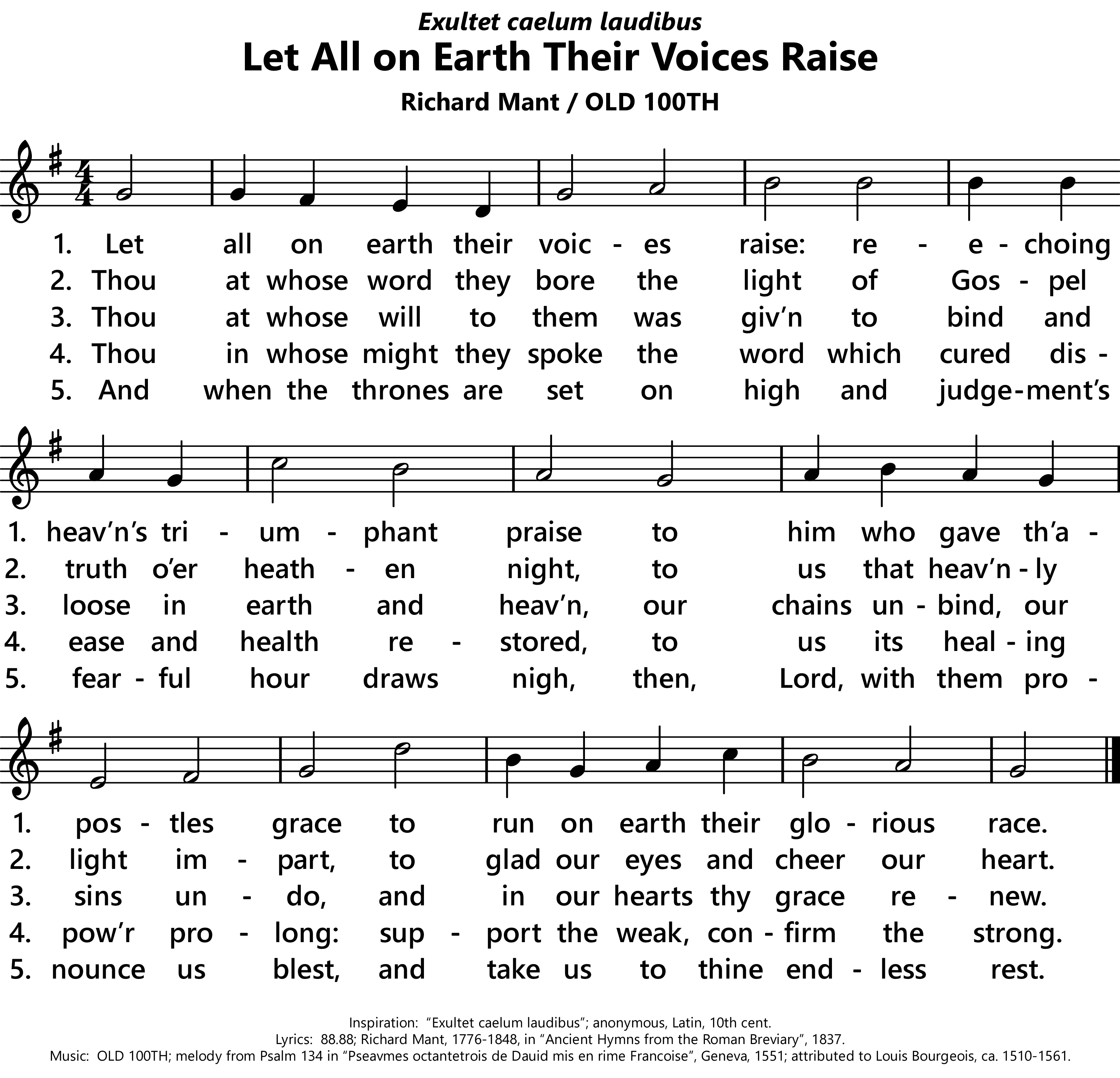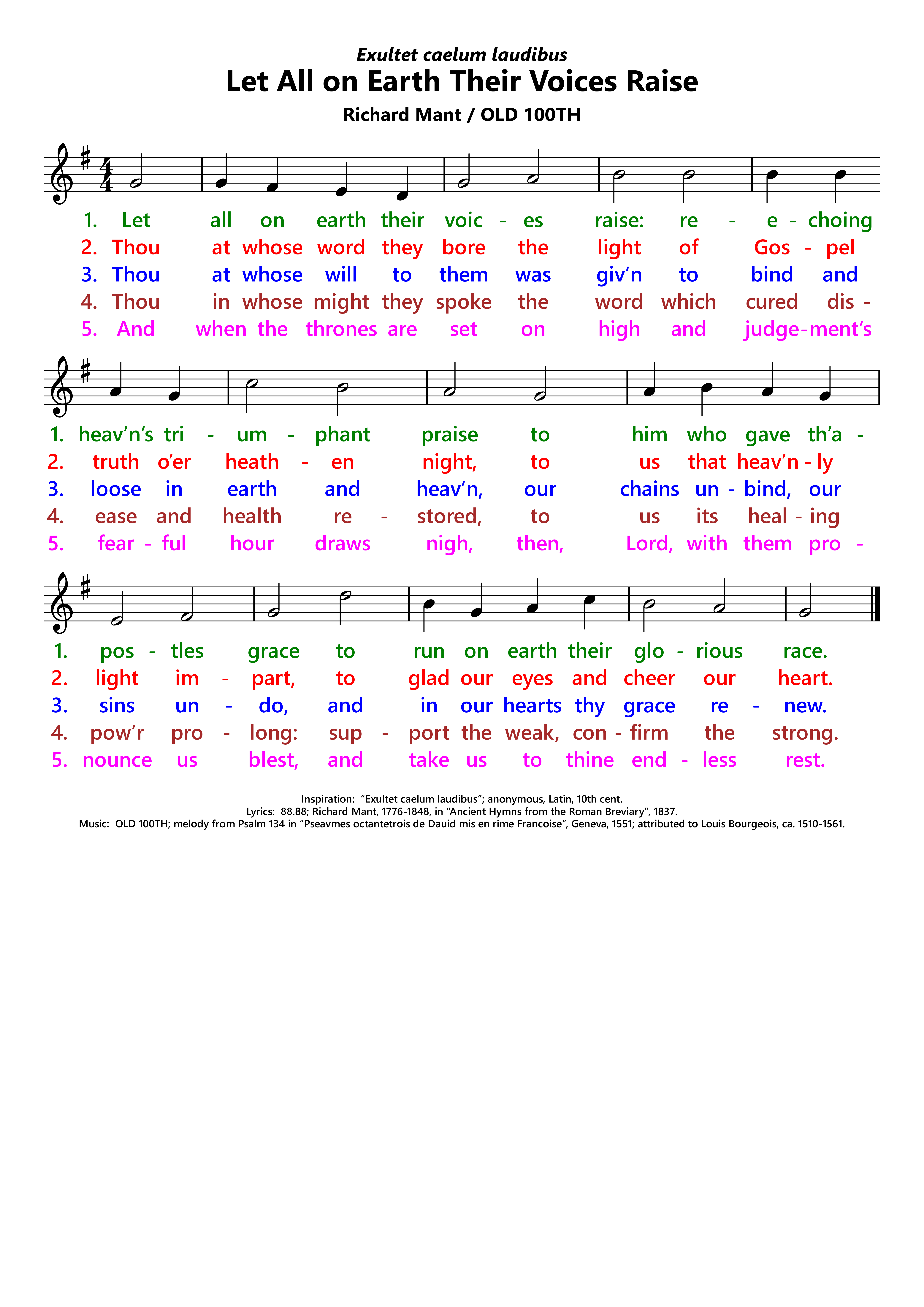 Lyrics:    Richard Mant, 1776-1848, in An­cient Hymns from the Ro­man Bre­vi­a­ry, 1837.