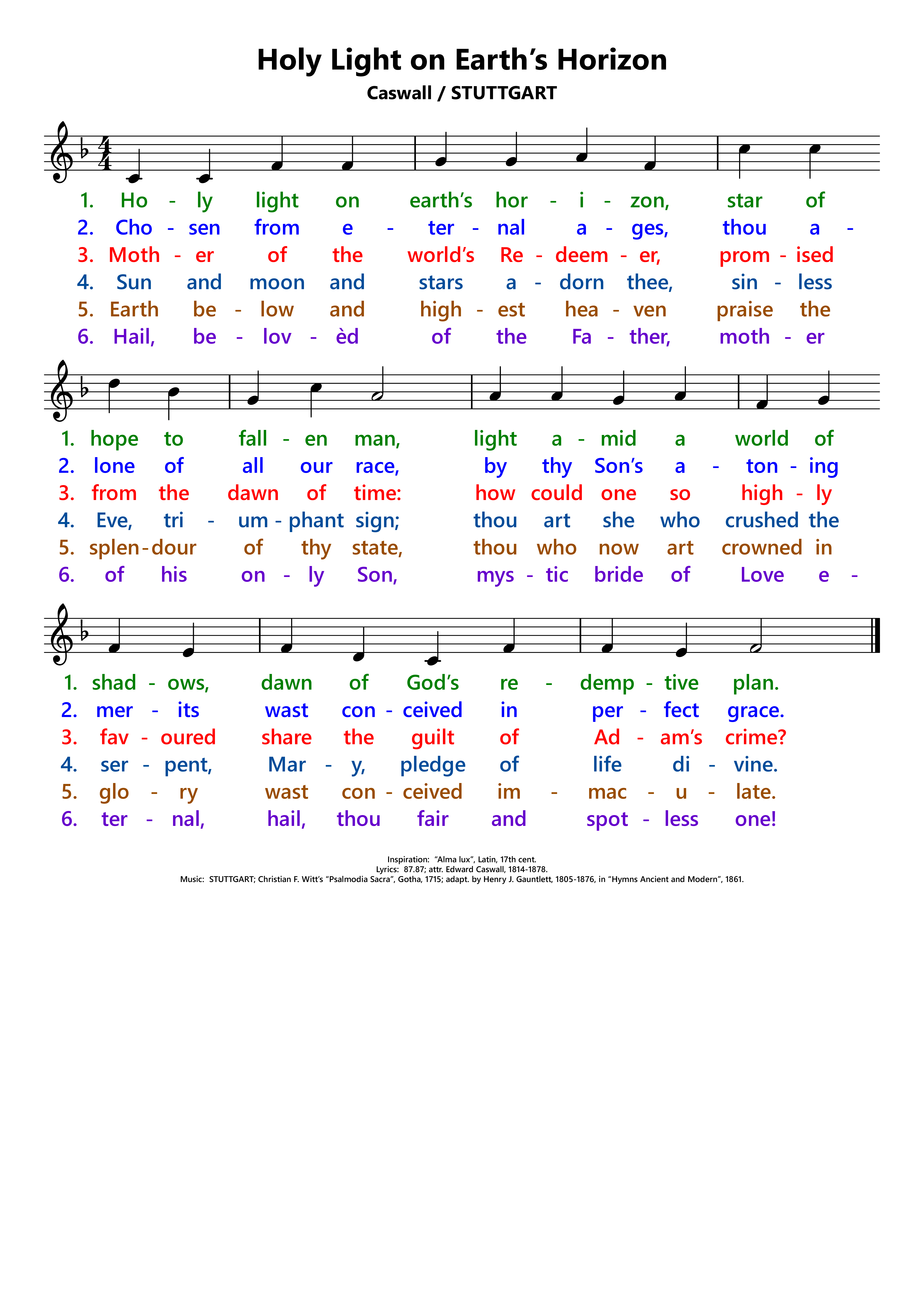 Lyrics:    originally attributed, as a translation, to Edward Caswall, 1835-1917,