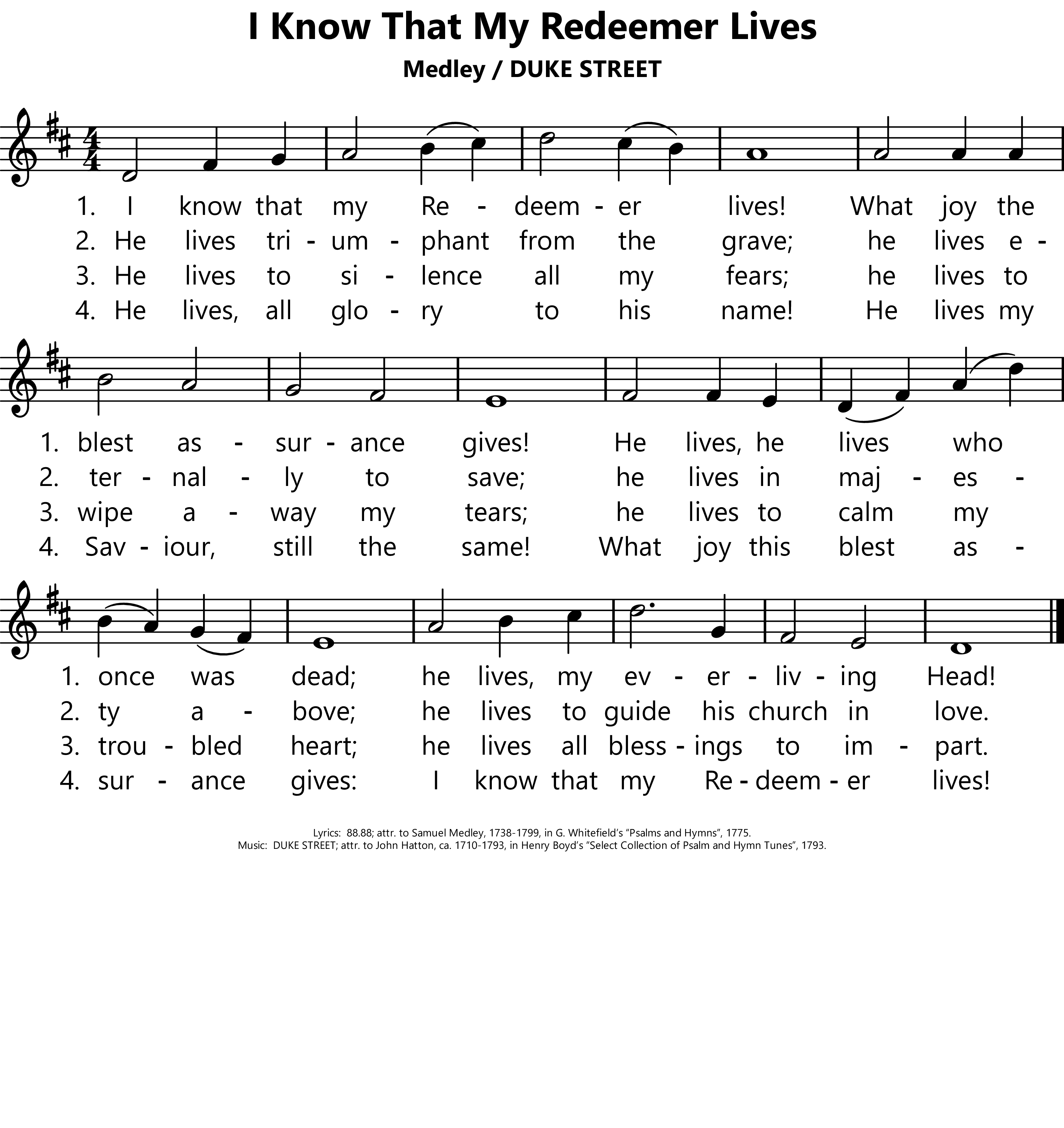 | Lyrics: | attributed to Samuel Medley, 1738-1799, in G. Whitefield’s Psalms and Hymns, 1775 |