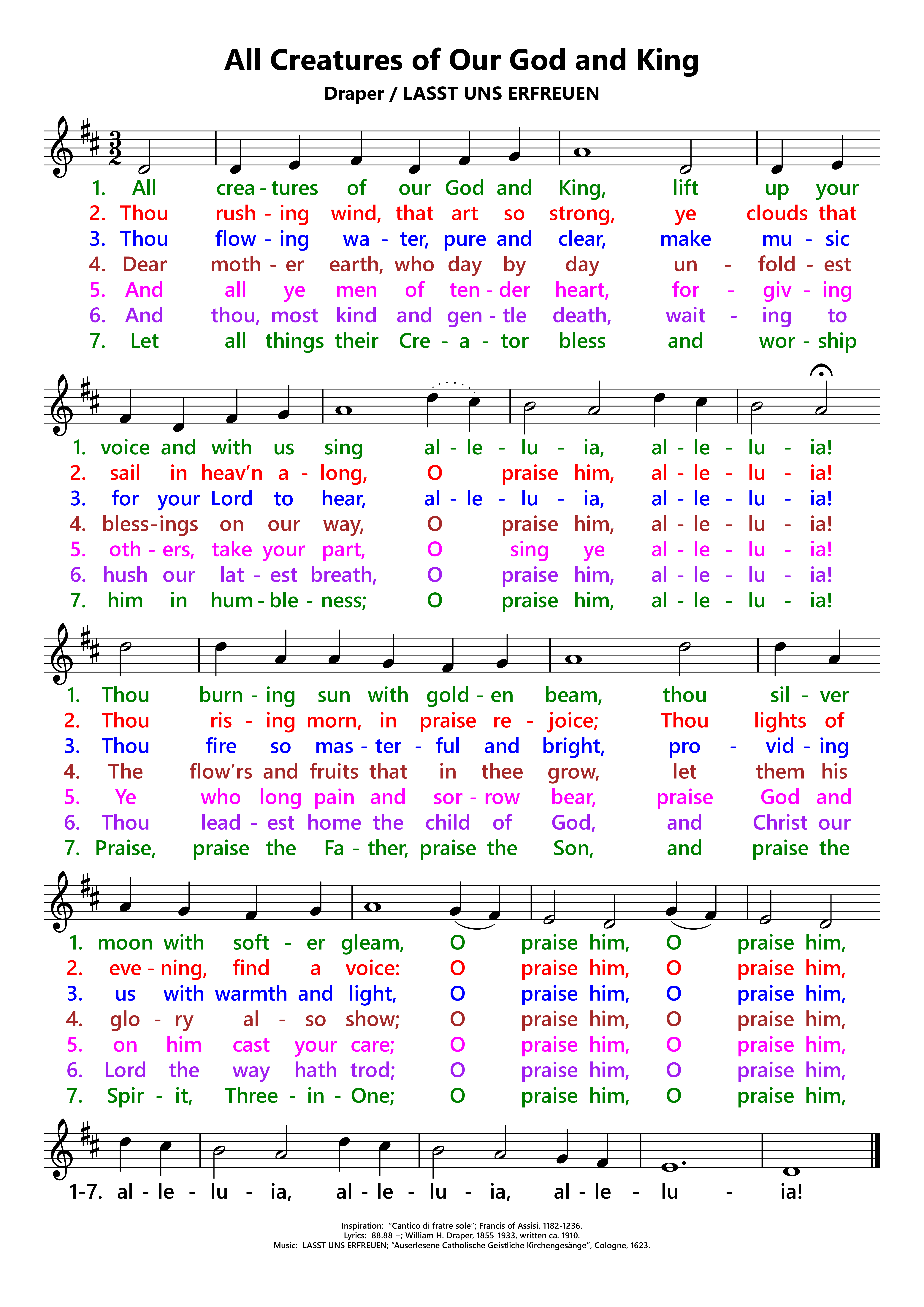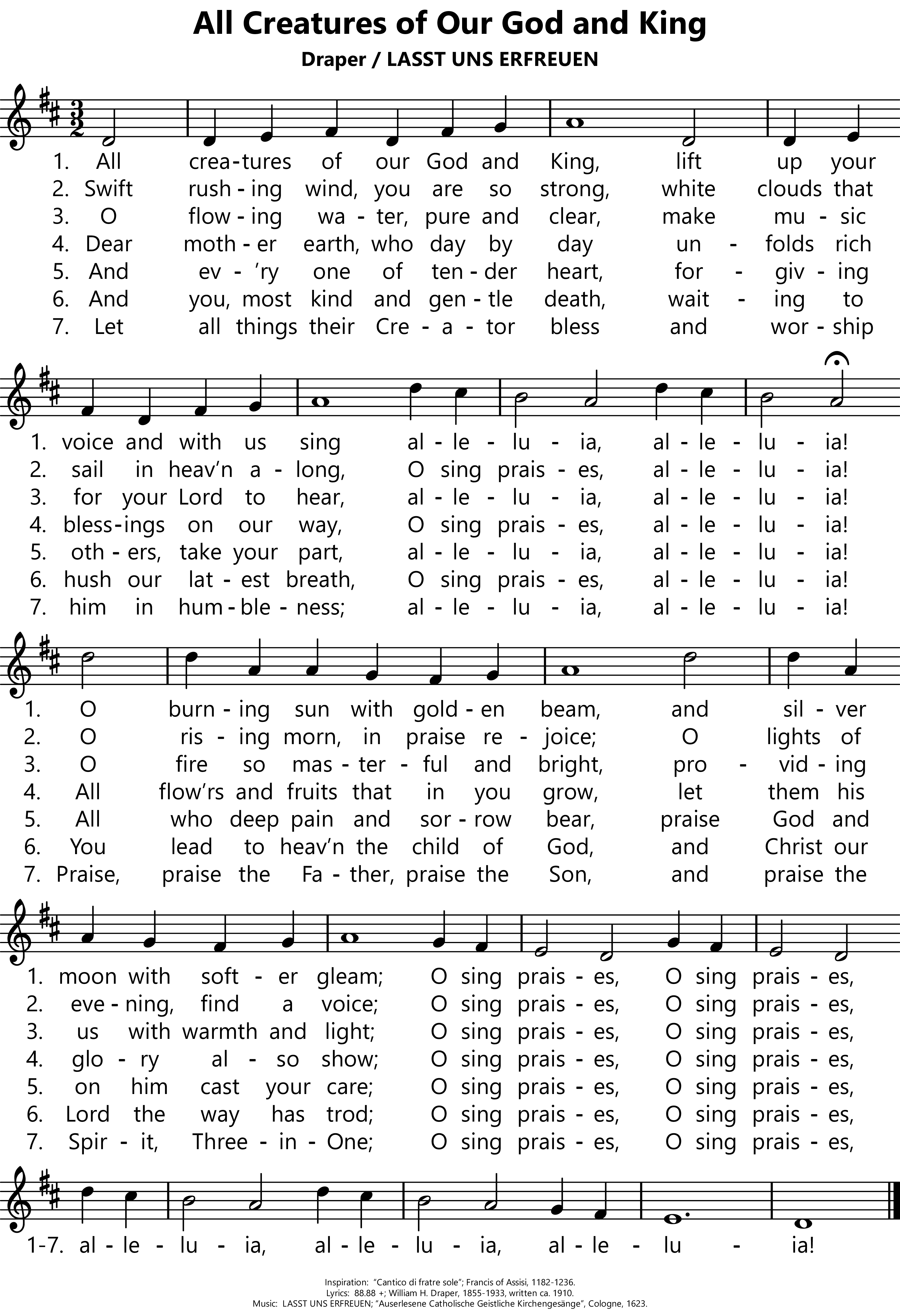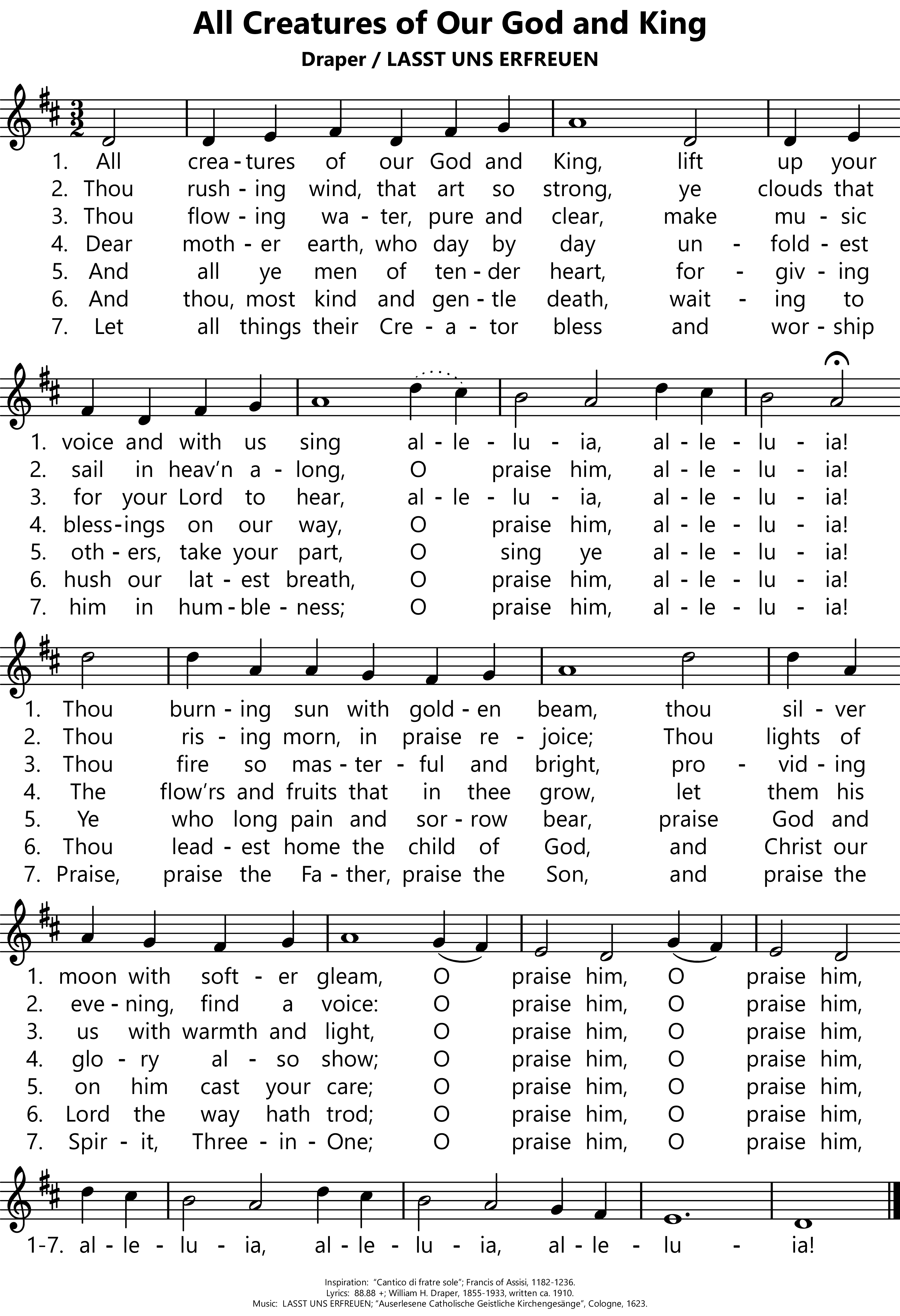 | Inspiration: | Il Cantico del Frate Sole; Francis of Assisi, 1182-1236. |