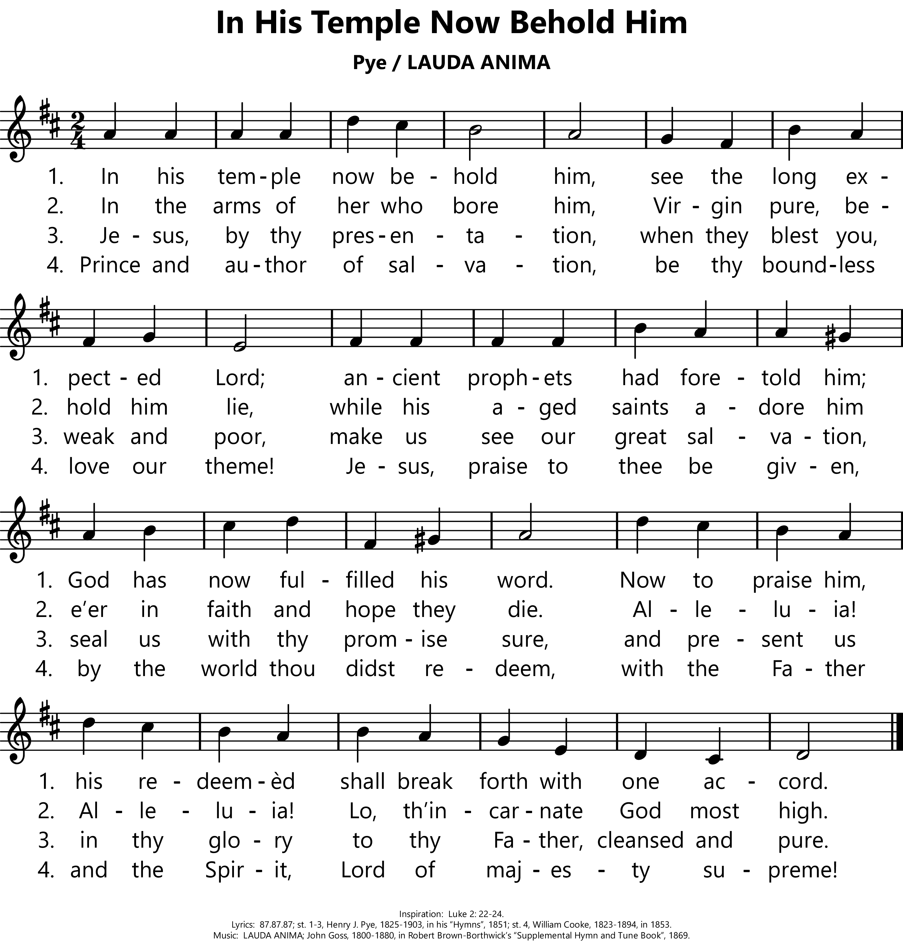 | Lyrics: | st. 1-3, Henry J. Pye, 1825-1903, in his Hymns, 1851; st. 4, William Cooke, 1823-1894, in 1853. |