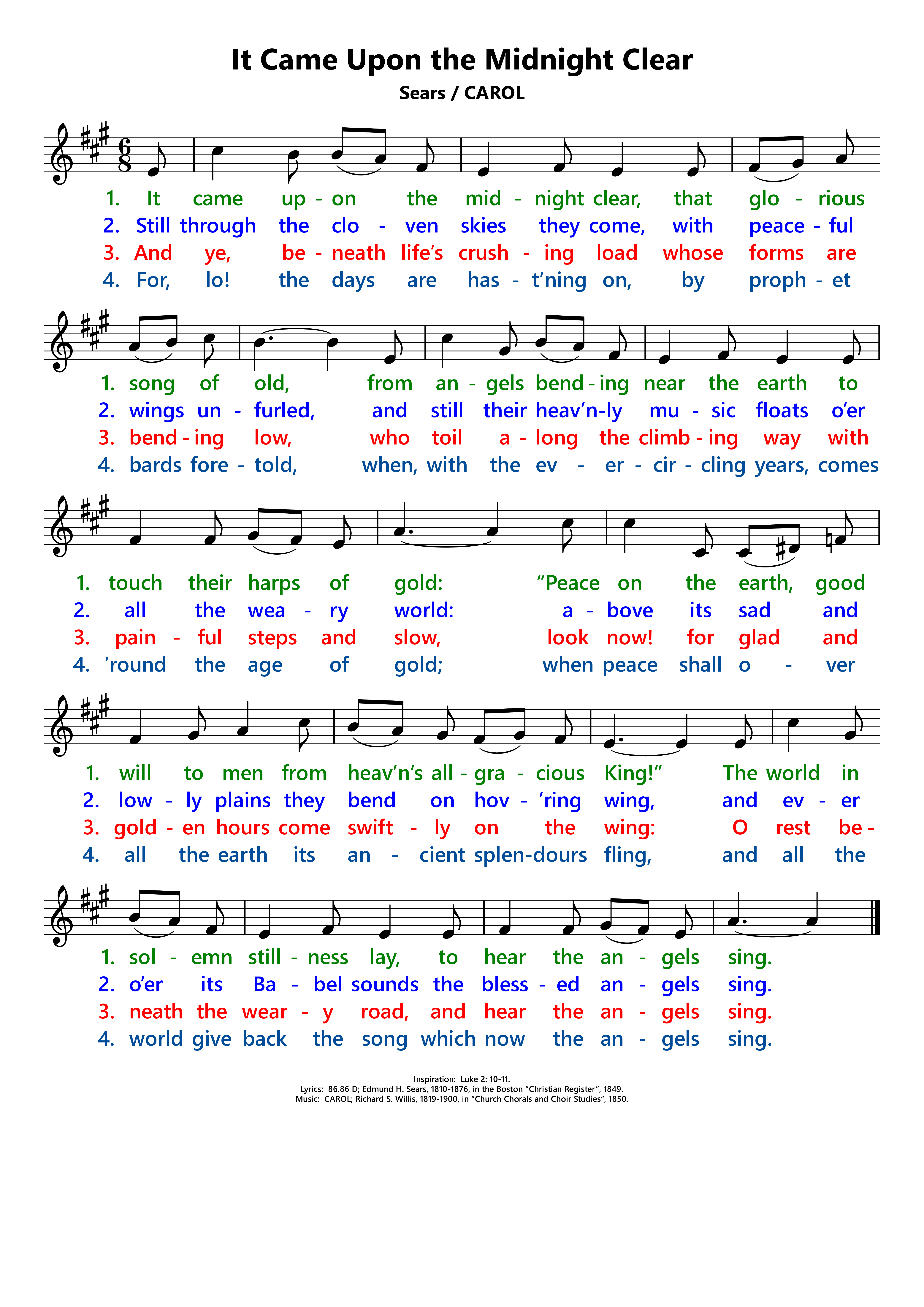 | Lyrics: | Edmund H. Sears, 1835-1893, in the Boston Christian Register, 1849. |