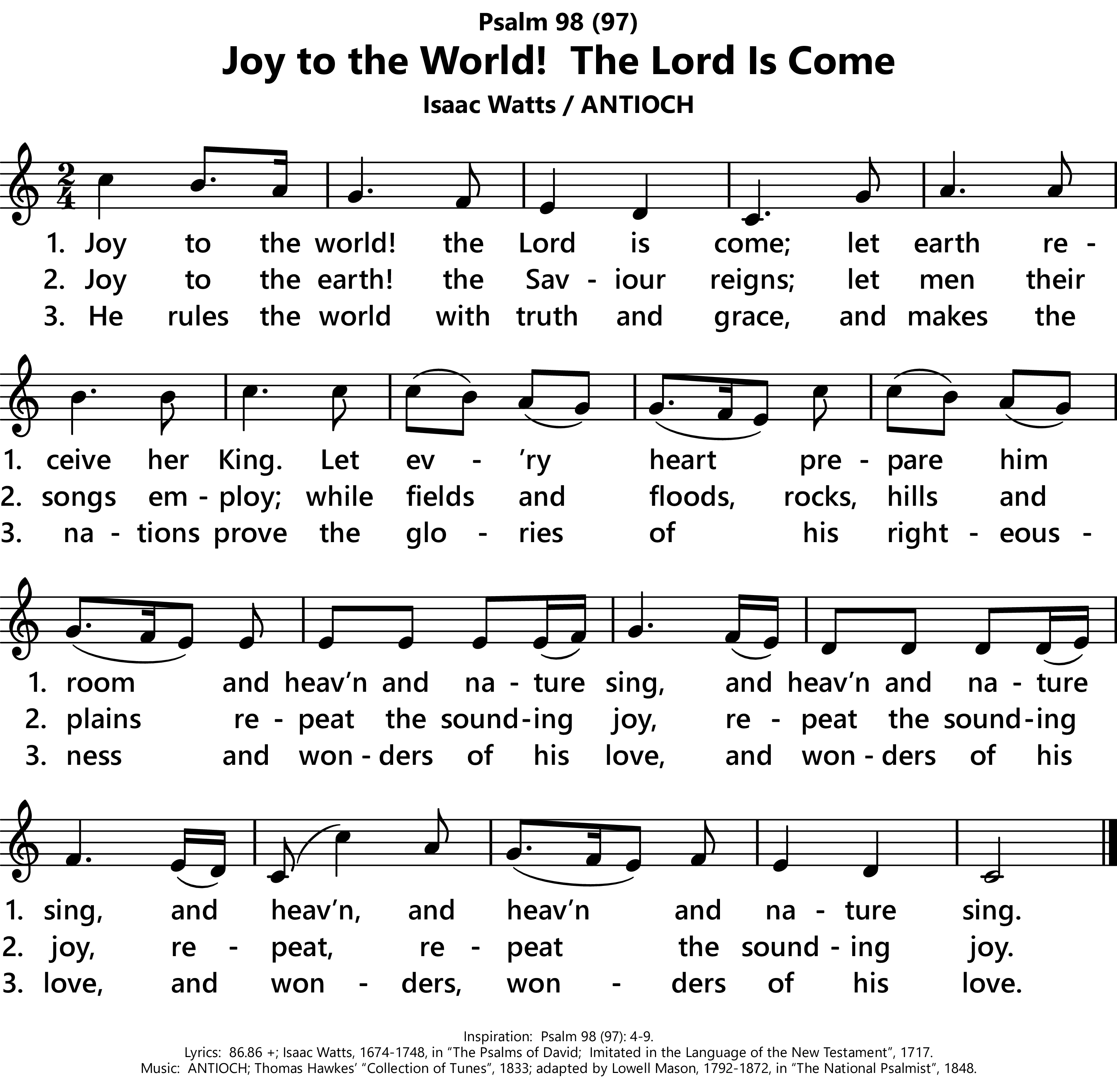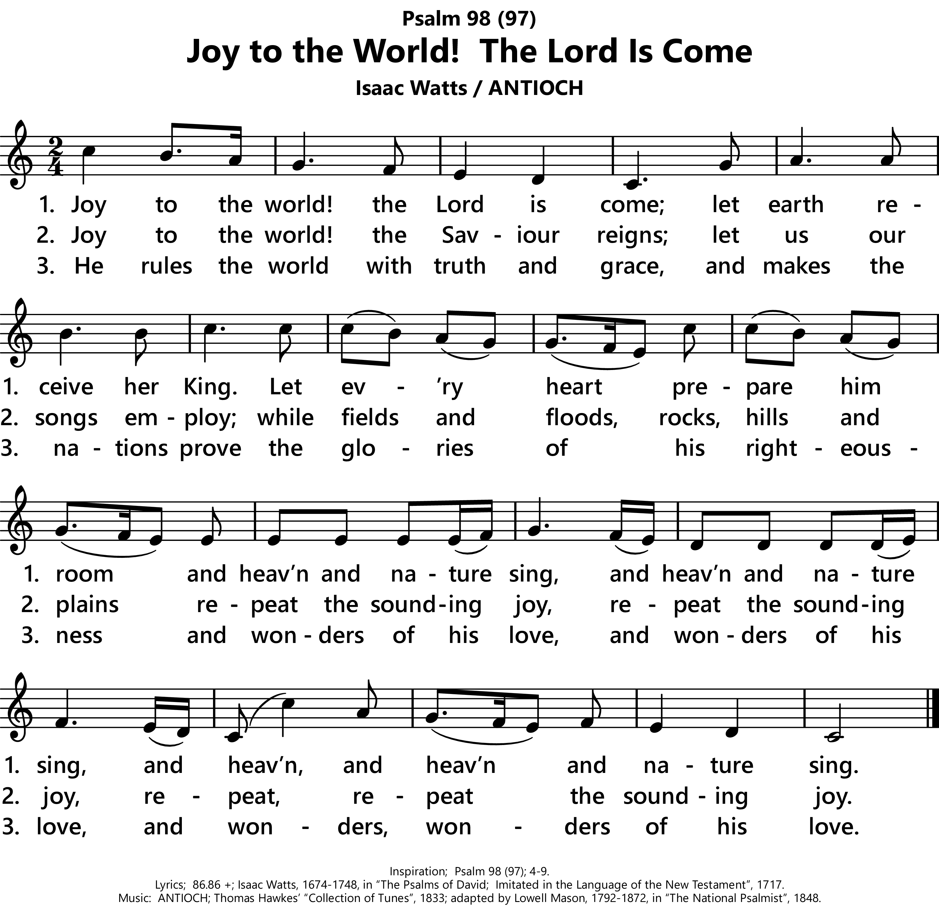 | Lyrics: | Isaac Watts, 1674-1748, in The Psalms of David: Imitated in the Language of the New Testament, 1717. |