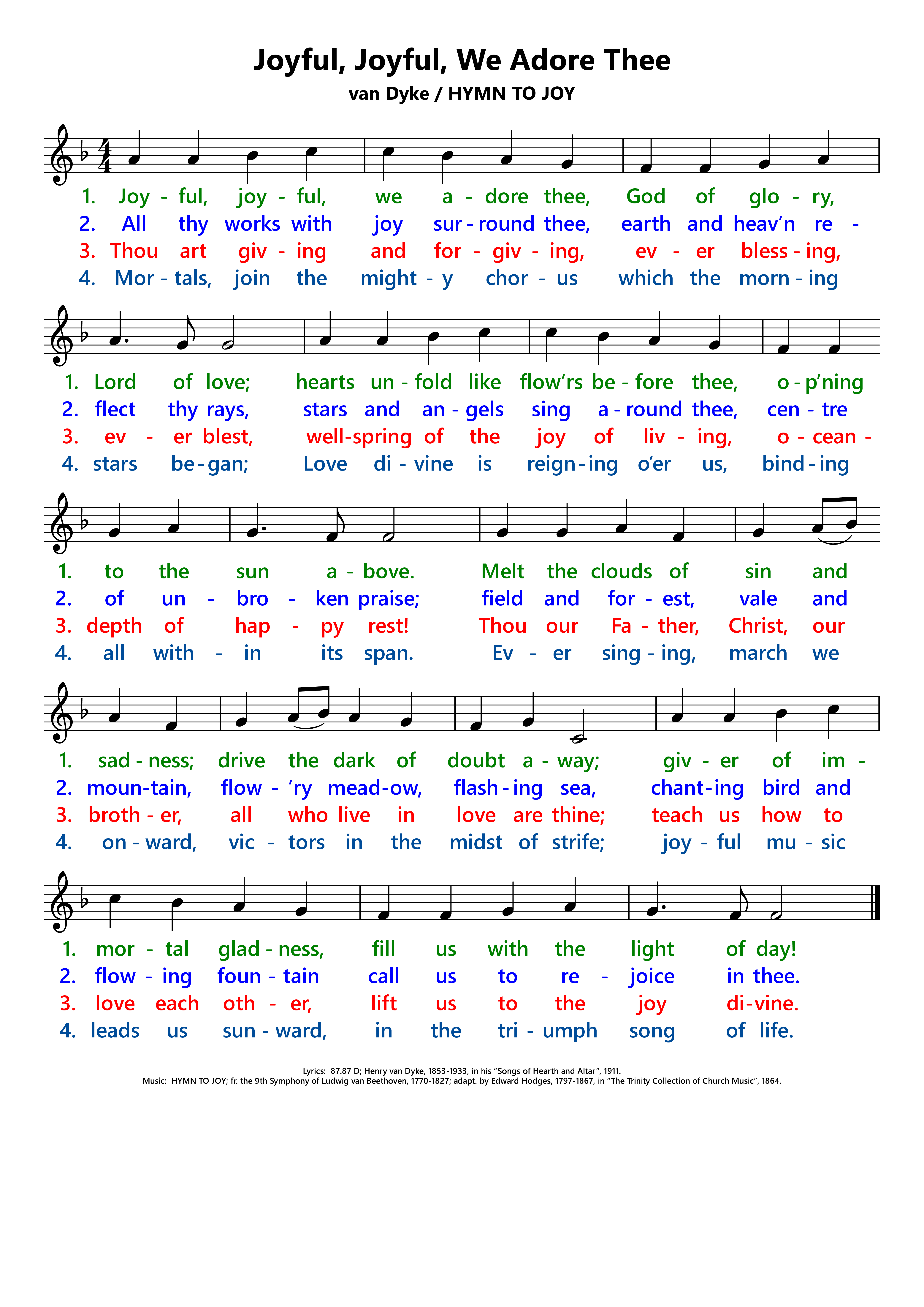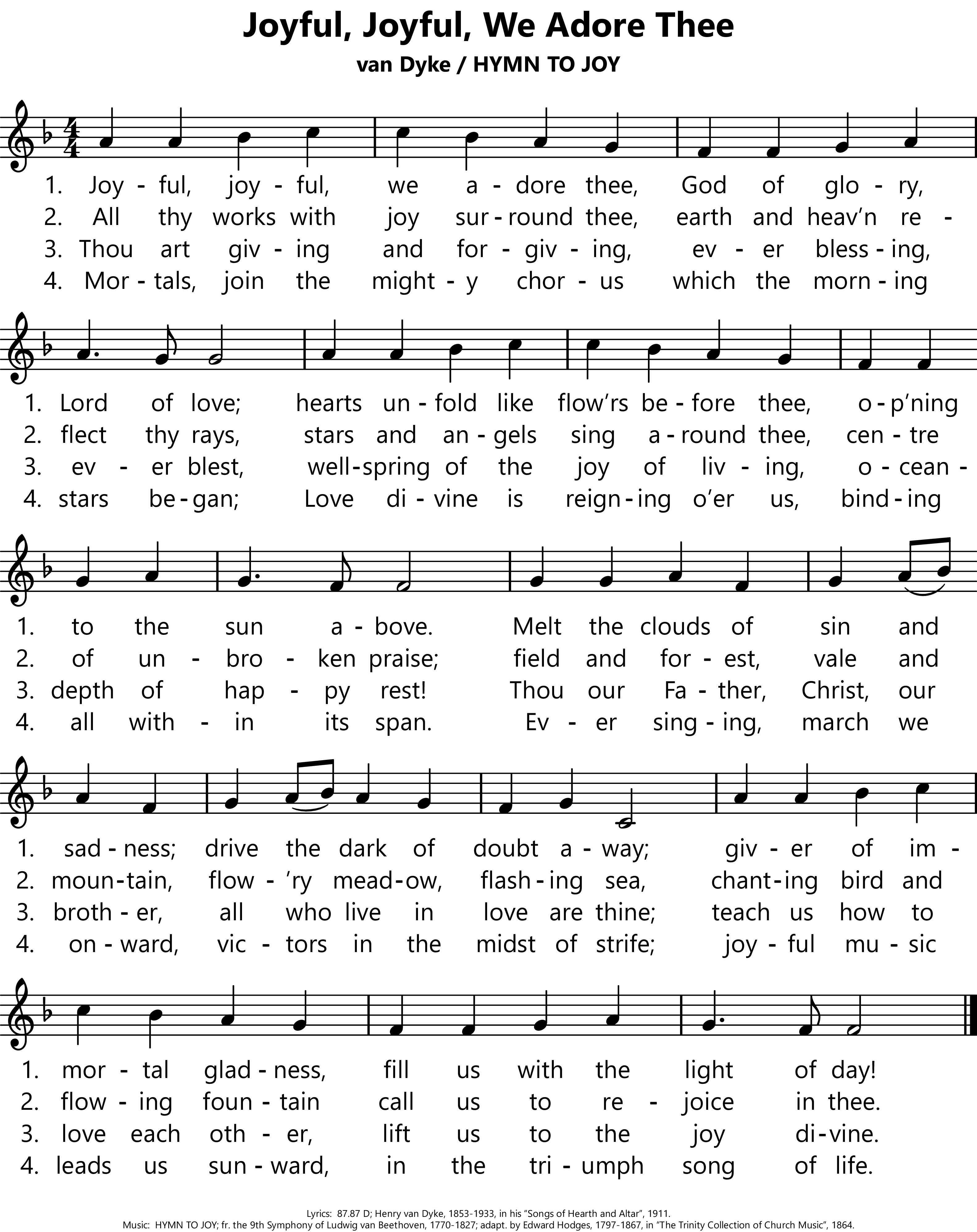 Lyrics:    Henry van Dyke, 1853-1933, in his Songs of Hearth and Altar, 1911.