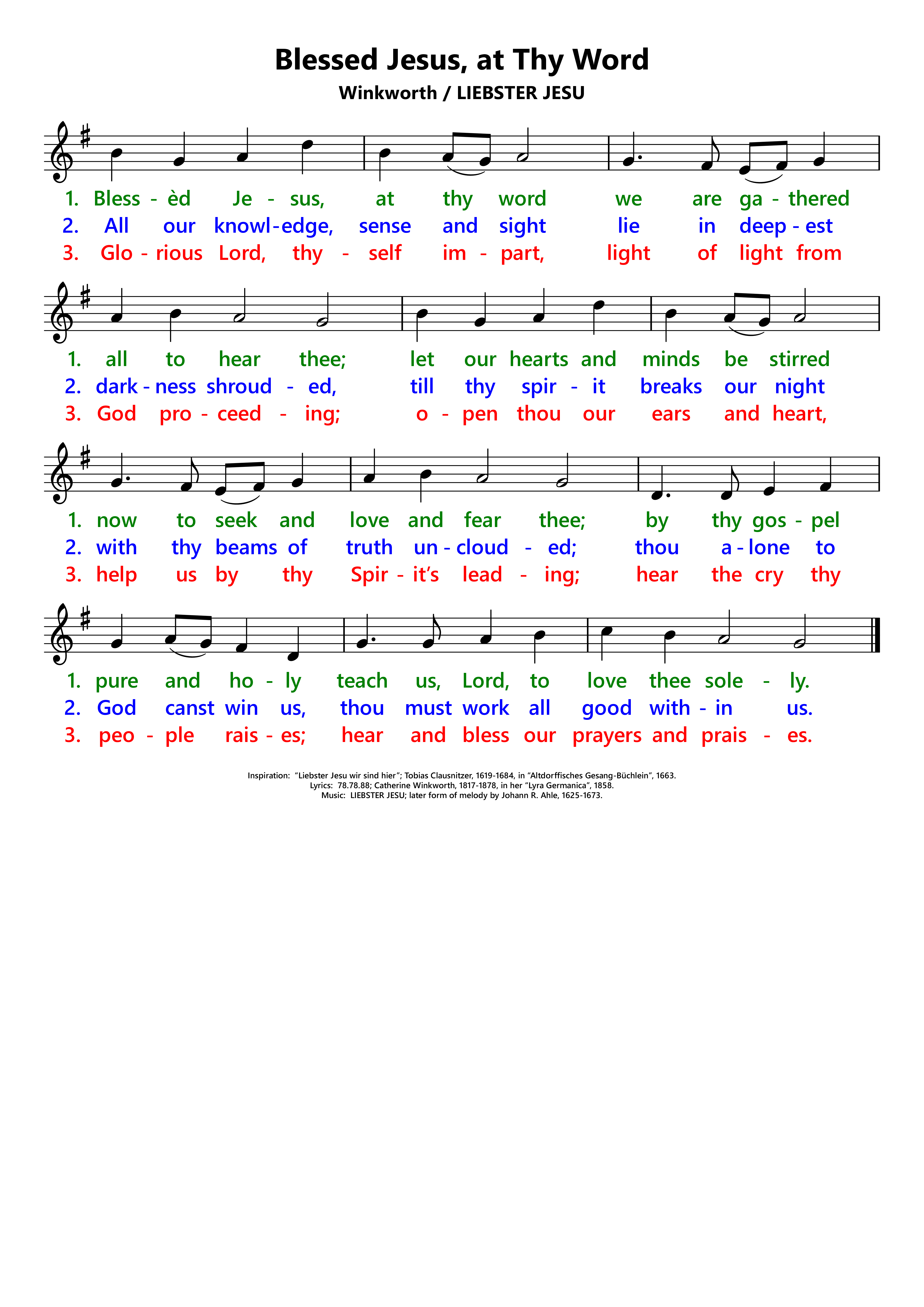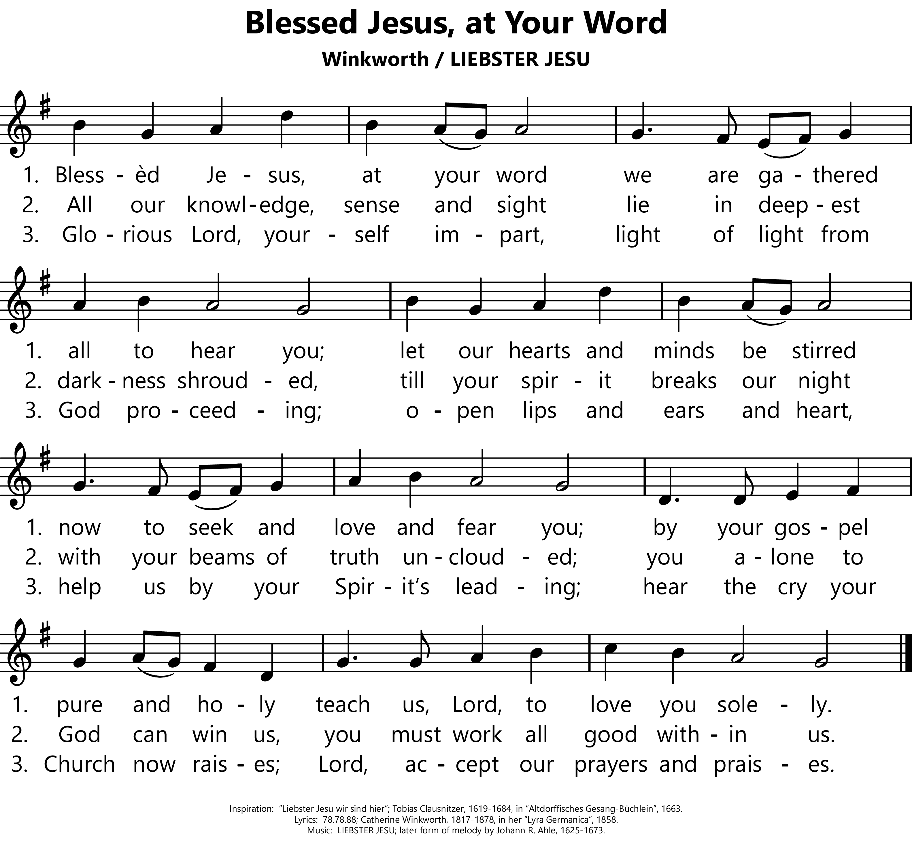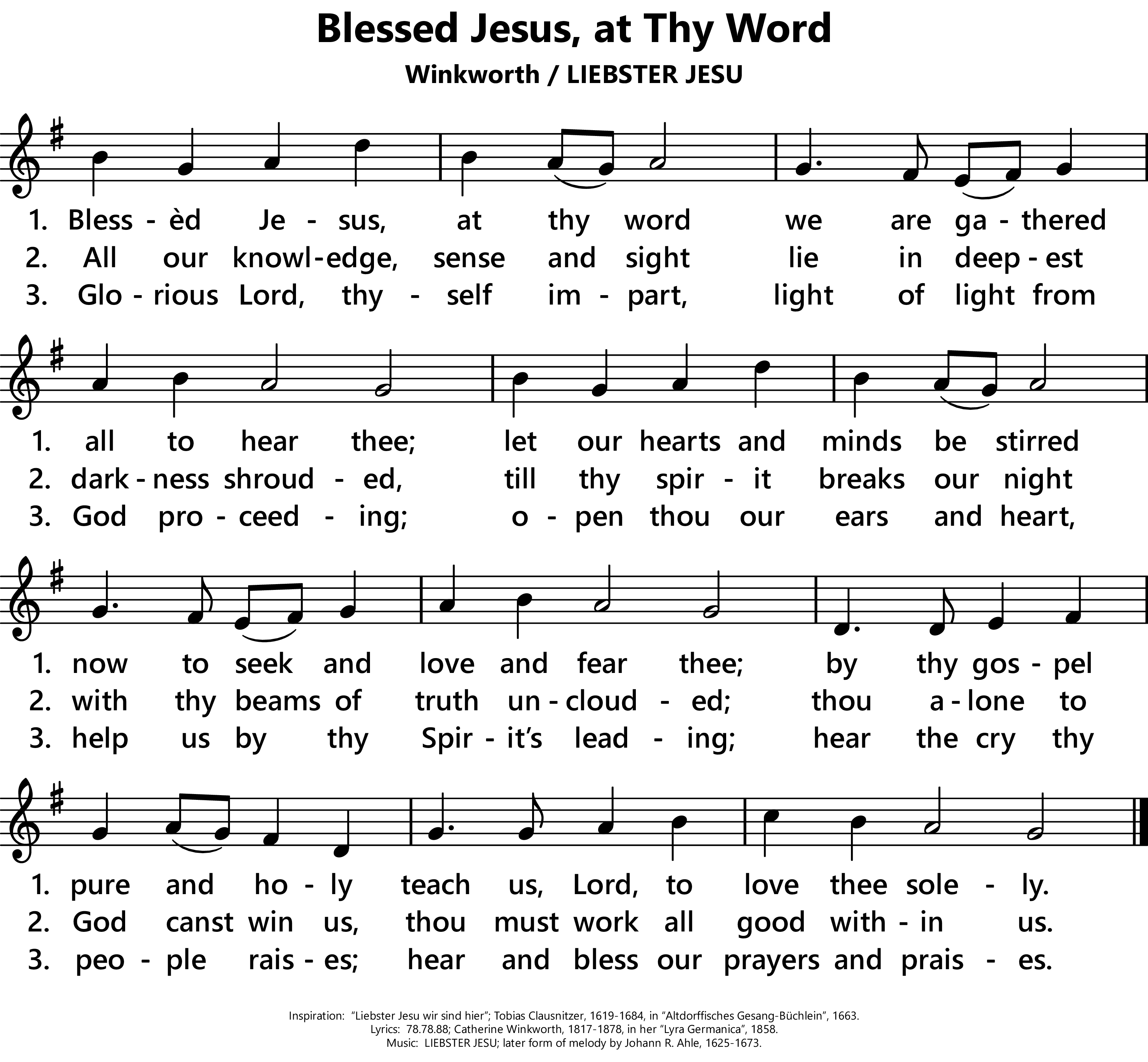 | Inspiration: | Liebster Jesu wir sind hier; Tobias Clausnitzer, 1619-1684, in Altdorffisches Gesang-Büchlein, 1663. |
