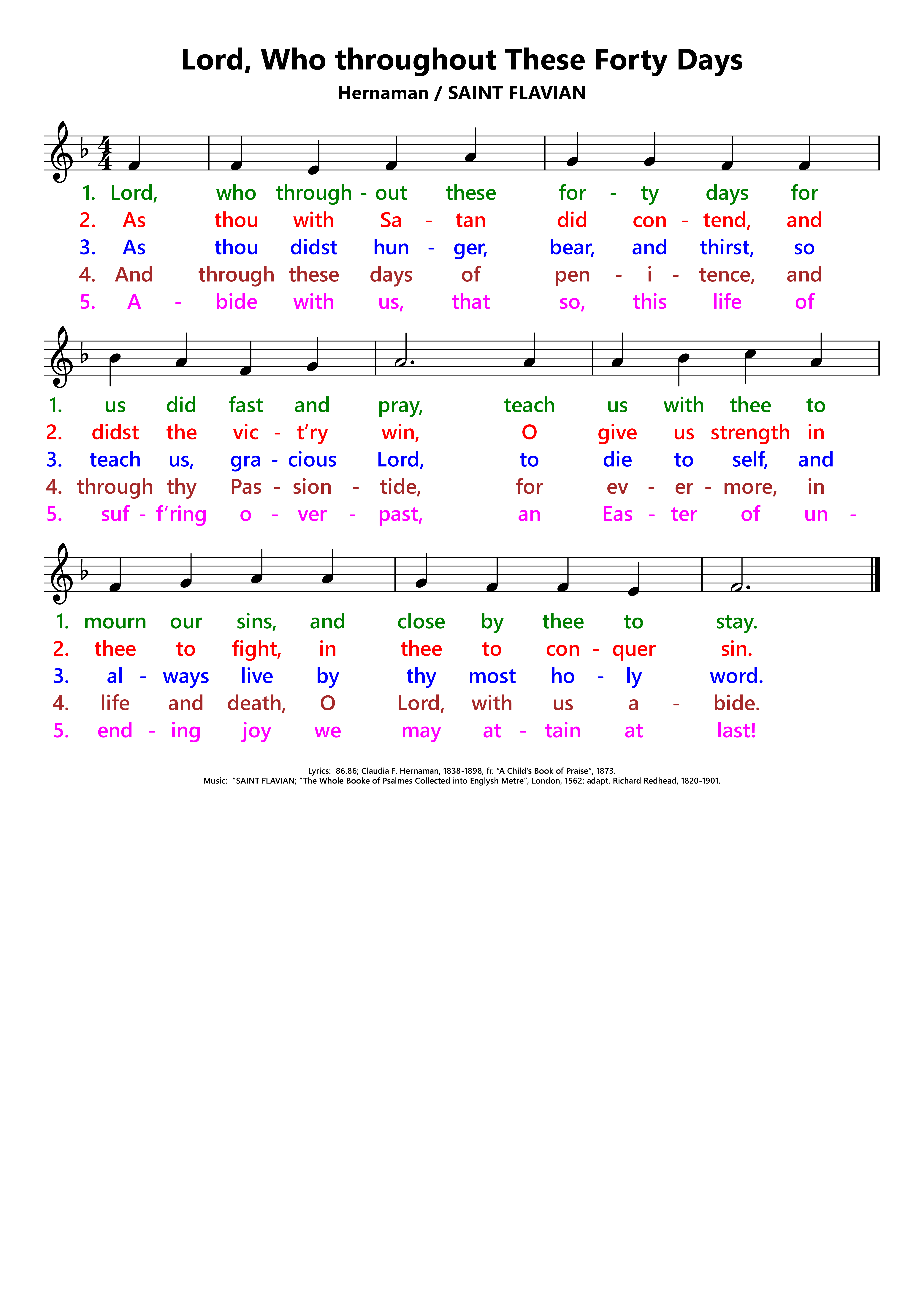 Lyrics:    Claudia F. Hernaman, 1838-1898, from The Child’s Book of Praise, 1873.