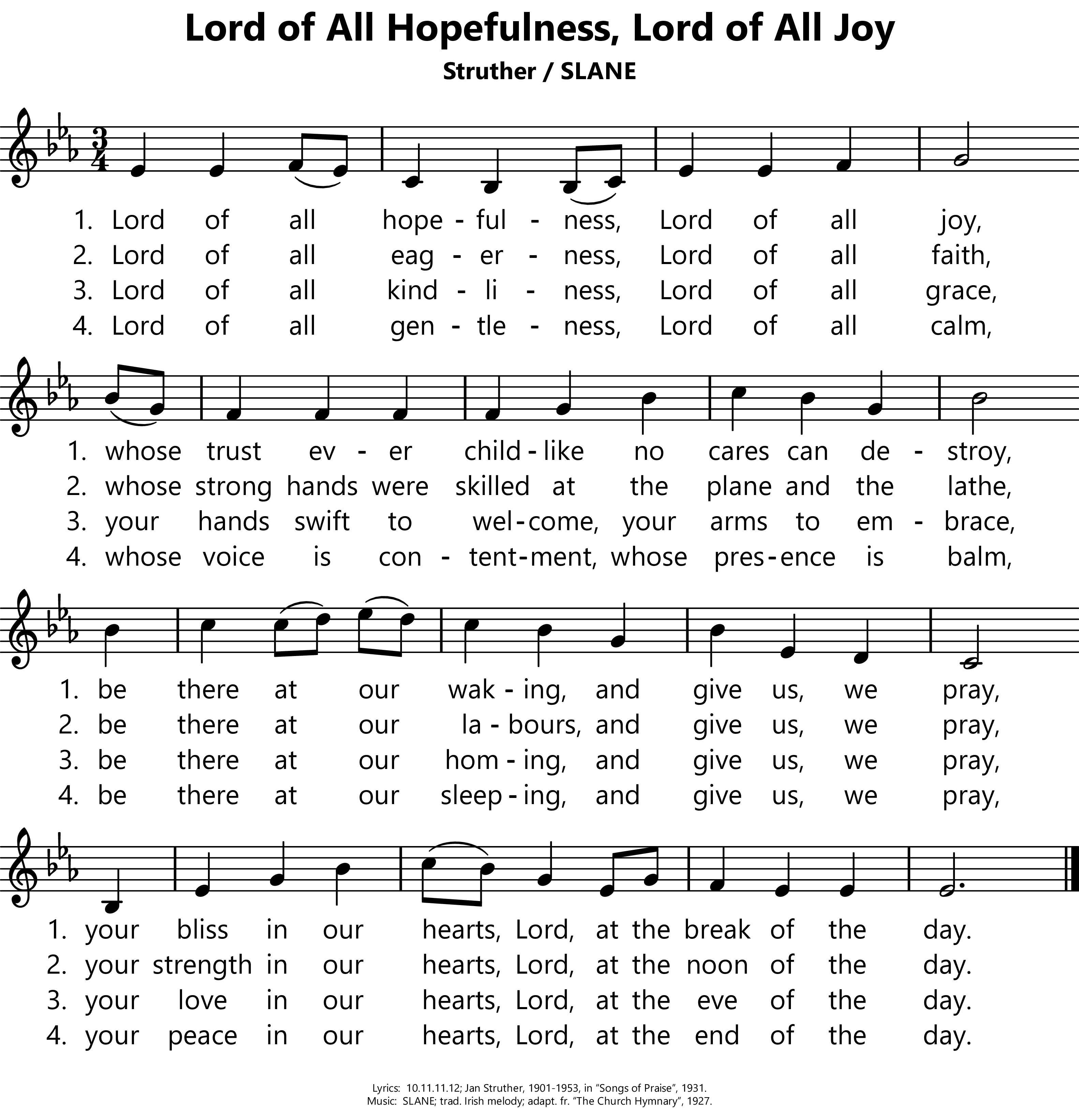 | Lyrics: | Jan Struther, 1901-1953, pen-name of Joyce Torrens-Graham, in Songs of Praise, 1931. |