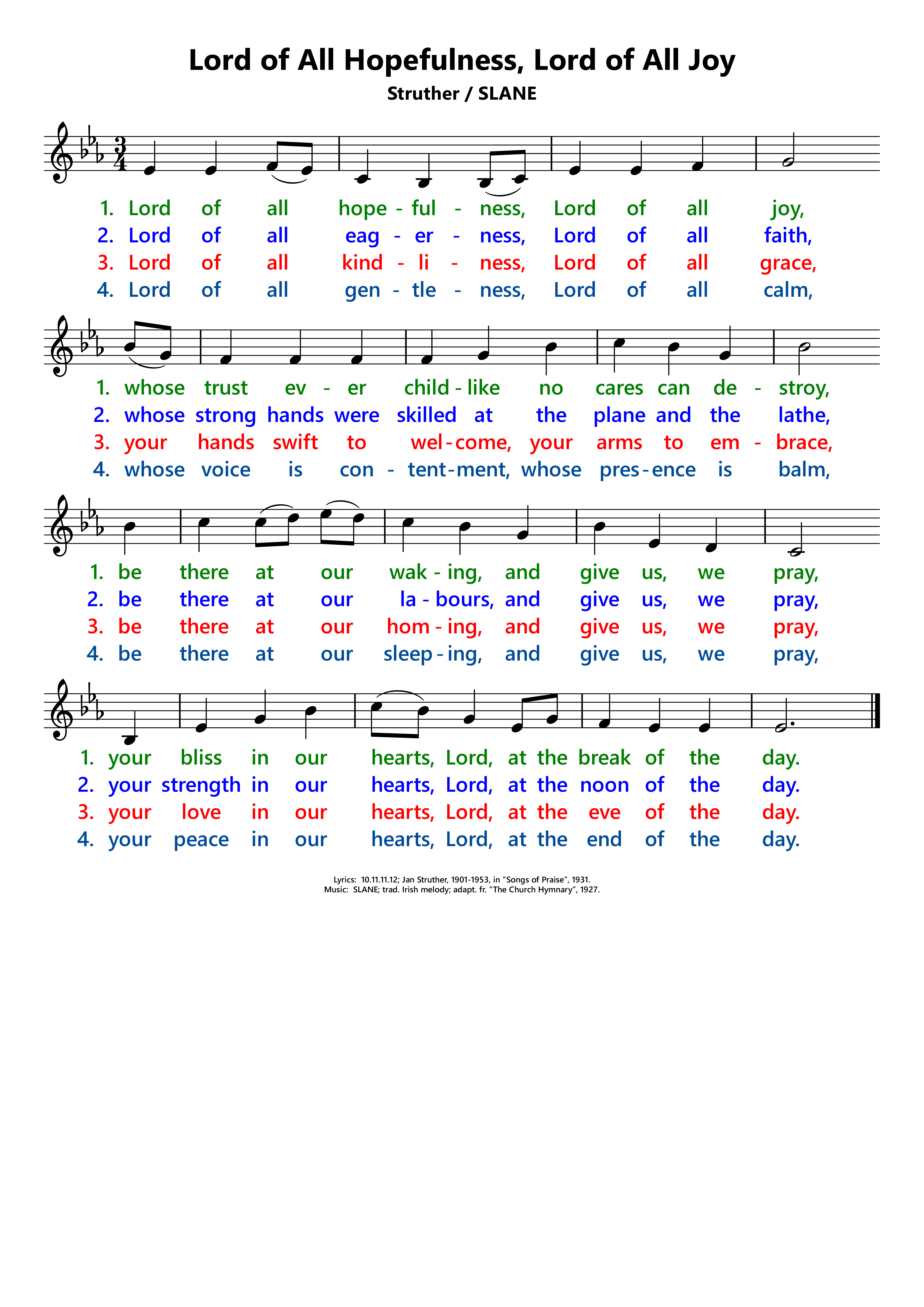 | Composer: | traditional Irish melody; adapted in The Church Hymnary, 1927; keyboard accompaniment from www.hymnquest.com. |