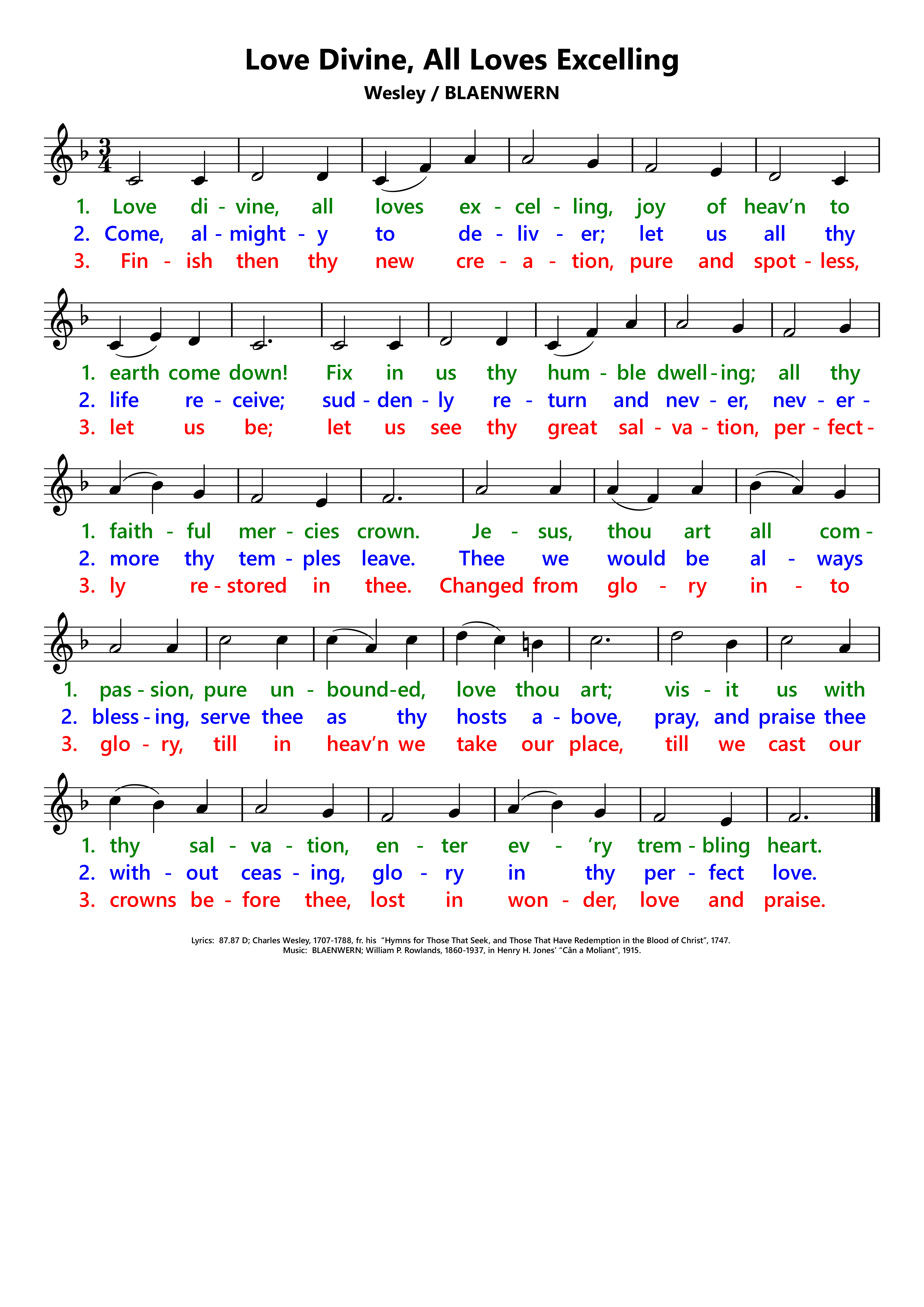 Lyrics: traditional • Worship, 4th ed. Tune: BLAENWERN • HYFRYDOL • LOVE DIVINE