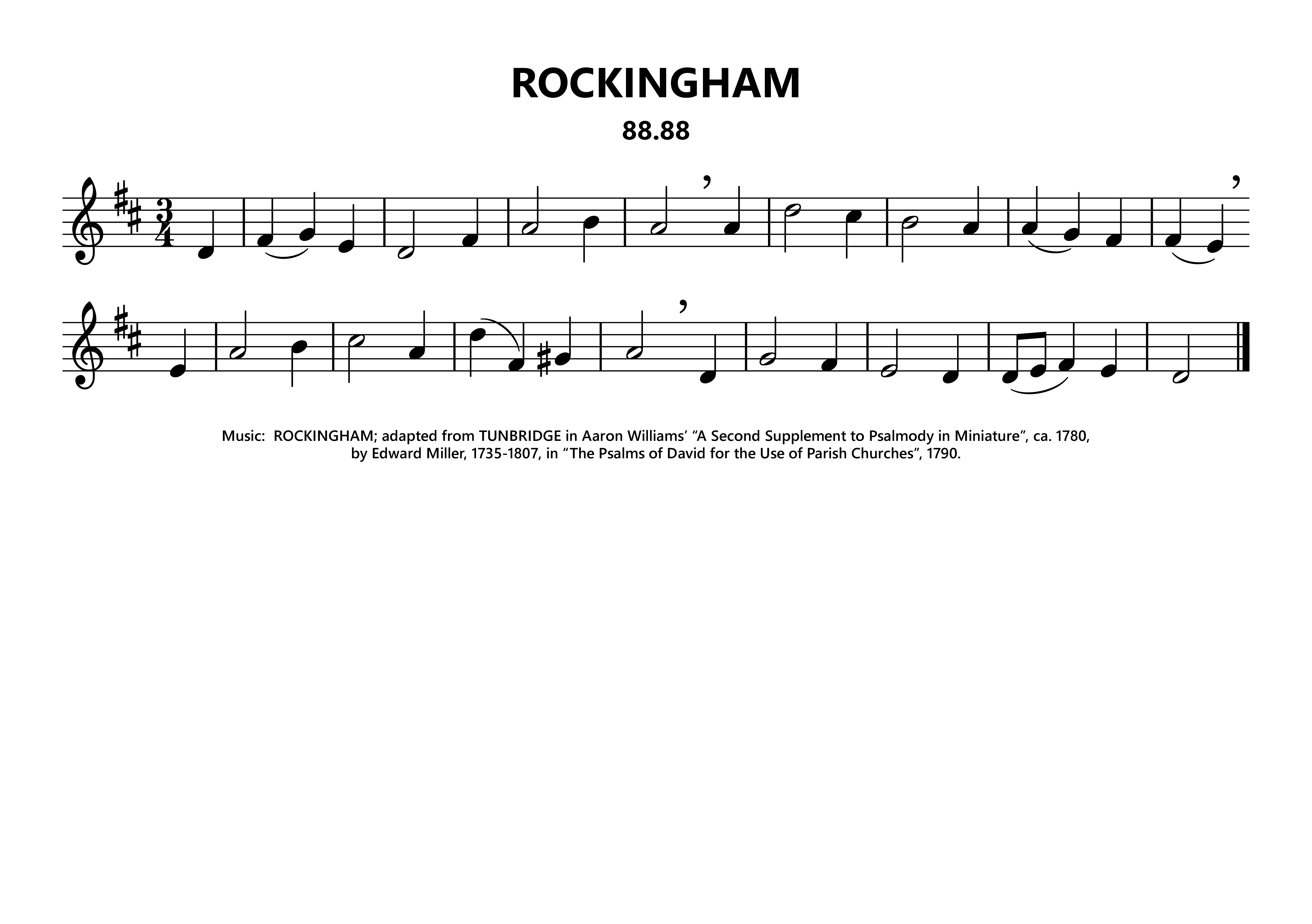 | Composer: | Edward Miller, 1735-1807, in The Psalms of David for the Use of Parish Churches, 1790; adapt. fr. TUNEBRIDGE in Aaron Williams’ A Second Supplement to Psalmody in Miniature, ca. 1780. |
