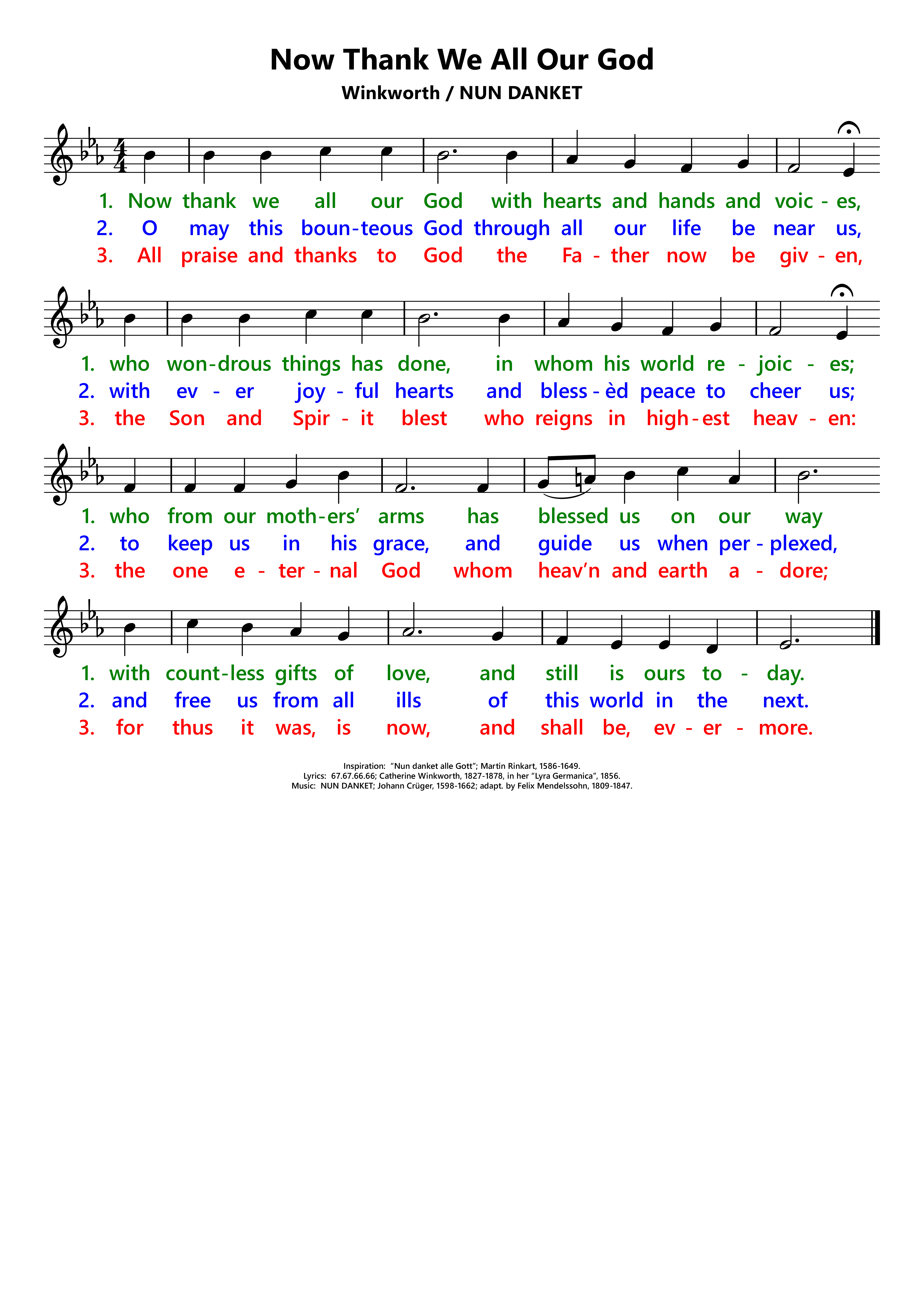 | Inspiration: | Nun danket alle Gott; Martin Rinkart, 1586-1649. |