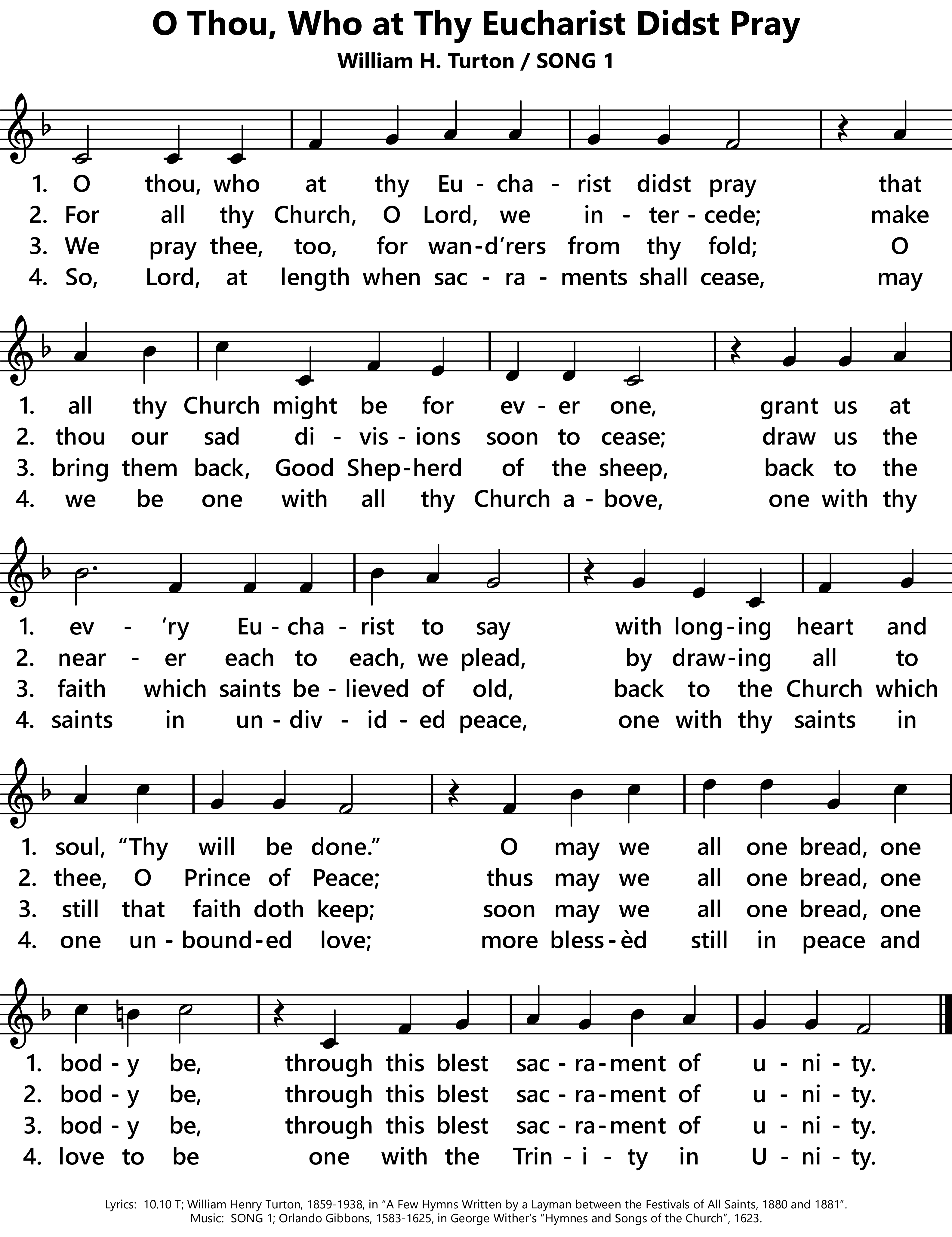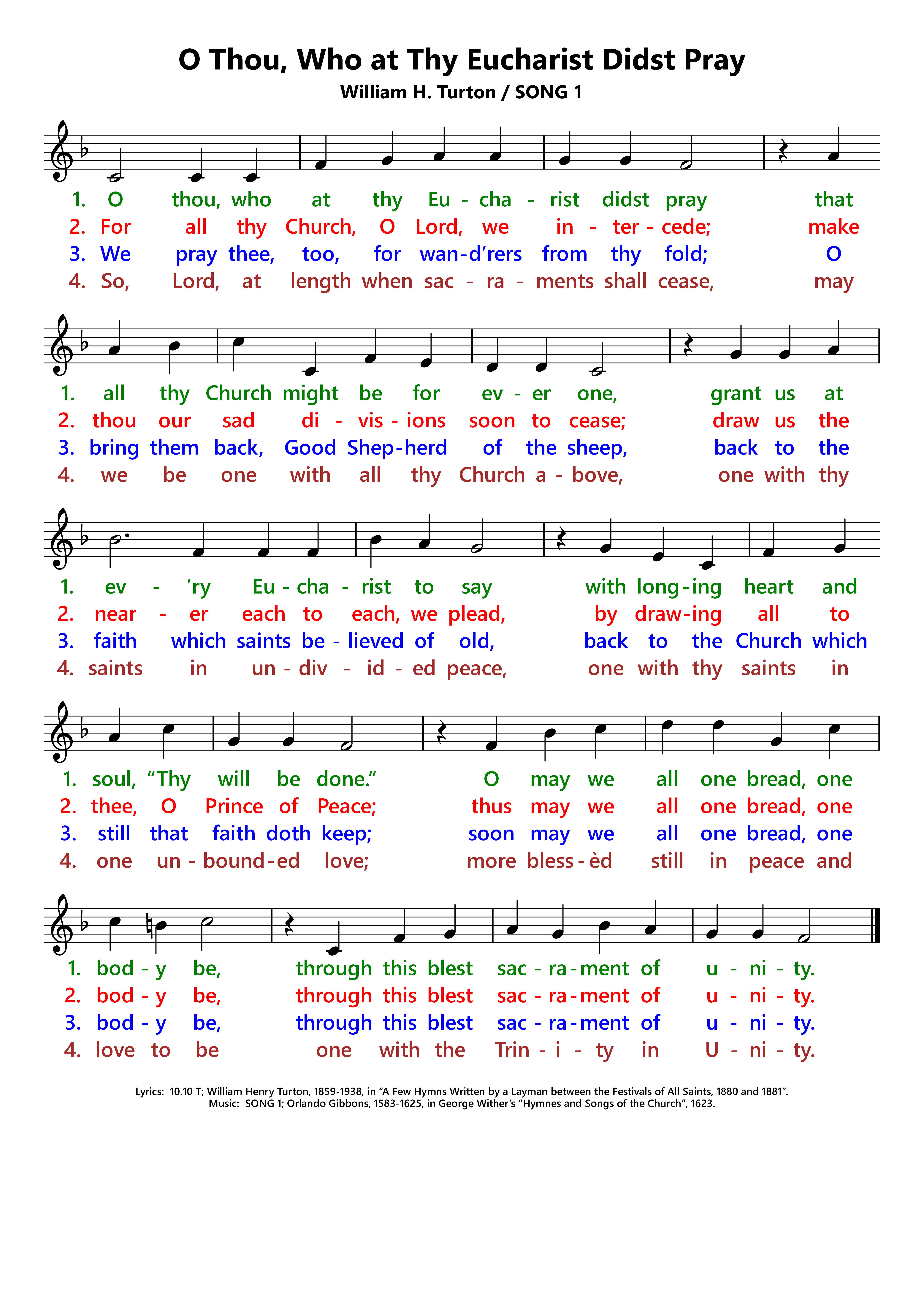 | Lyrics: | William Henry Turton, 1859-1938, in A Few Hymns Written by a Layman between the Festivals of All Saints, 1880 and 1881. |