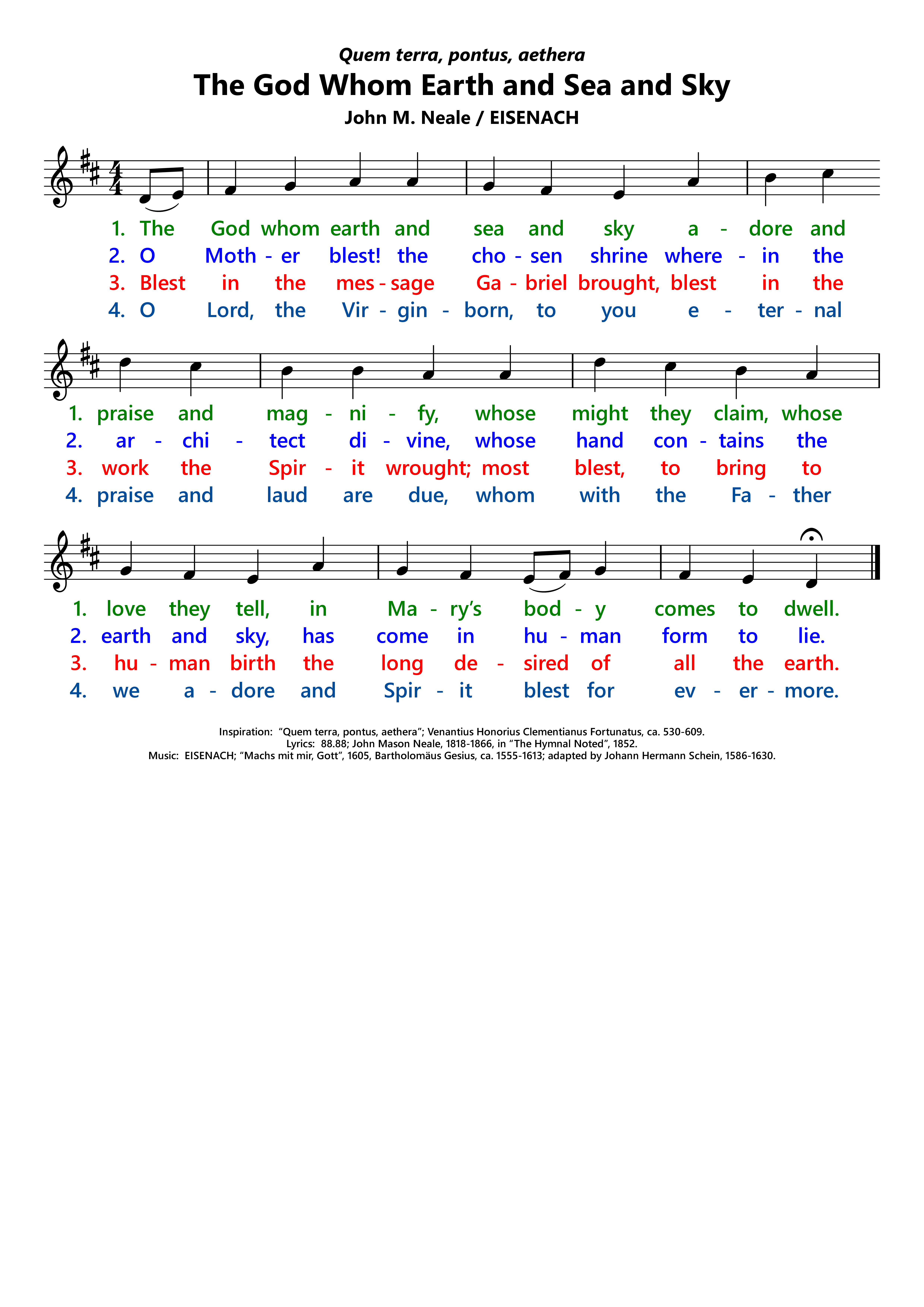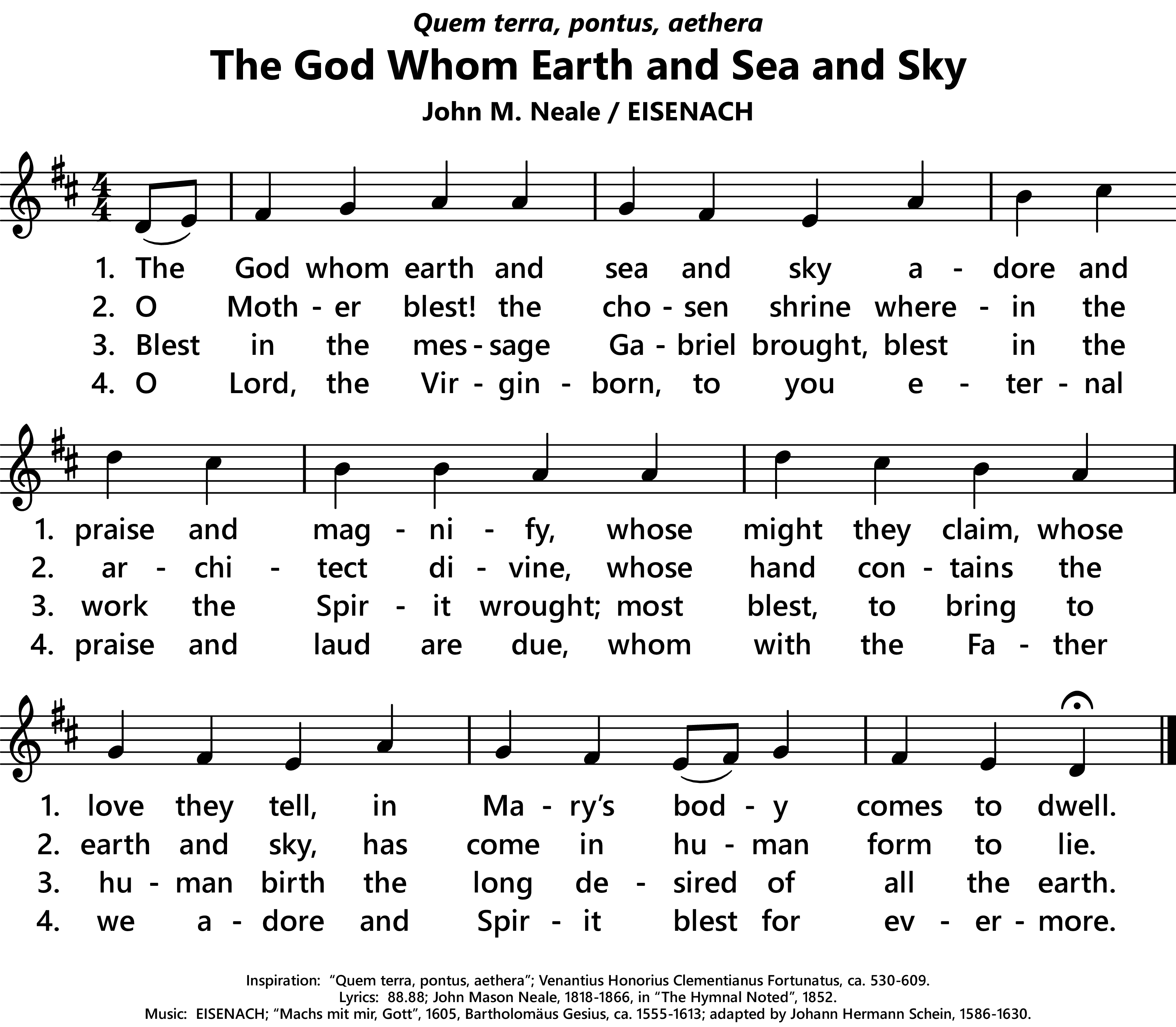 | Composer: | Bartholomäus Gesius, ca. 1555-1613; adapted by Johann Hermann Schein, 1586-1630; harmonized by Johann Sebastian Bach, 1685-1750. |