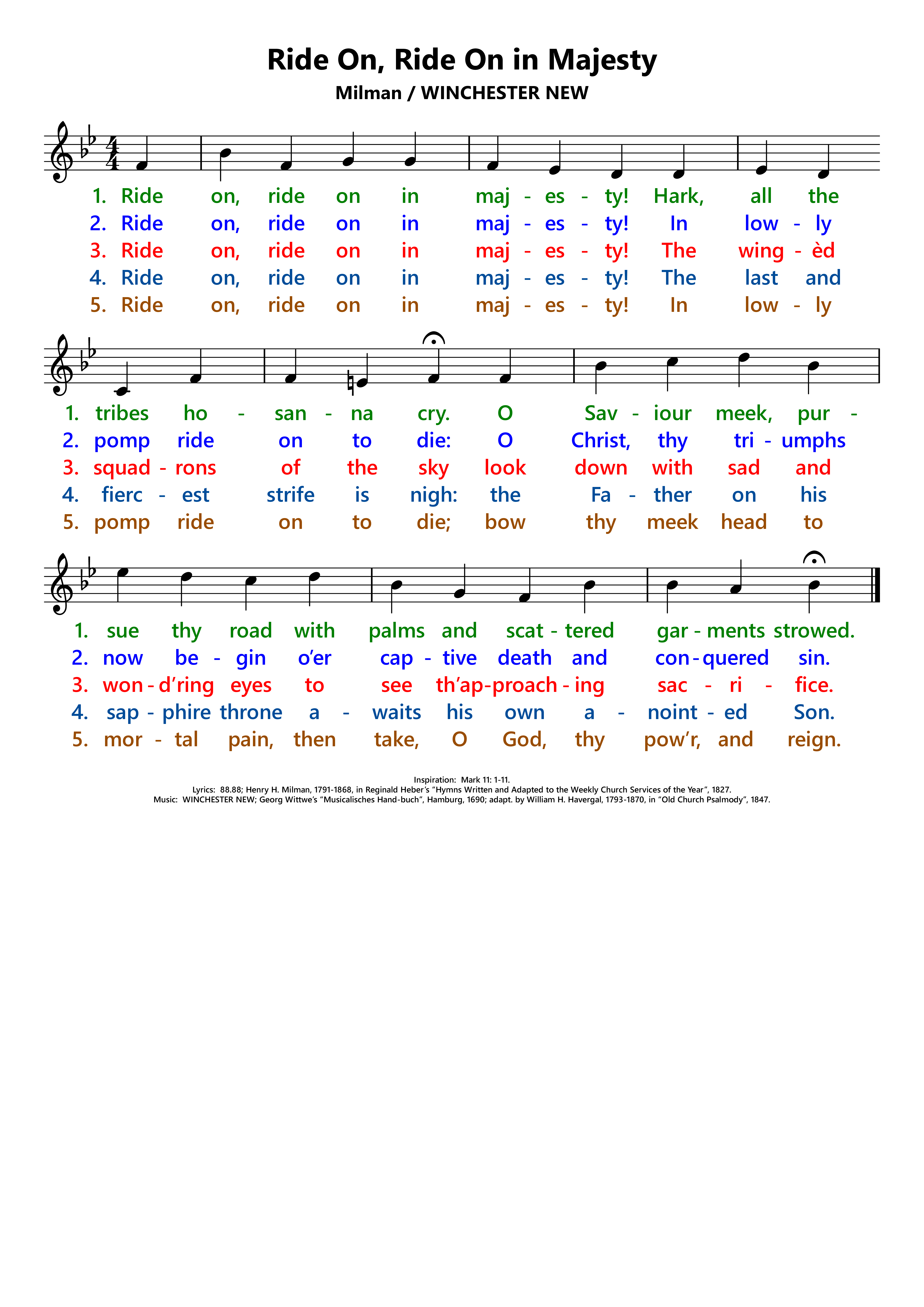 | Lyrics: | Henry Hart Milman, 1791-1868, in Reginald Heber’s Hymns Written and Adapted to the Weekly Church Services of the Year, 1827. |