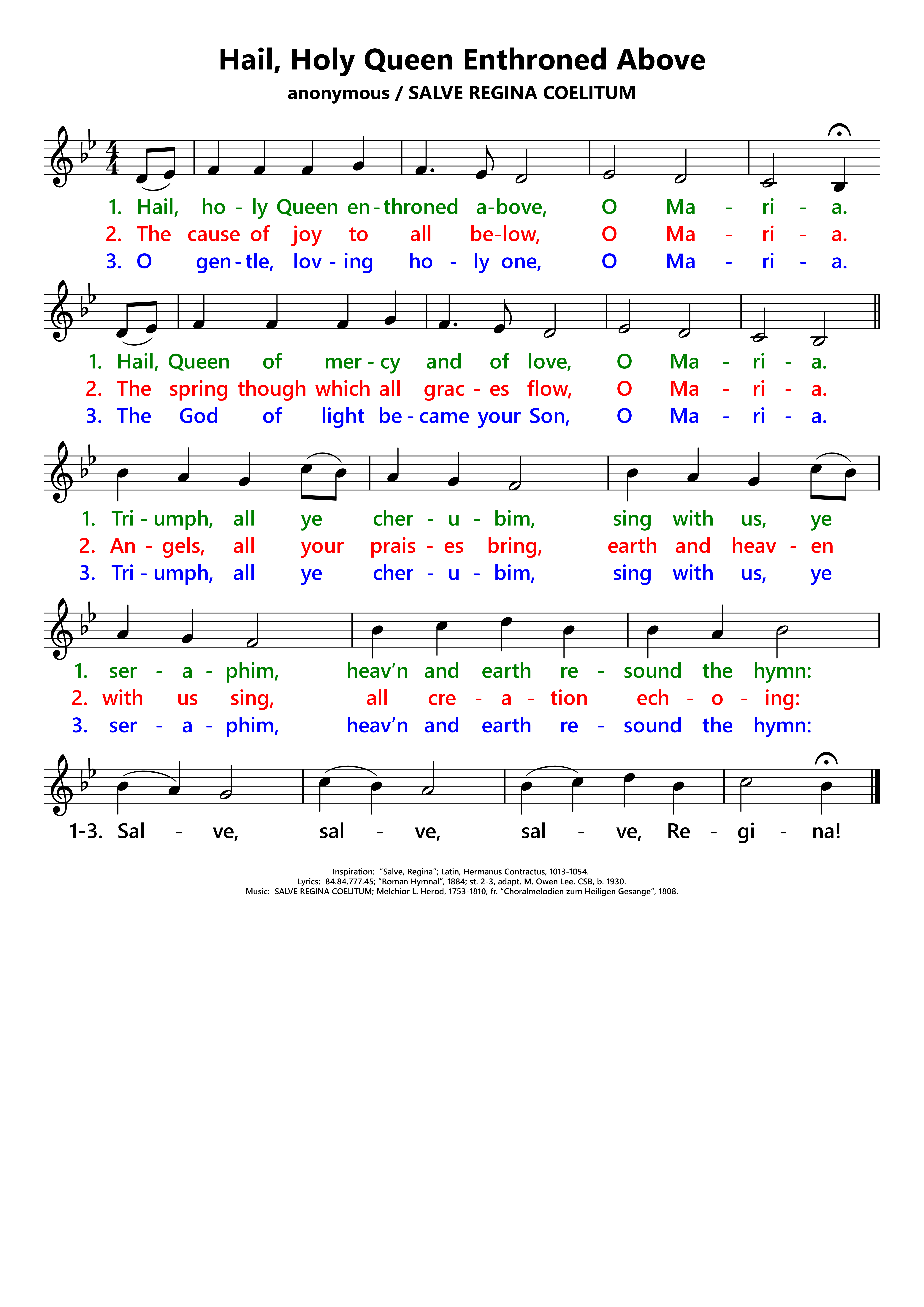 | Inspiration: | Salve, Regina, mater misericordiae; Latin, Hermanus Contractus, 1013-1054. |