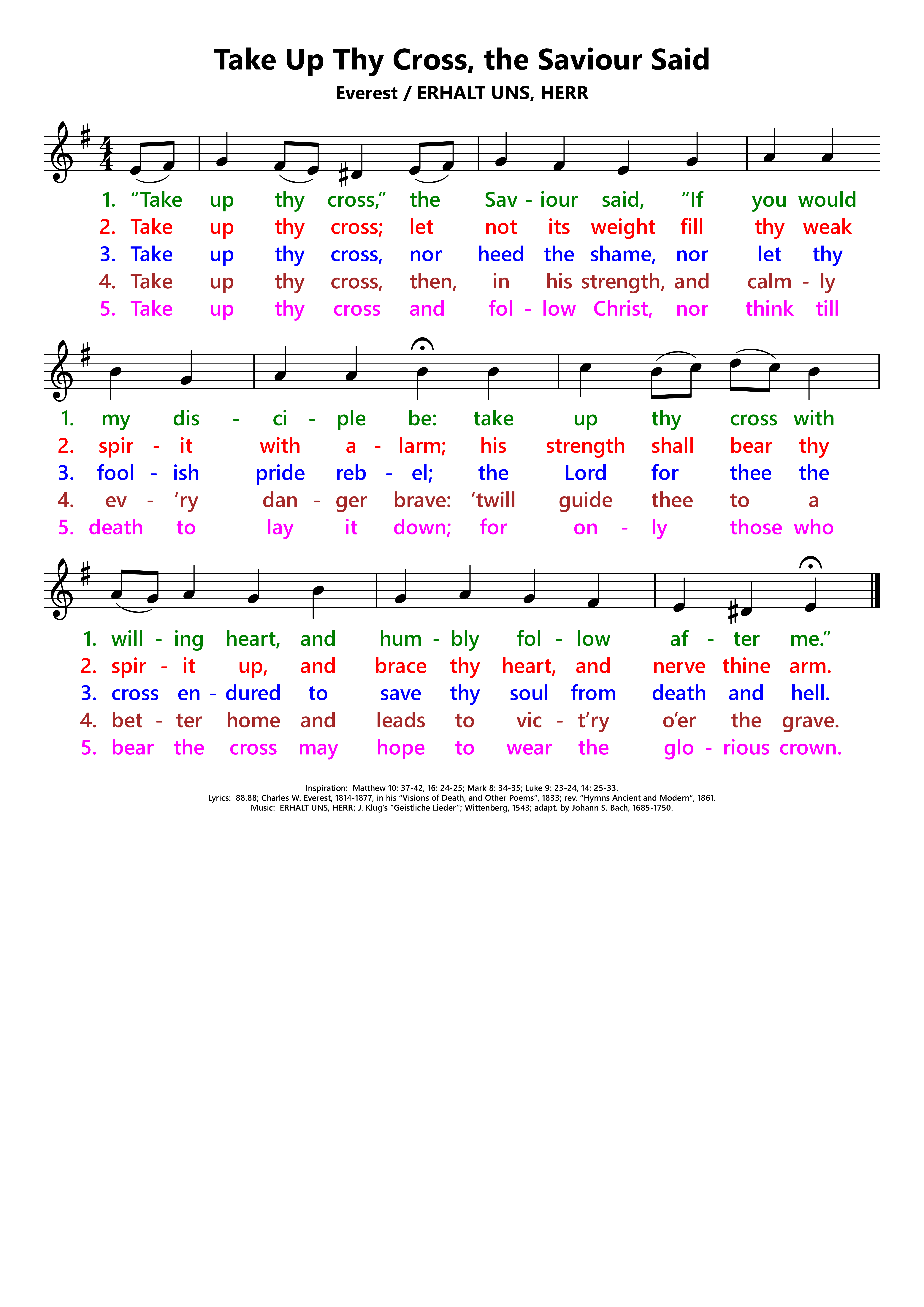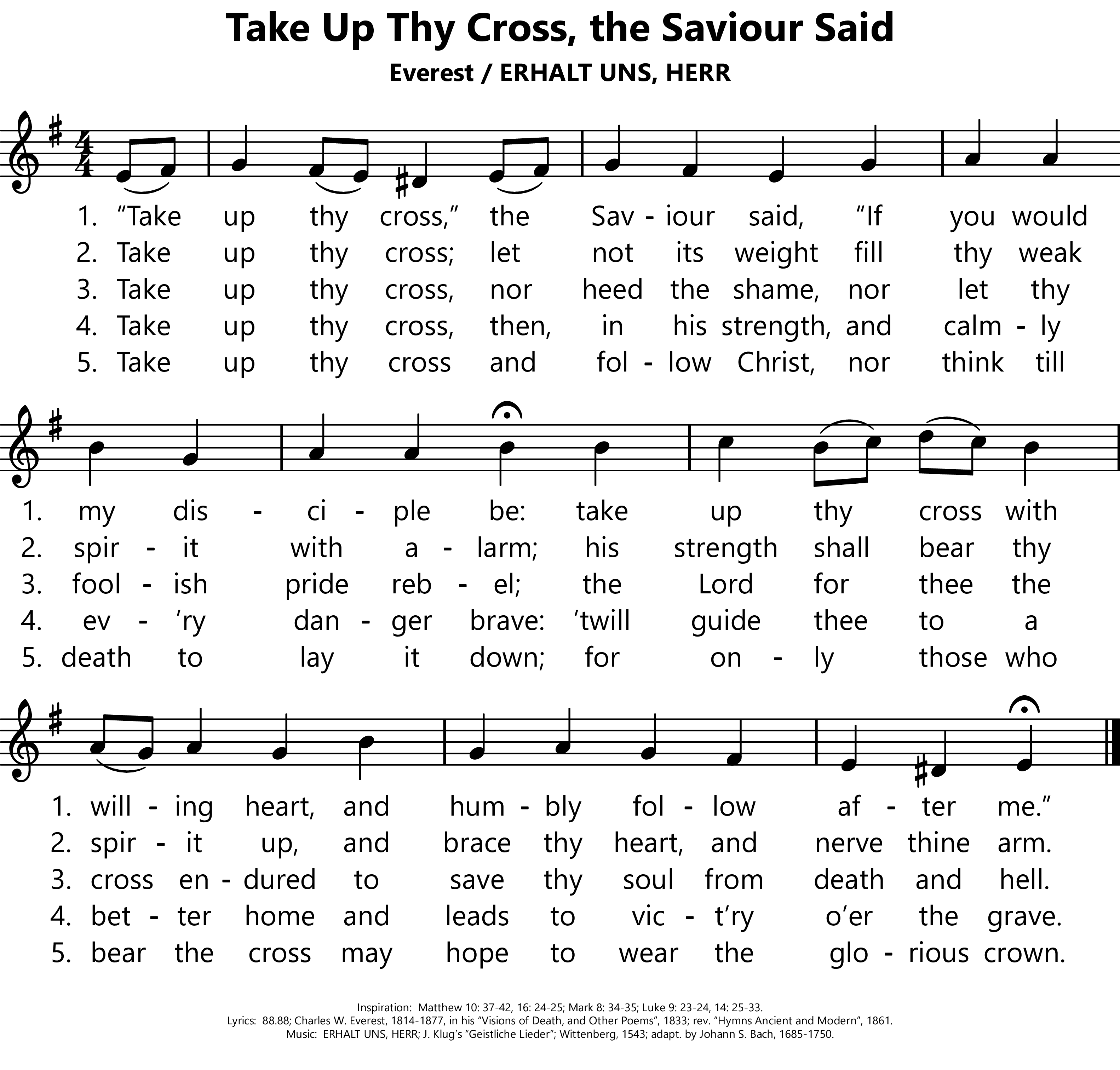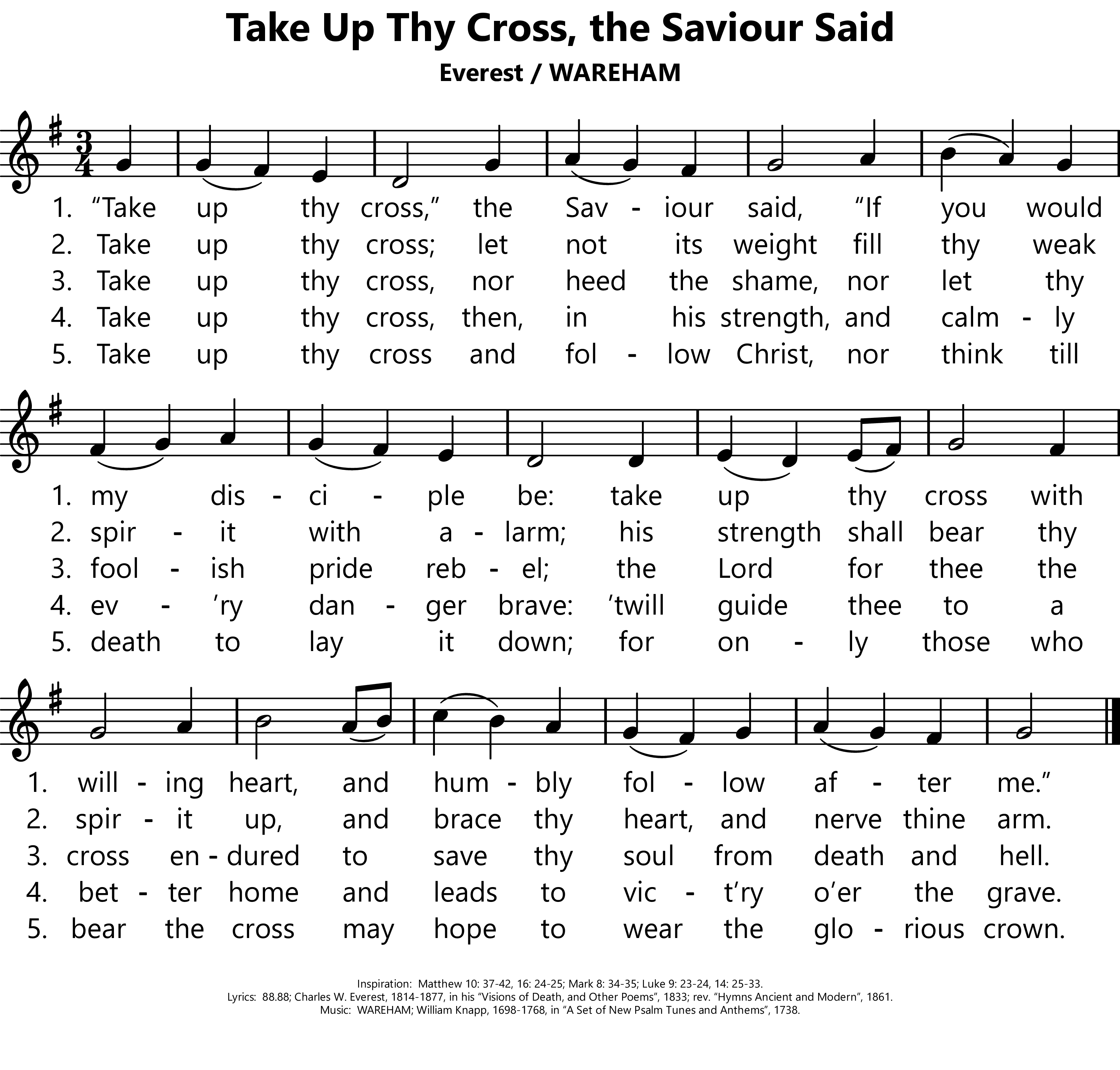 | Alt. title: | Take Up Your Cross, the Saviour Said |