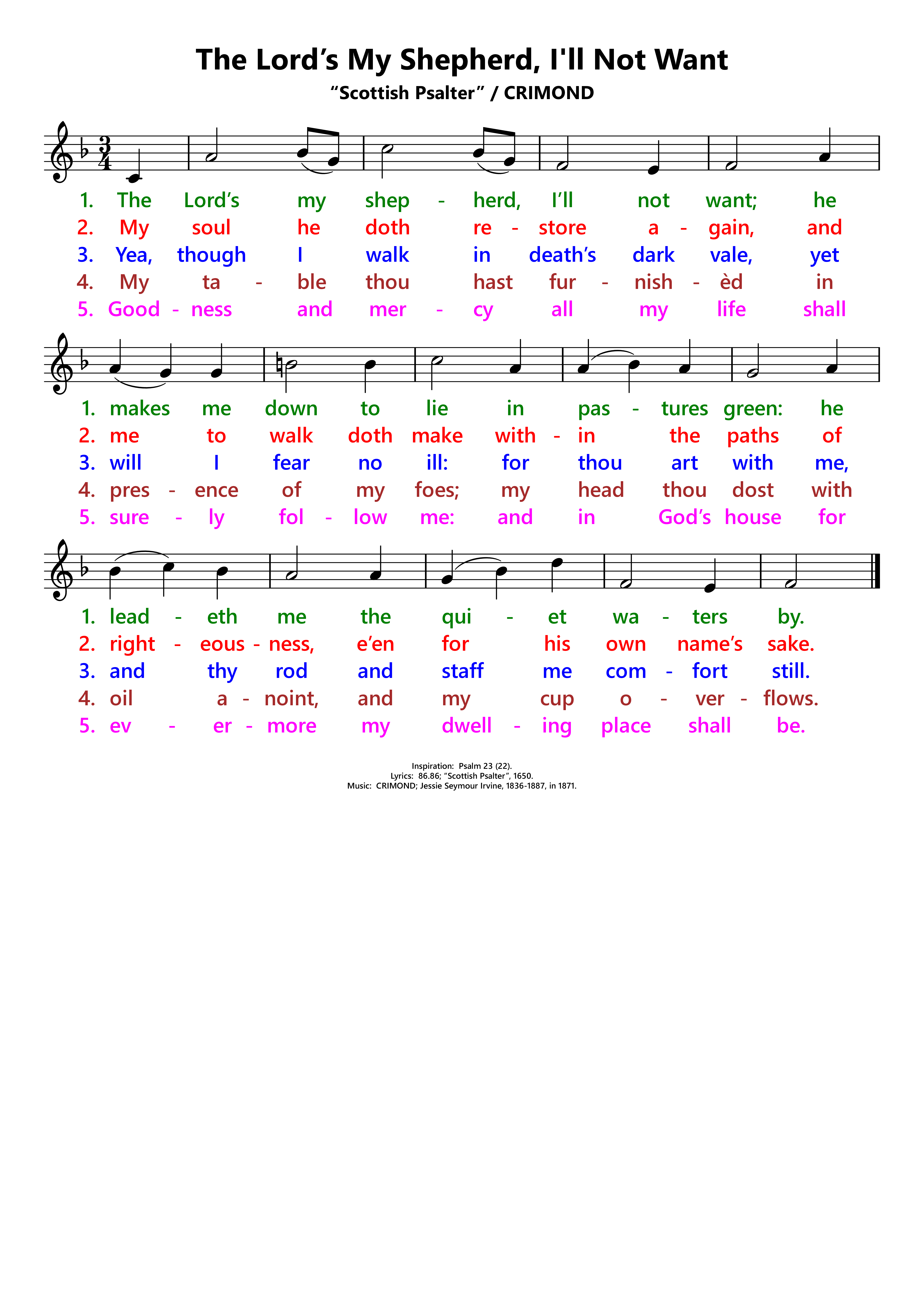 | Lyrics: | The Psalms of David in Meeter, Edinburgh, 1650. |