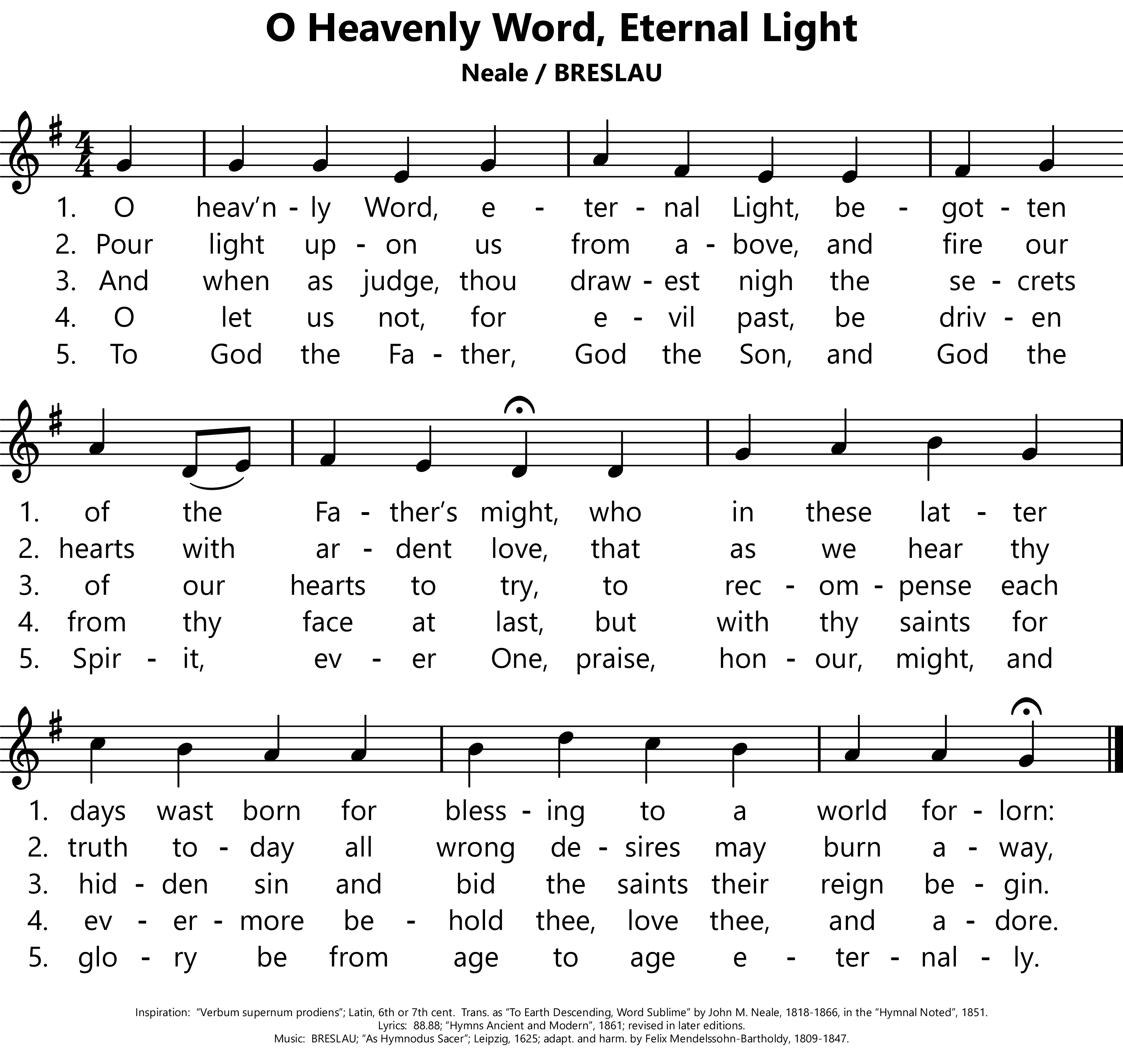 Composer:    As Hymnodus Sacer, Leipzig, 1625; adapt. Felix Mendelssohn, 1809-1847.