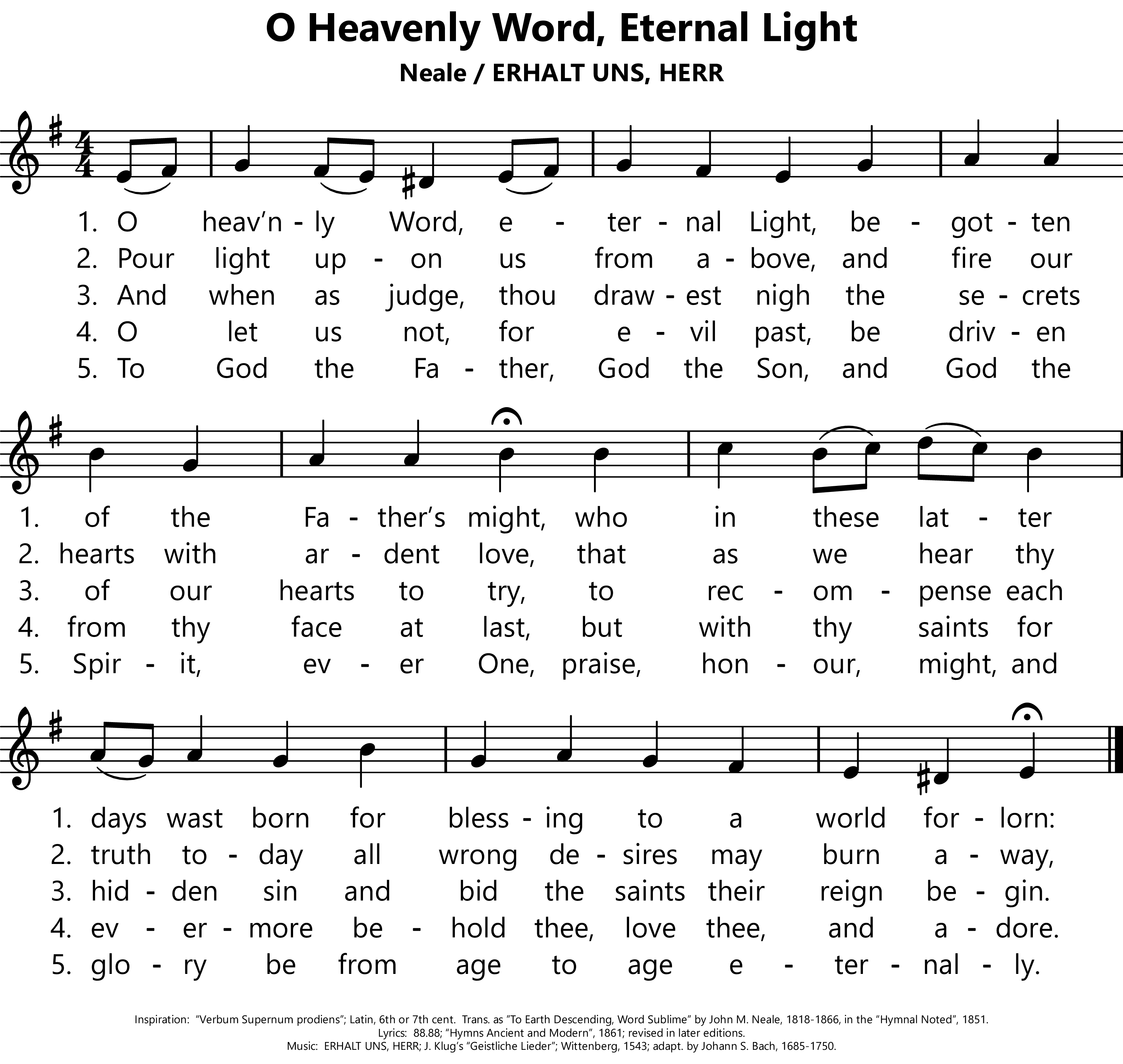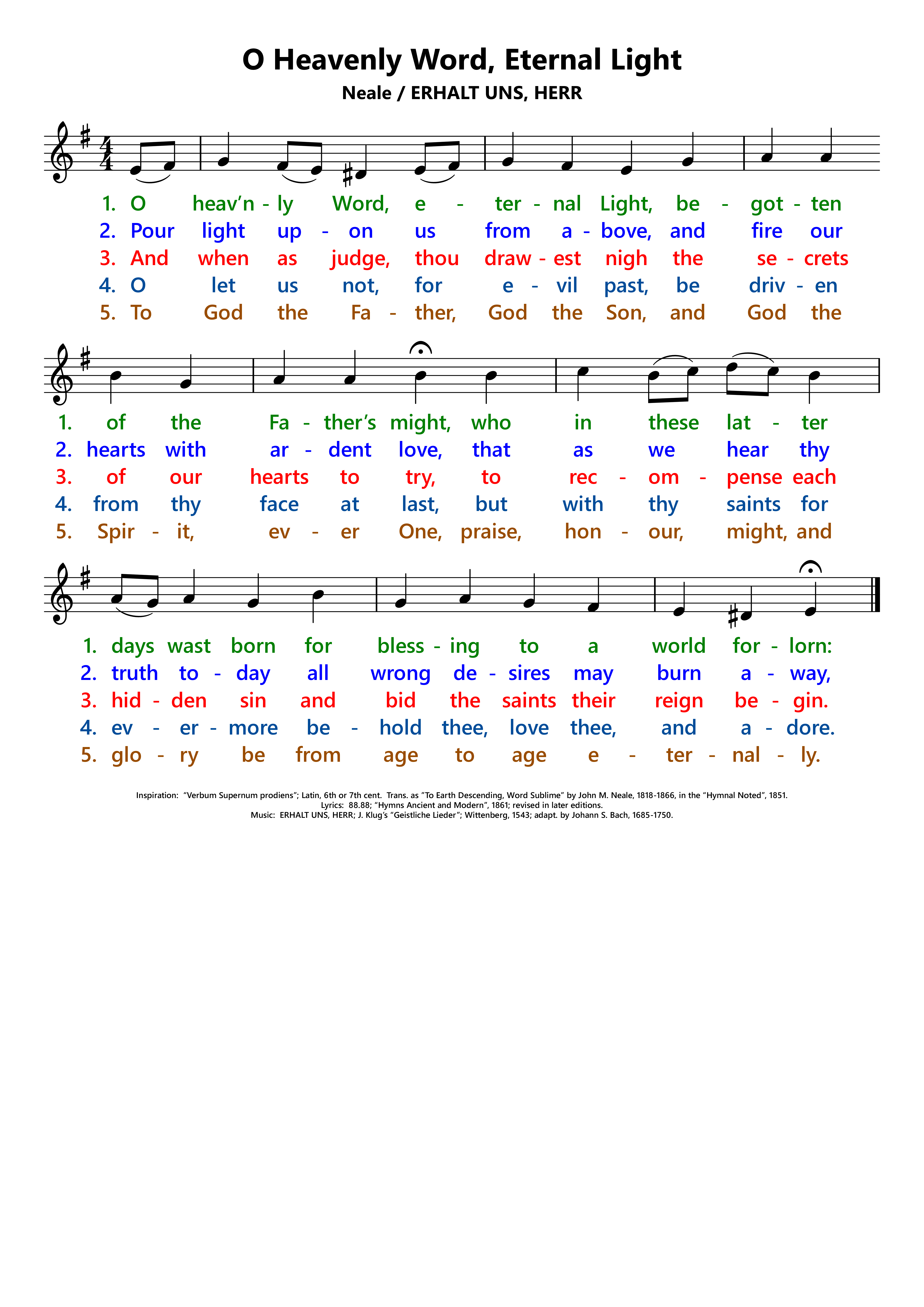 Composer:    J. Klug’s Geistliche Lieder, Wittenberg, 1543; adapt. Johann S. Bach, 1685-1750.