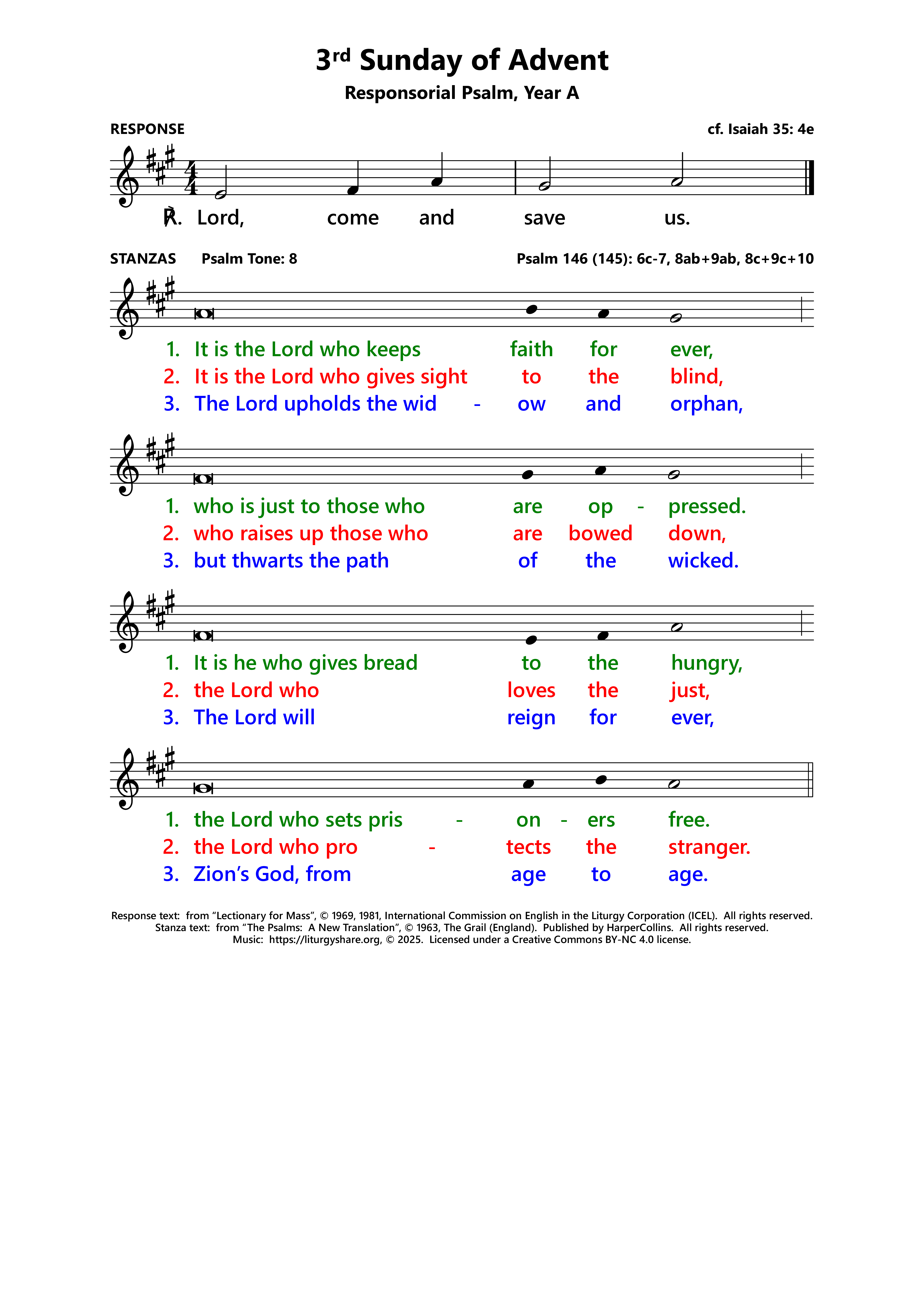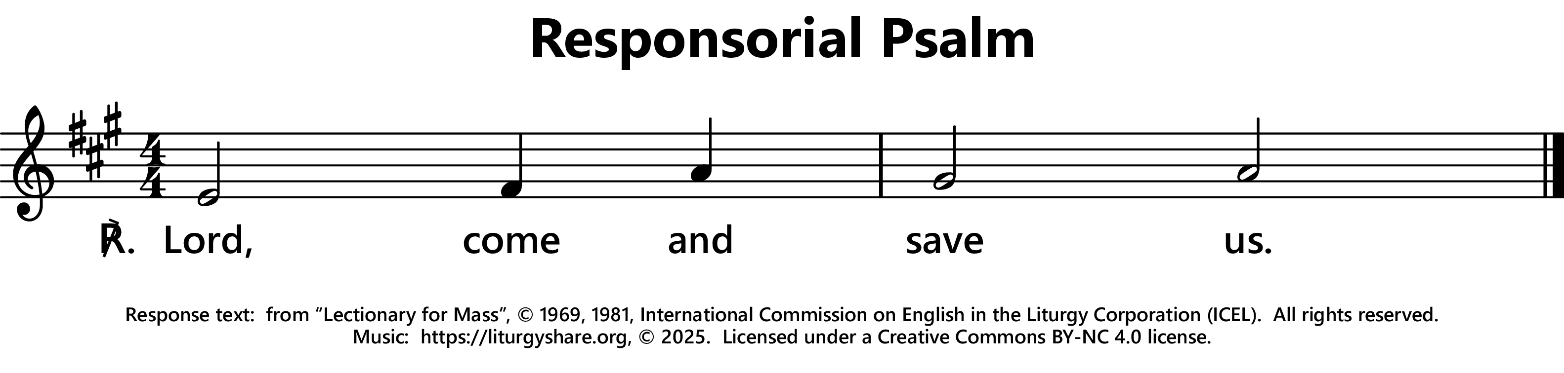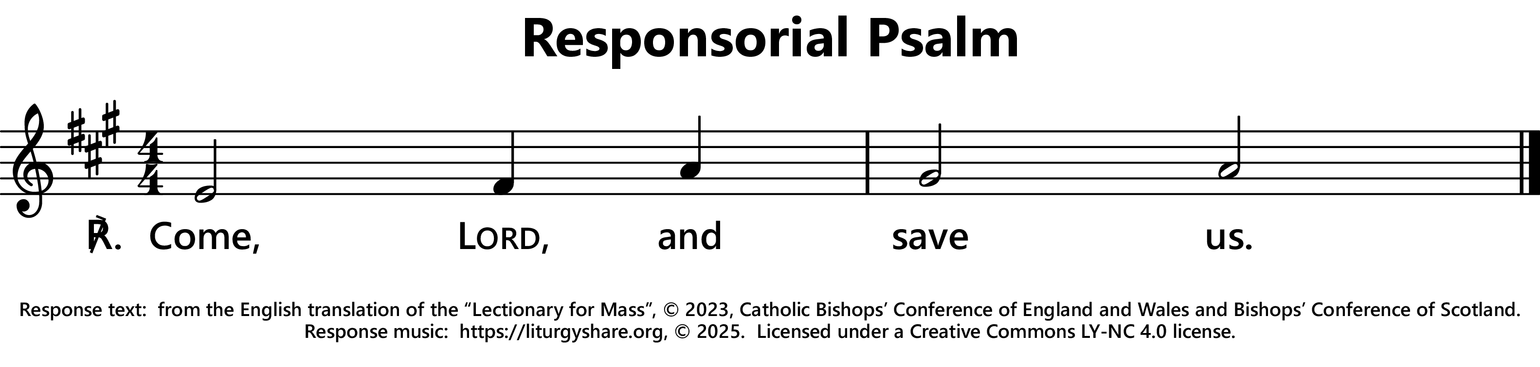 | ℟: | cf. Isaiah 35: 4e Veni, Domine, ad salvandum nos. Lord, come and save us. (Oz, US) Come, Lord, and save us. (UK) |