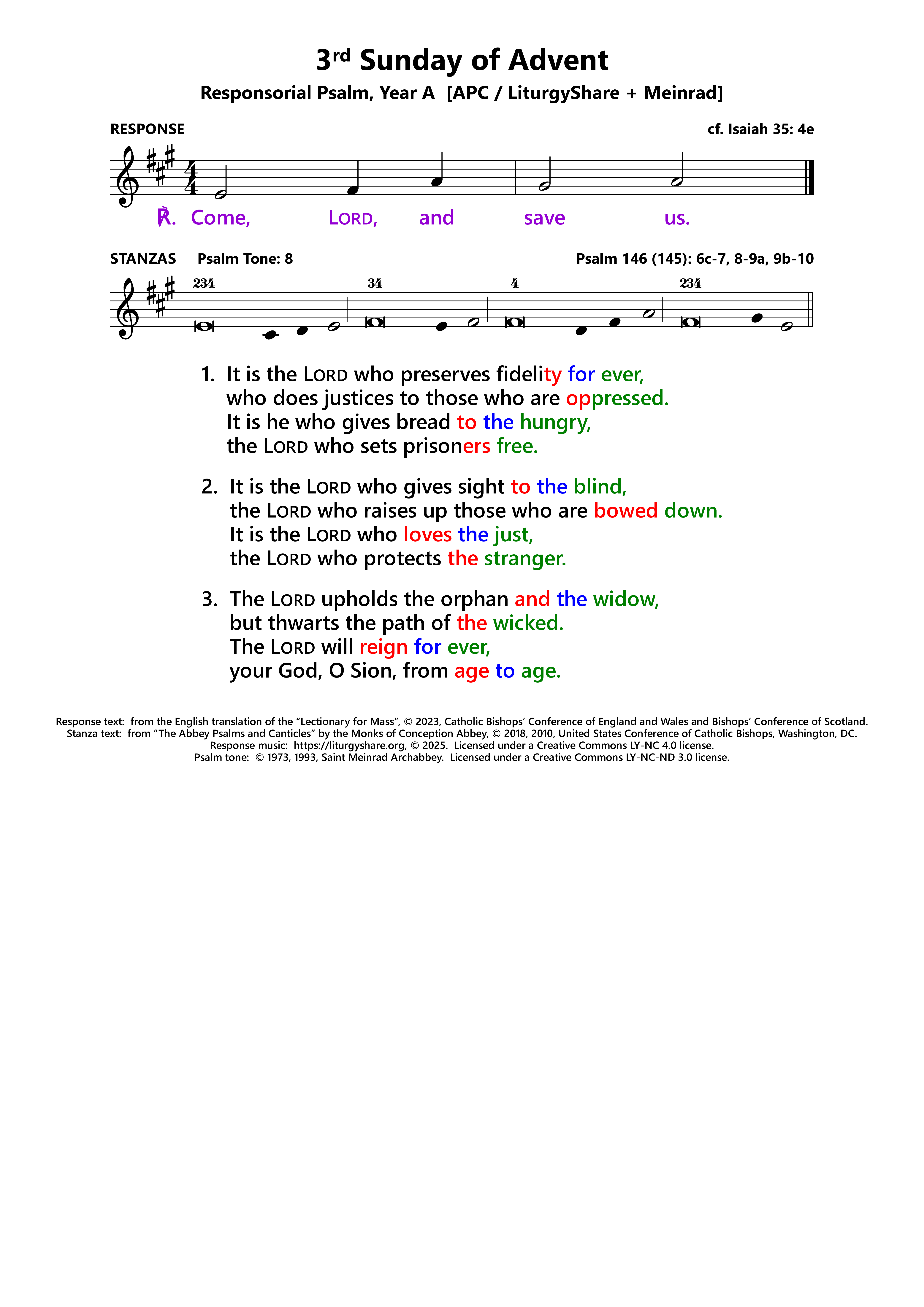 | ℣: | Psalm 146 (145): 6c-7, 8-9a, 9b-10 |