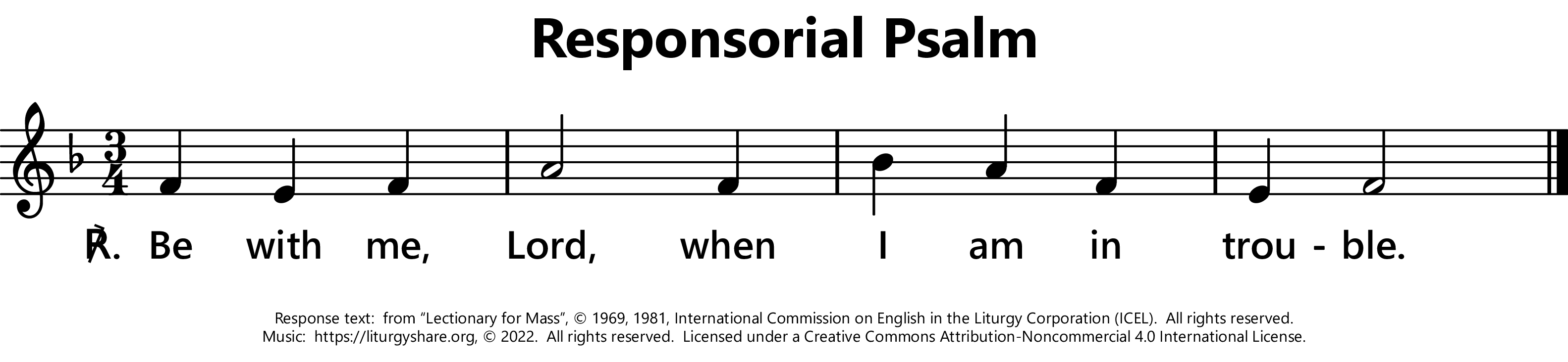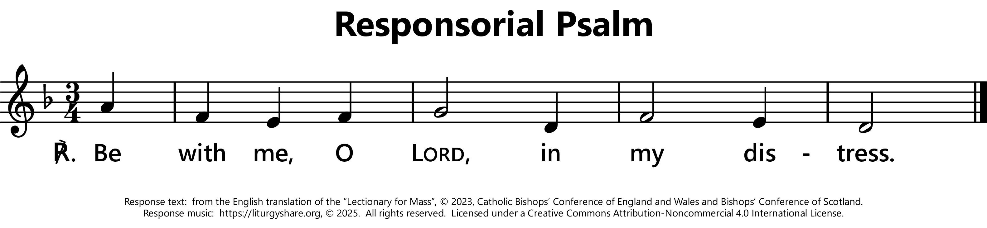 | ℟: | cf. Psalm 91 (90): 15b Esto mecum, Domine, m tribulatione. Be with me, Lord, when I am in trouble. (Oz, US) Be with me, O Lord, in my distress. (UK) |