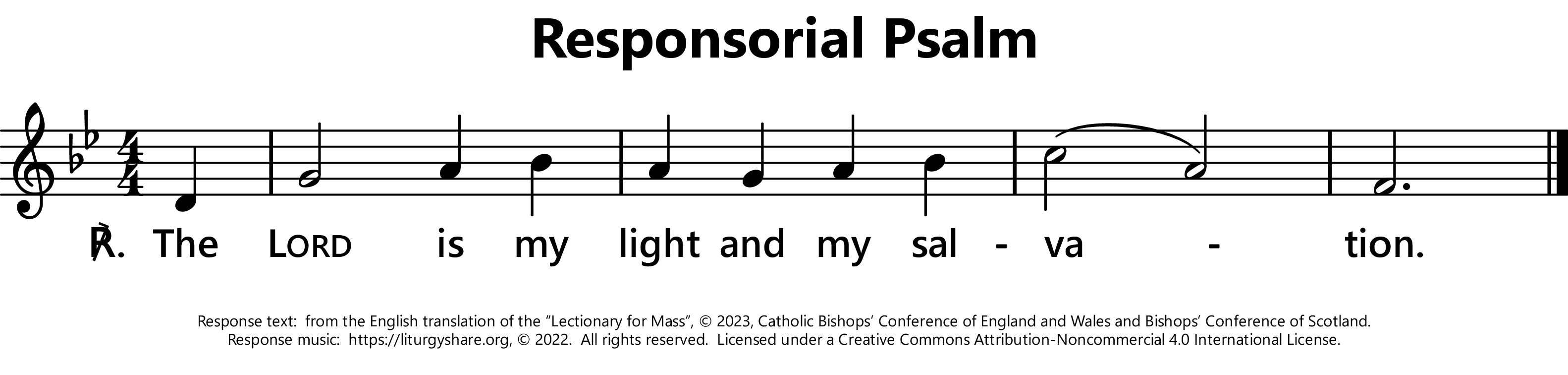 | ℟: | Psalm 27 (26): 1a Dominus illuminatio mea et salus mea. The Lord is my light and my salavation. |