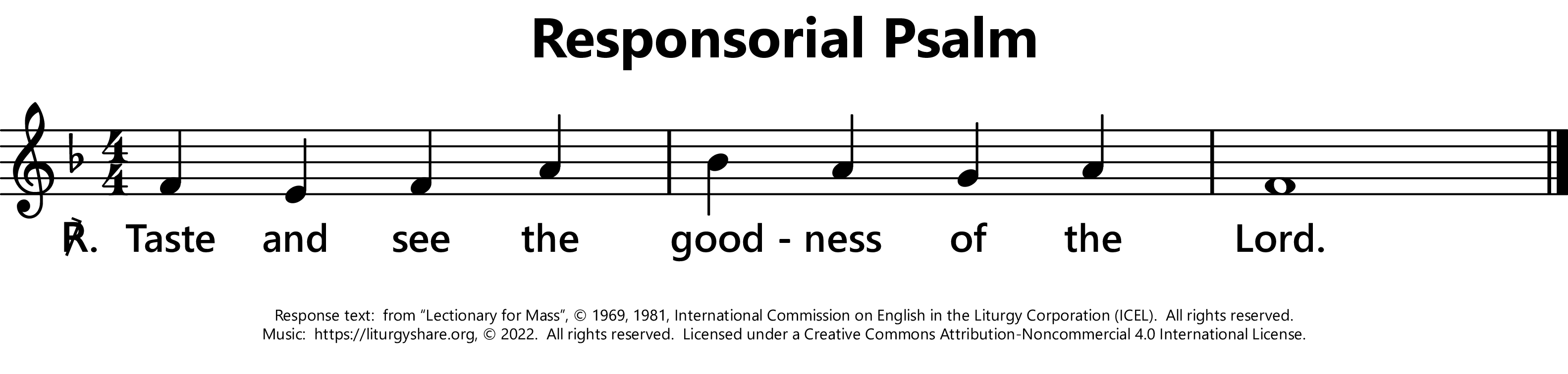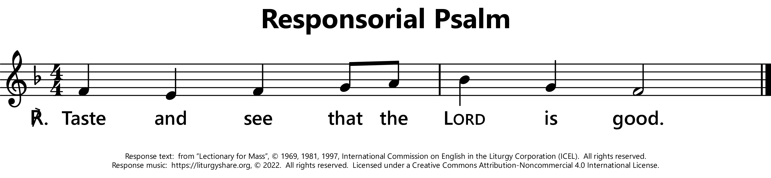 | ℟: | Psalm 34 (33): 9a Gustate et videte quoniam suavis est Dominus Taste and see the goodness of the Lord. (Oz, US) Taste and see that the Lord is good. (UK) |