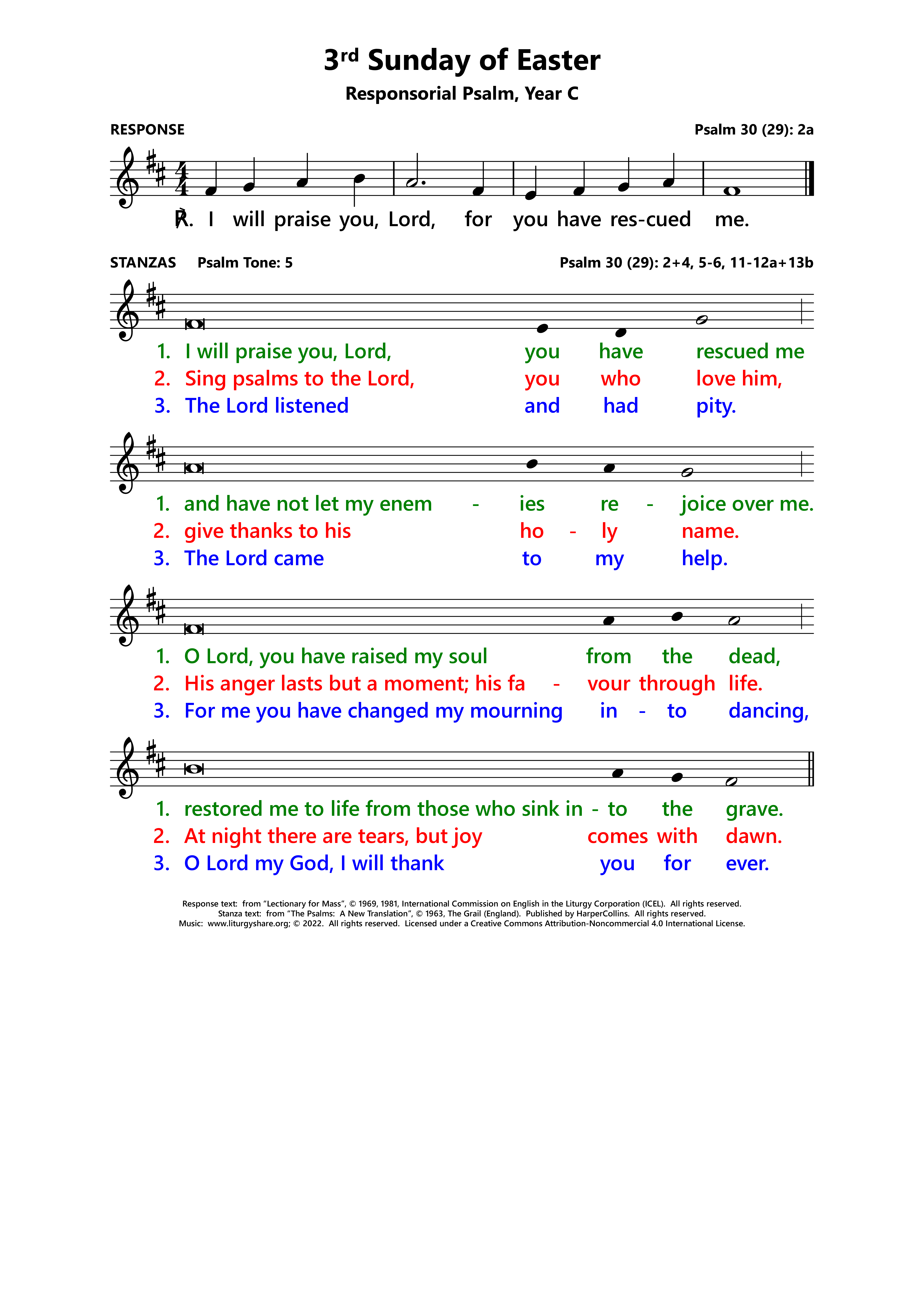 ℣: Psalm 30 (29): 2+4, 5-6, 11+12a+13b