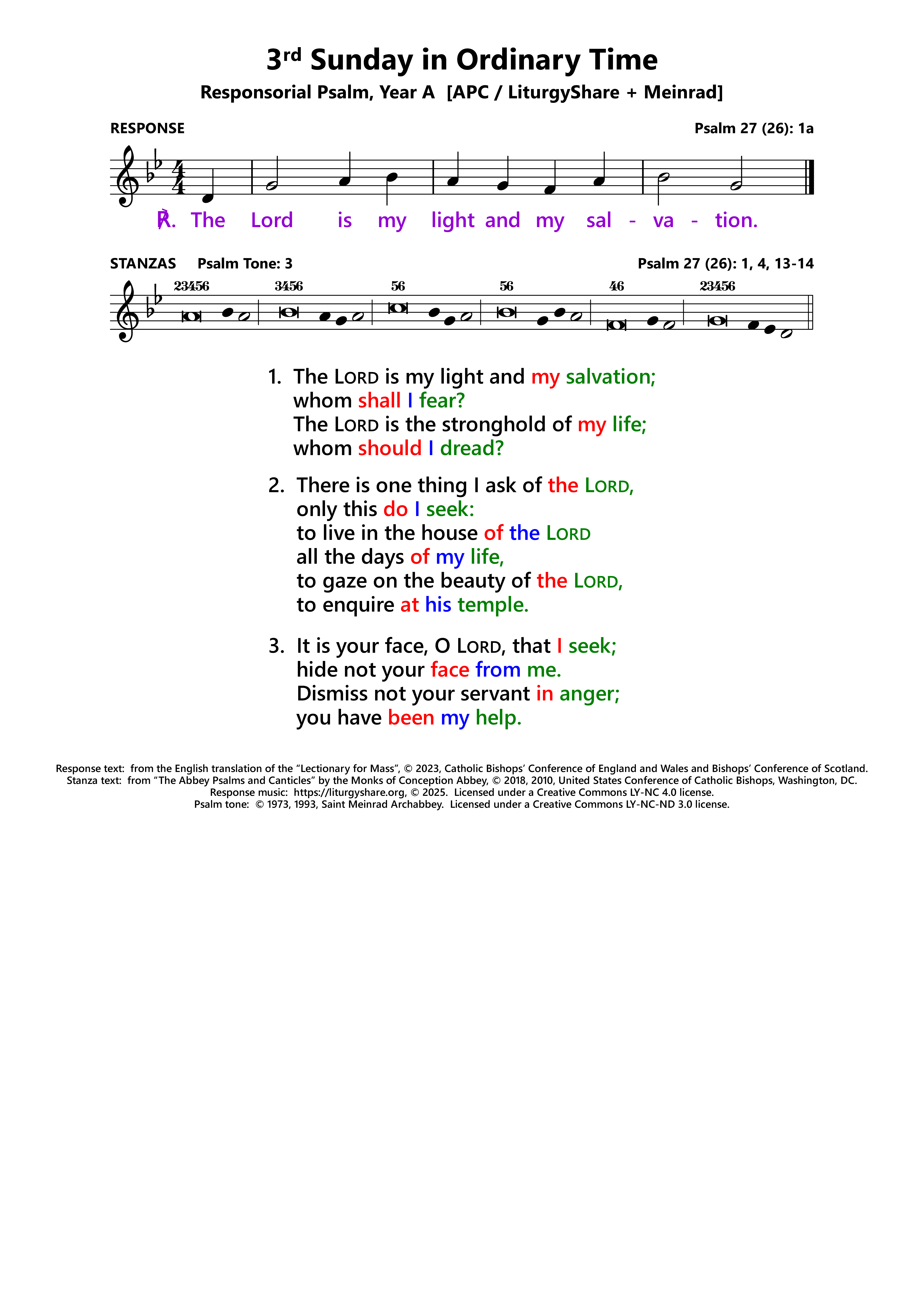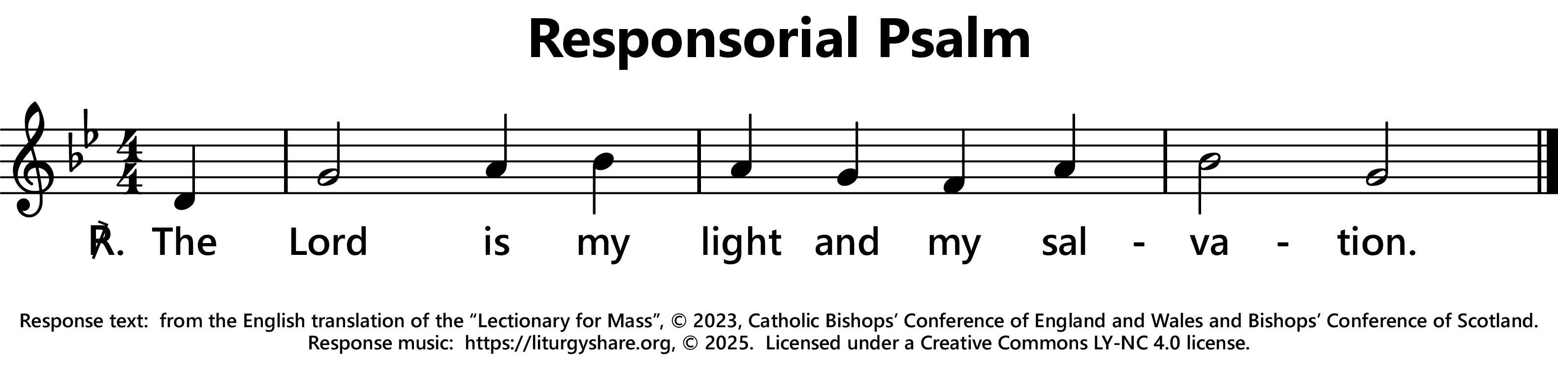 | ℟: | Psalm 27 (26): 1a Dominus illuminatio mea et salus mea. The Lord is my light and my salvation. |