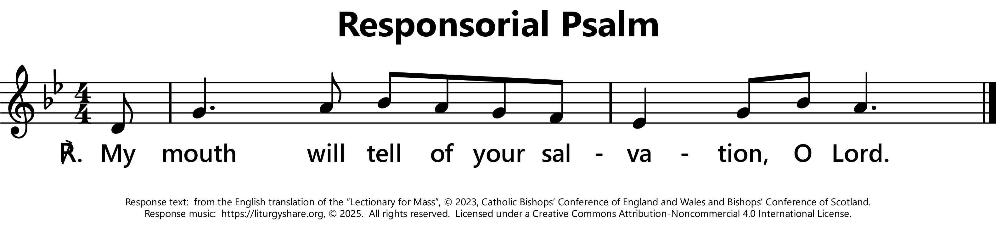 | ℟: | Psalm 71 (70): 15ab Os meum annuntiabit salutare tu um, Domine. I will sing of your salvation. (Oz, US) My mouth will tell of your salvation, Lord. (UK) |