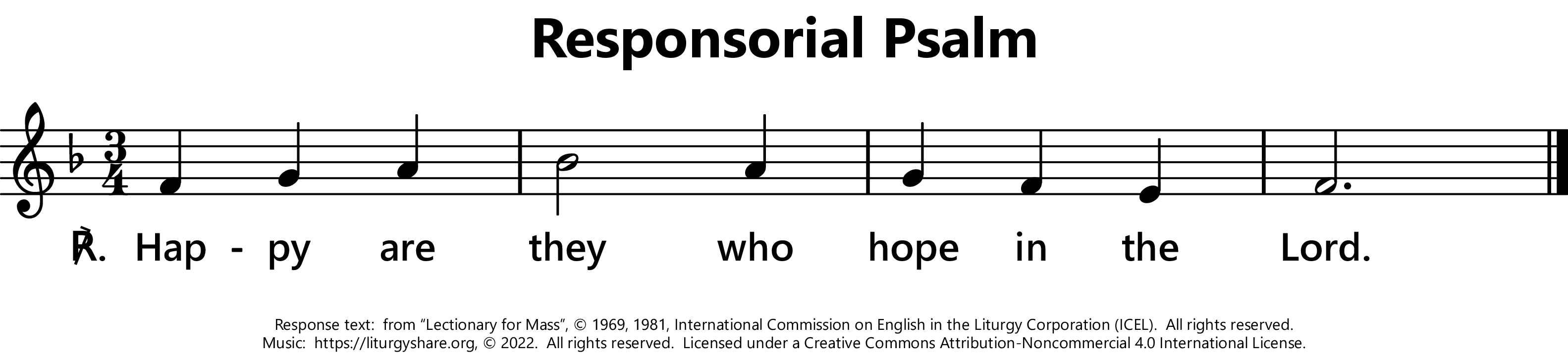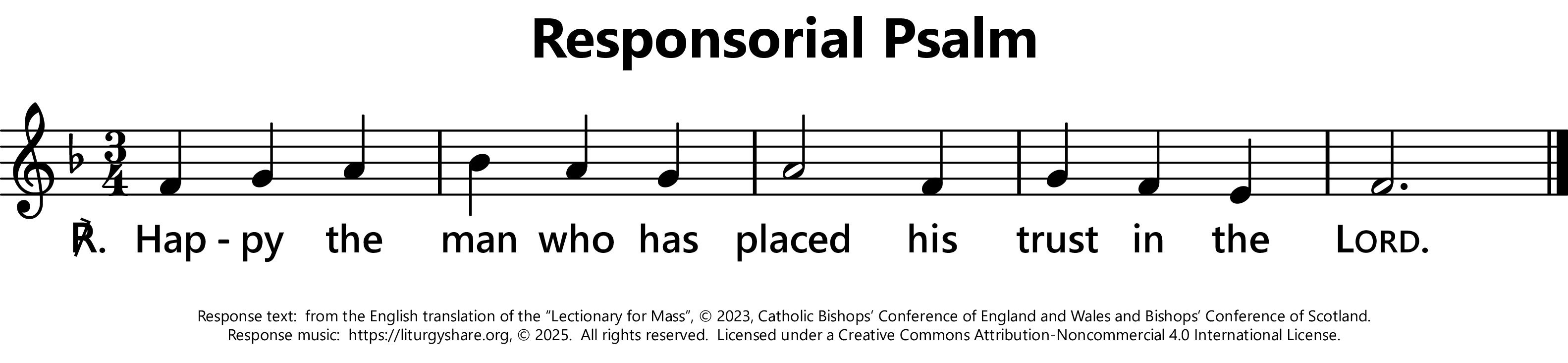 | ℟: | Psalm 40 (39): 5a Beatus vir qui posuit Dominum spem suam. Happy are they who hope in the Lord. (Oz) Blessed are they who hope in the Lord. (US) Blessed the man who has placed his trust in the Lord. (UK) |