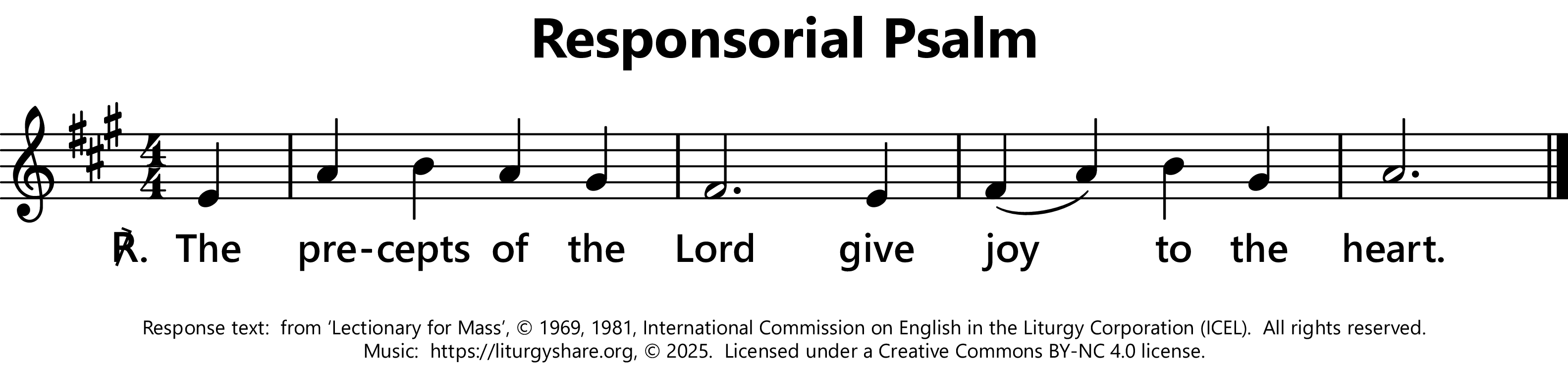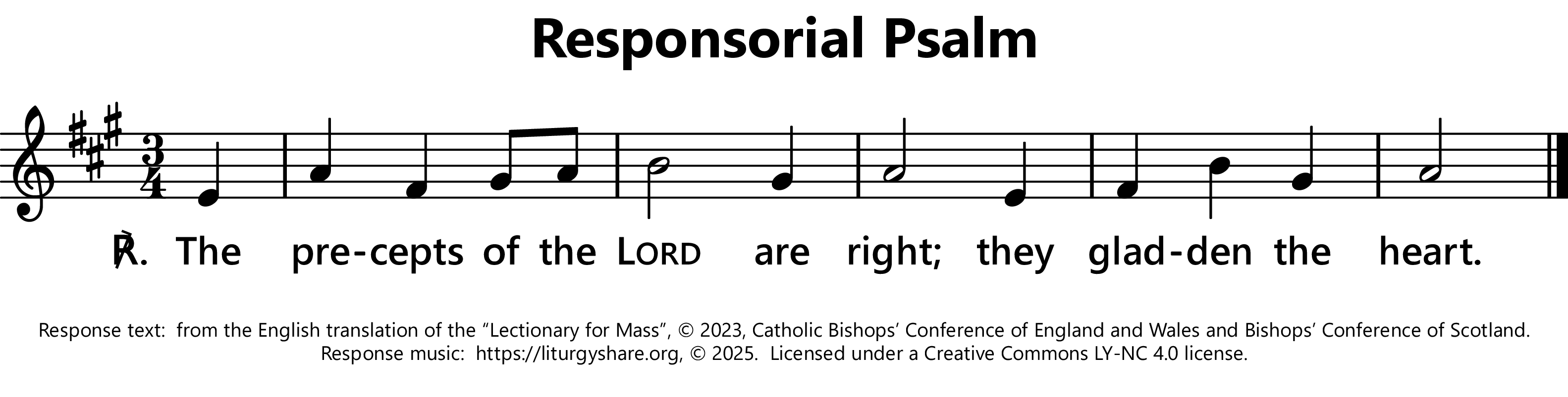 | ℟: | Psalm 19 (18): 9ab Iustitiae Domini rectae, laetificantes corda. The precepts of the Lord give joy to the heart. (Oz) Your words, O Lord, are Spirit and life. (US - error!) The precepts of the Lord are right; they gladden the heart. (UK) |