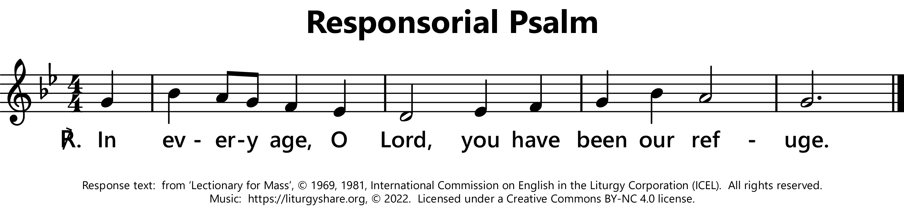 | ℟: | Psalm 90 (89): 1 Domine, refugium factus es no bis, a generatione in generationem. In every age, O Lord, you have been our refuge. (Oz, US 129) If today you hear his voice, harden not your hearts. (US 114) O Lord, you have been our refuge, from generation to generation. (UK) |