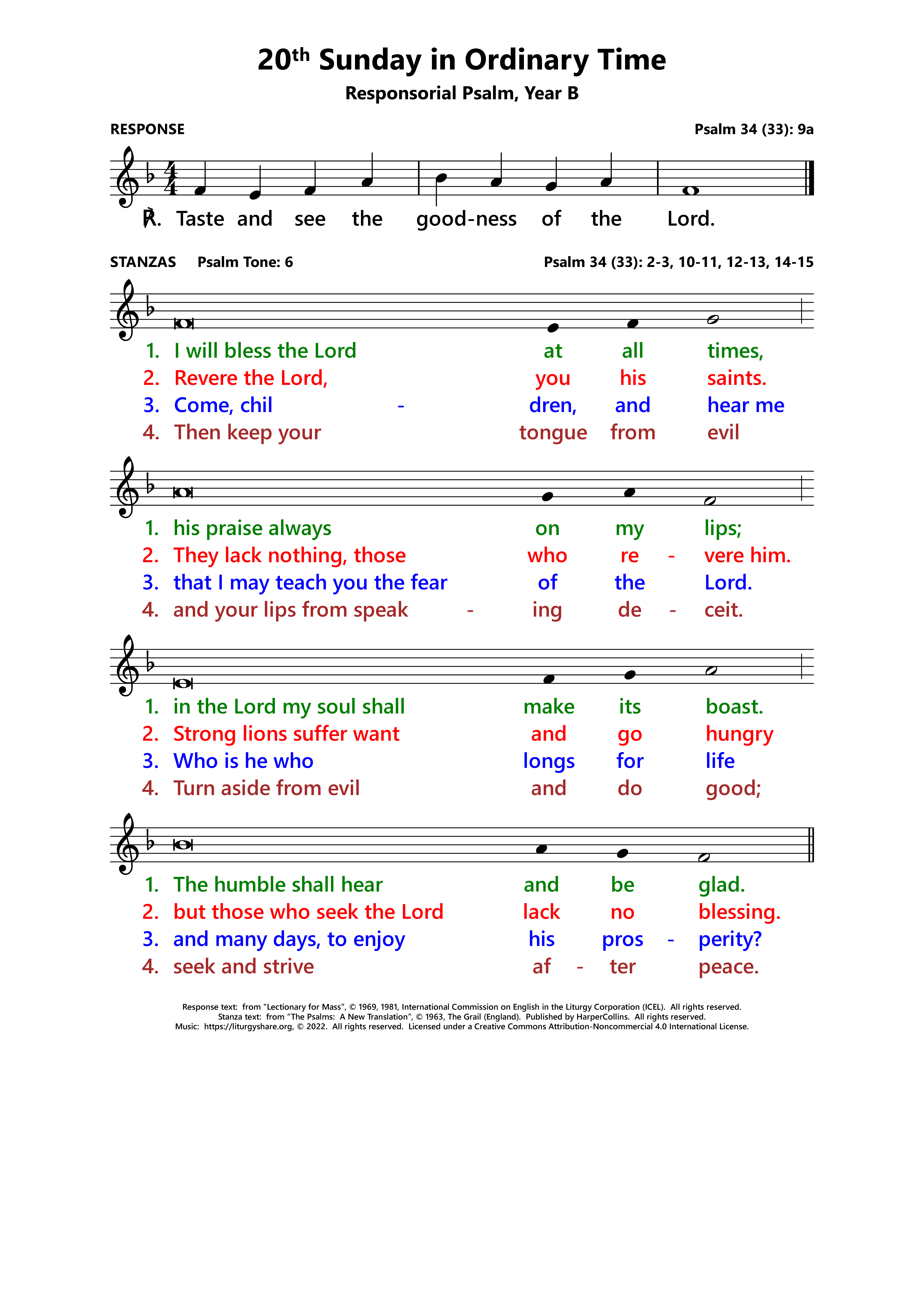 20th Sunday in Ordinary Time, Year B: vs 2-3, 10-11, 12-13, 14-15