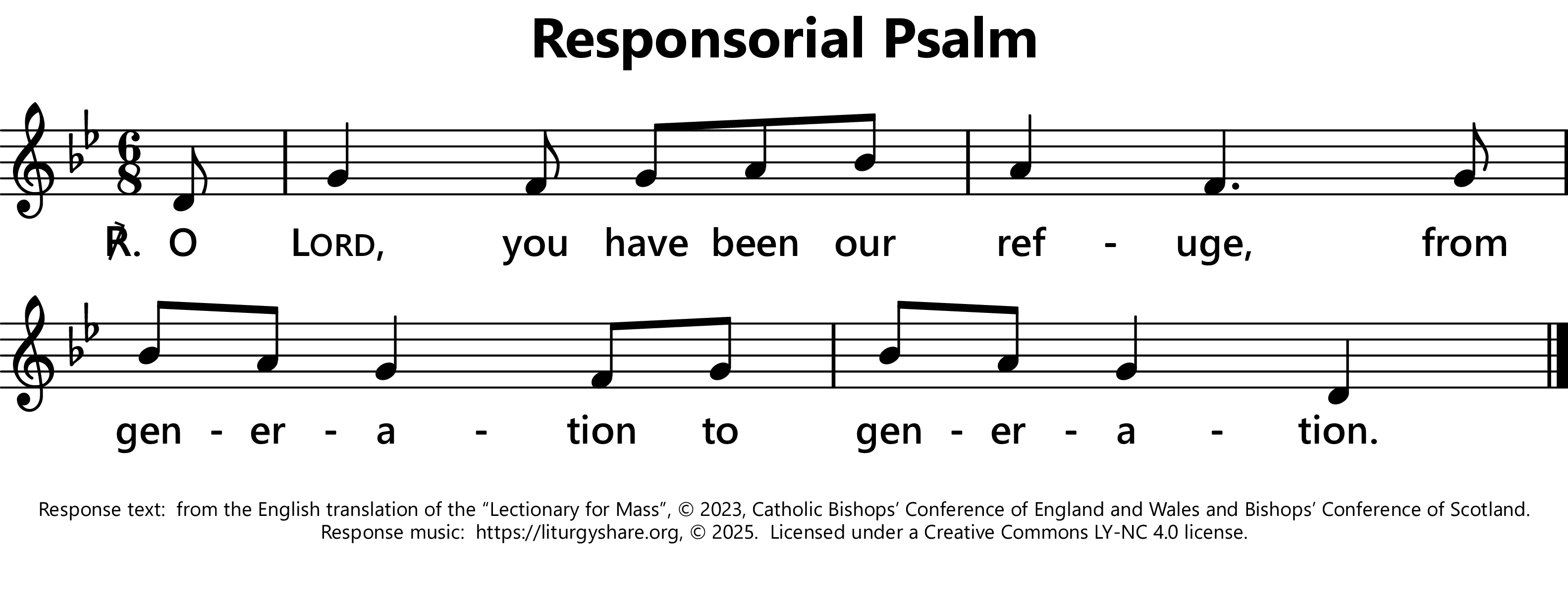 | ℟: | Psalm 90 (89): 1 Domine, refugium factus es no bis, a generatione in generationem. In every age, O Lord, you have been our refuge. (Oz, US 129) If today you hear his voice, harden not your hearts. (US 114) O Lord, you have been our refuge, from generation to generation. (UK) |