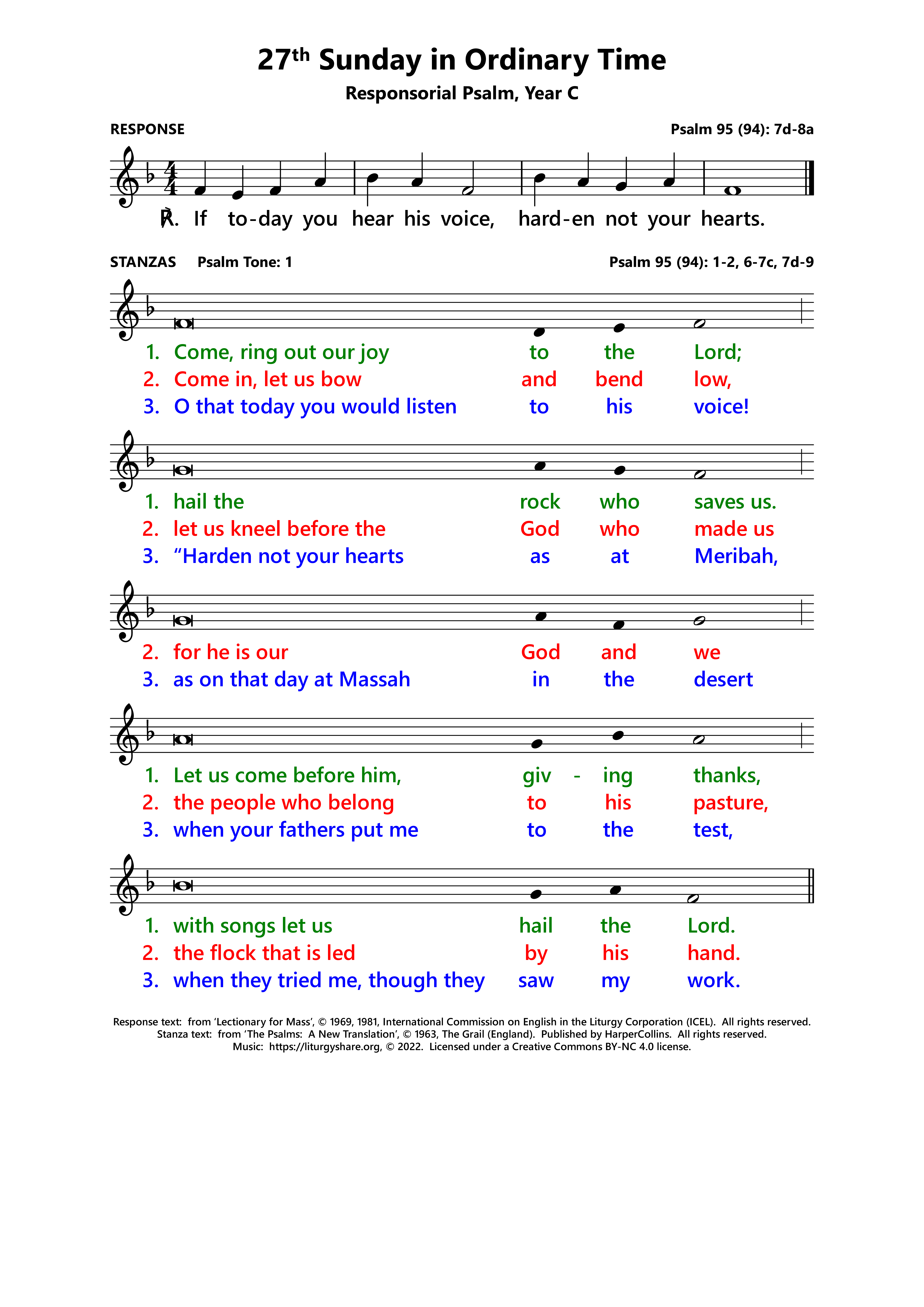 | ℣: | Psalm 95 (94): 1-2, 6-7b, 7c-9 |