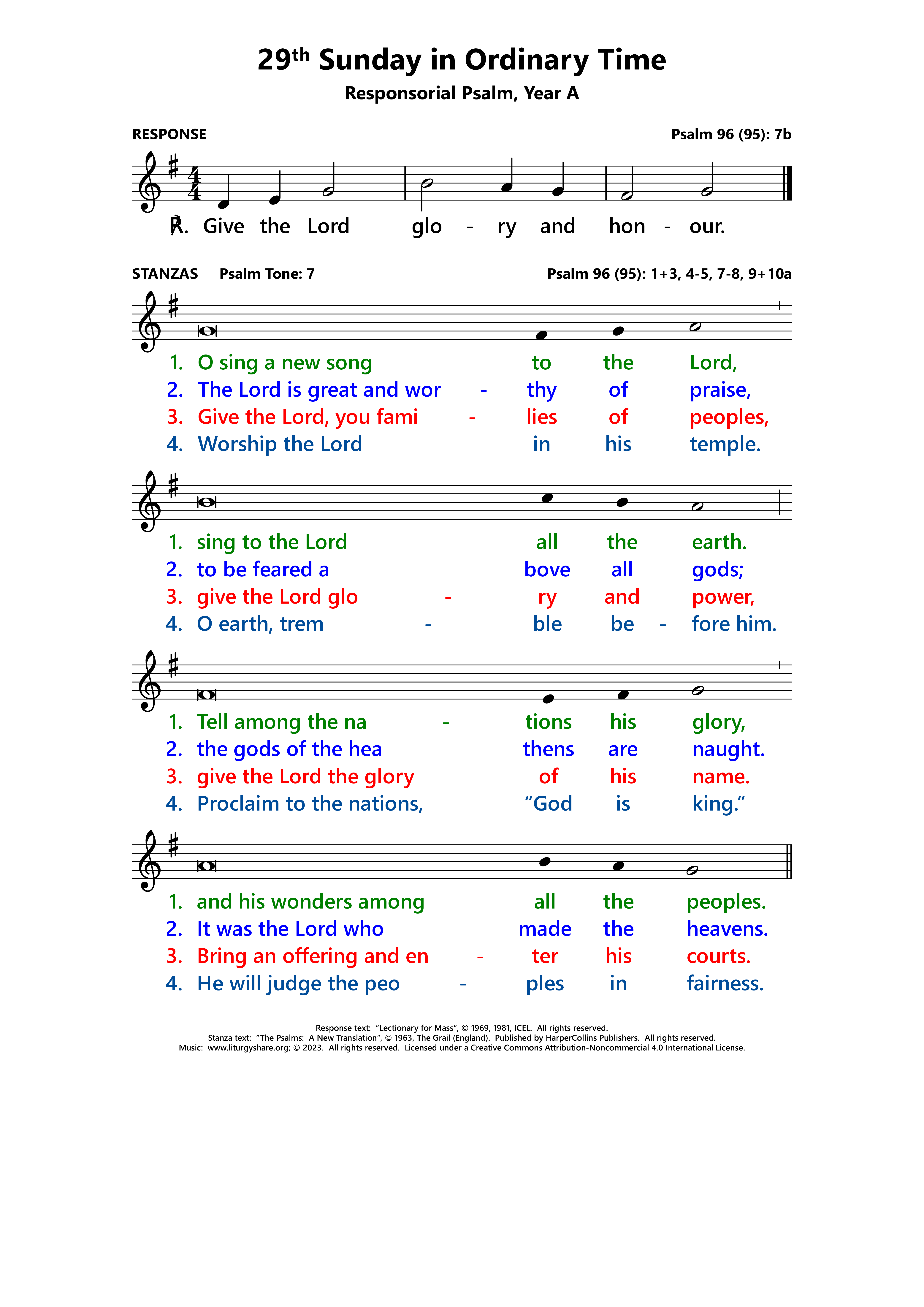 ℟: Give the Lord glory and honour. Give the Lord glory and honour.
