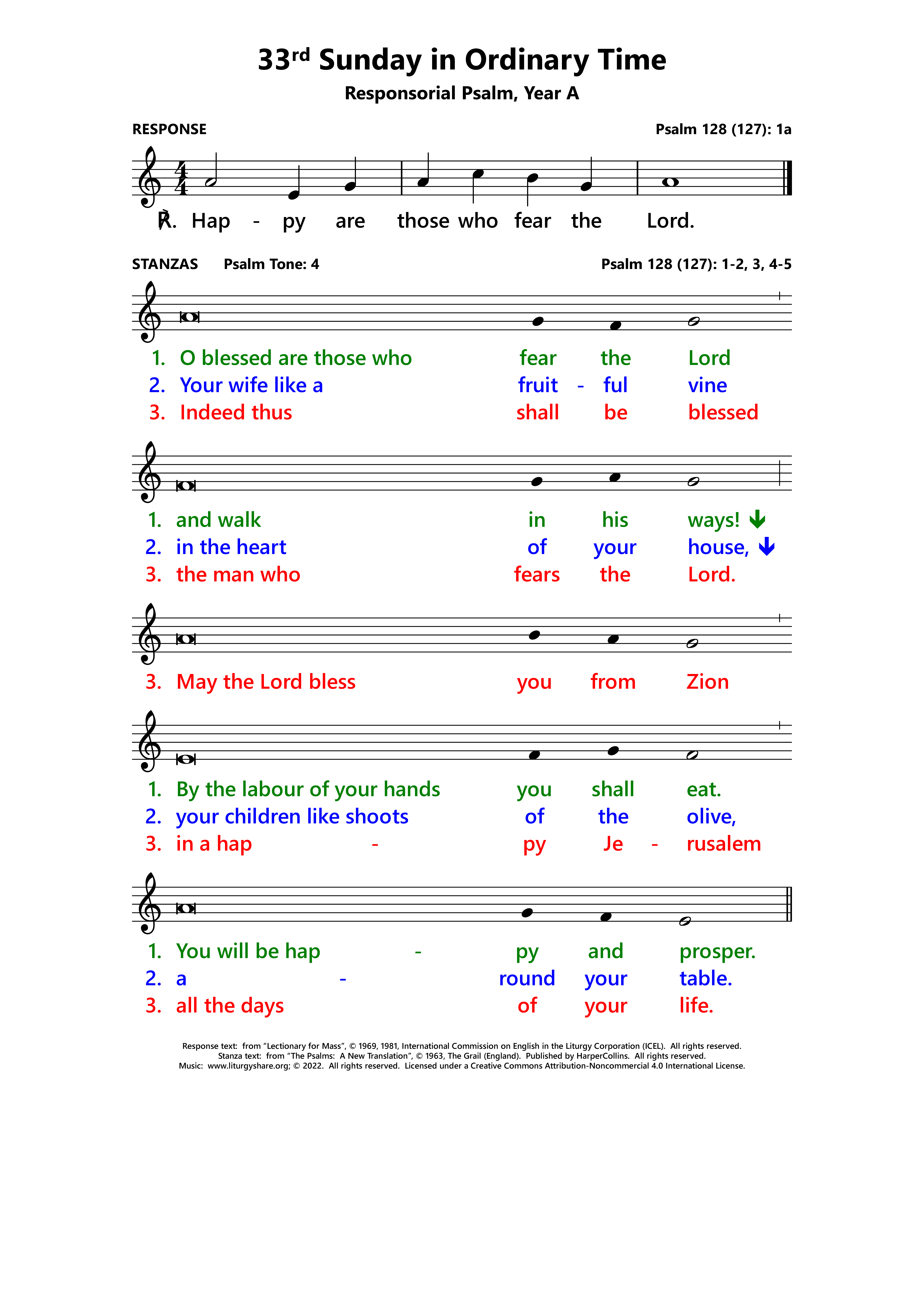 ℟: Happy are those who fear the Lord, those who walk in his ways.
