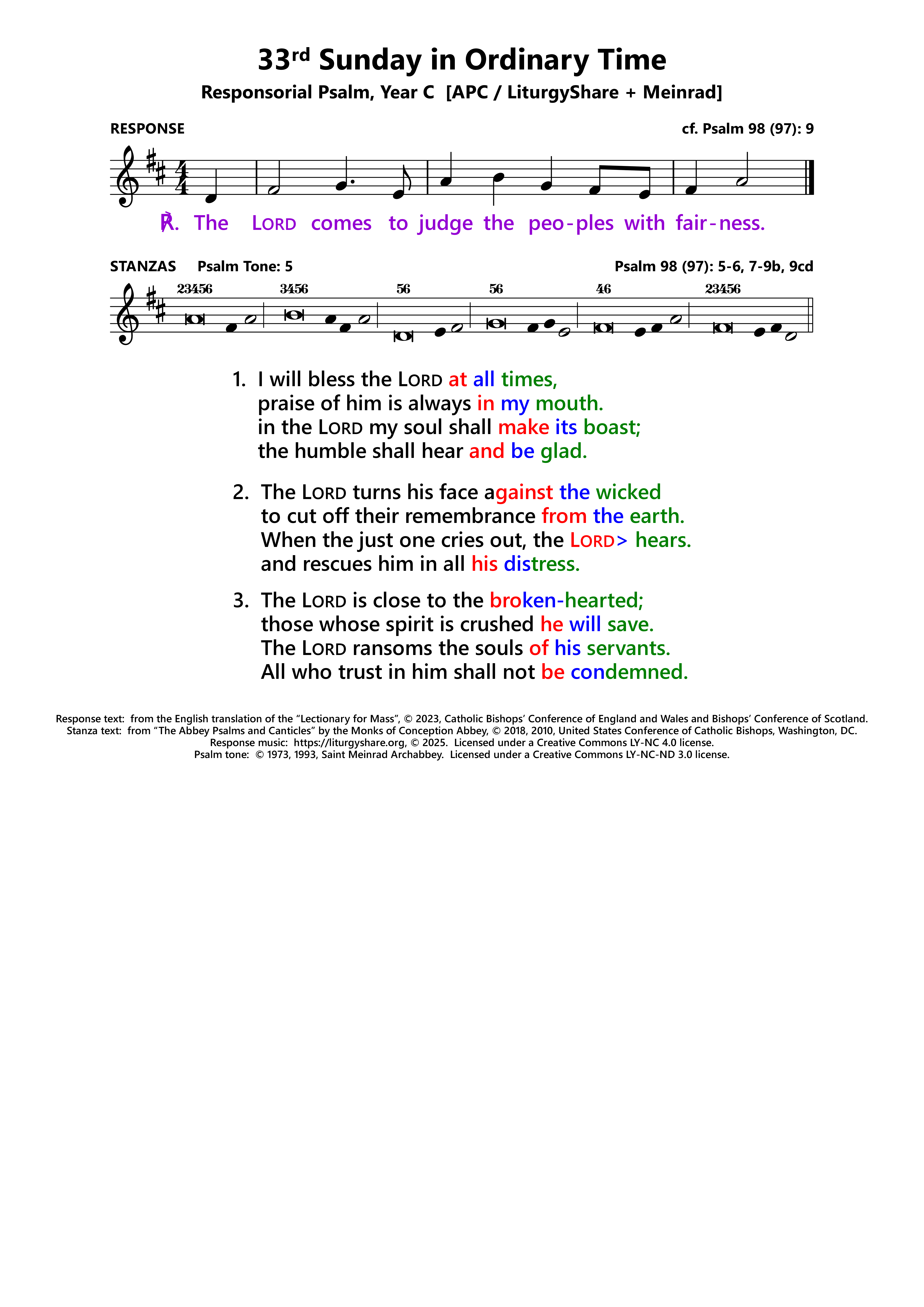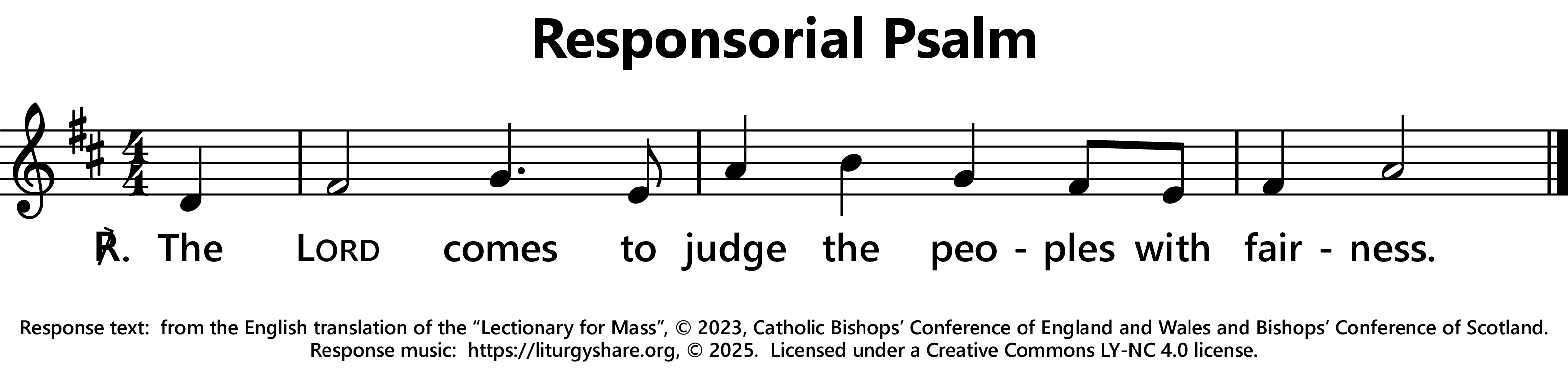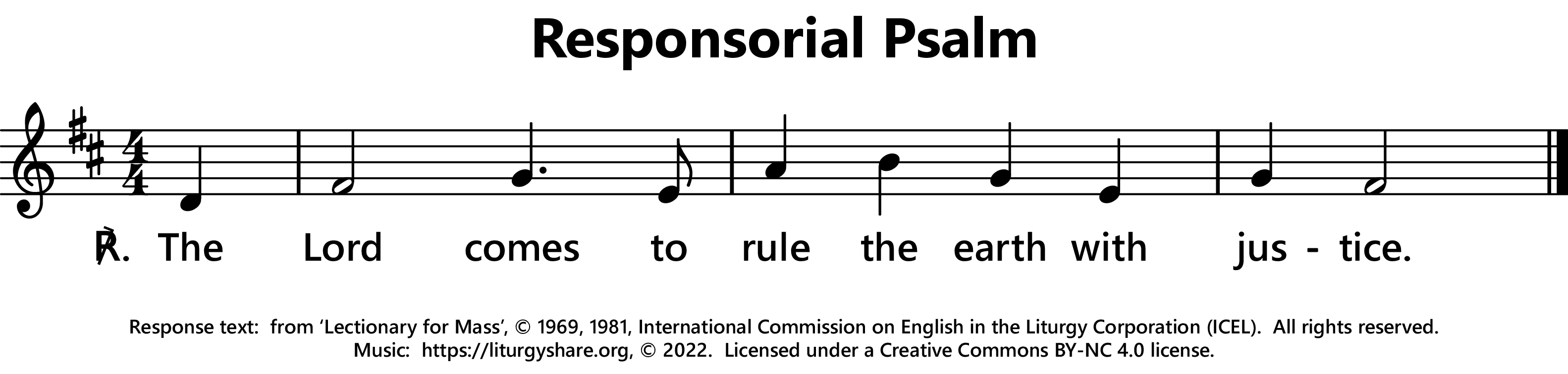 | ℟: | cf. Psalm 98 (97): 9 Venit Dominus iudicare populos in aequitate. The Lord comes to rule the earth with justice. (Oz, US) The Lord comes to judge the peoples with fairness. (UK) |