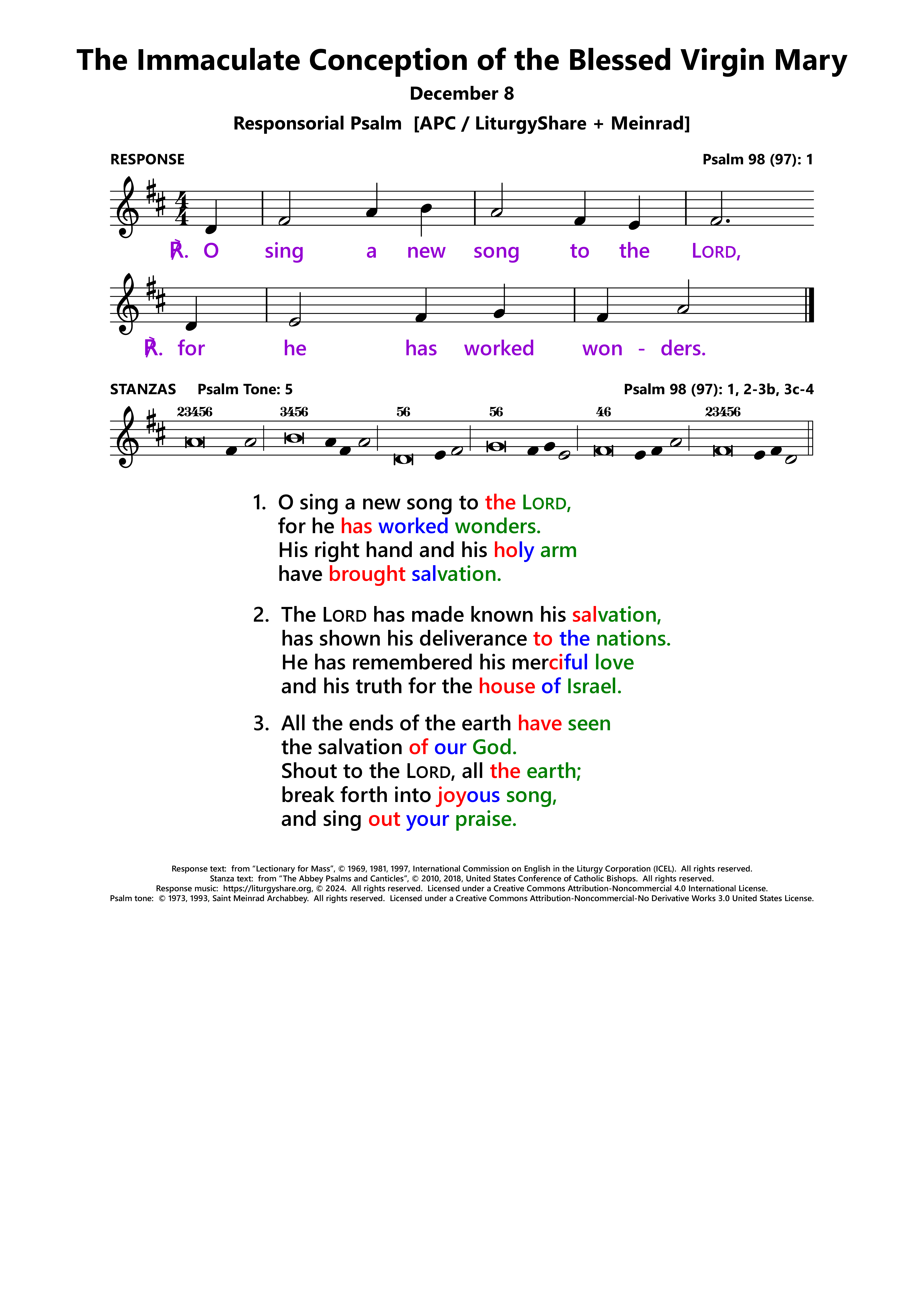 | ℣: | Psalm 98 (97): 1, 2-3b, 3c-4 |
